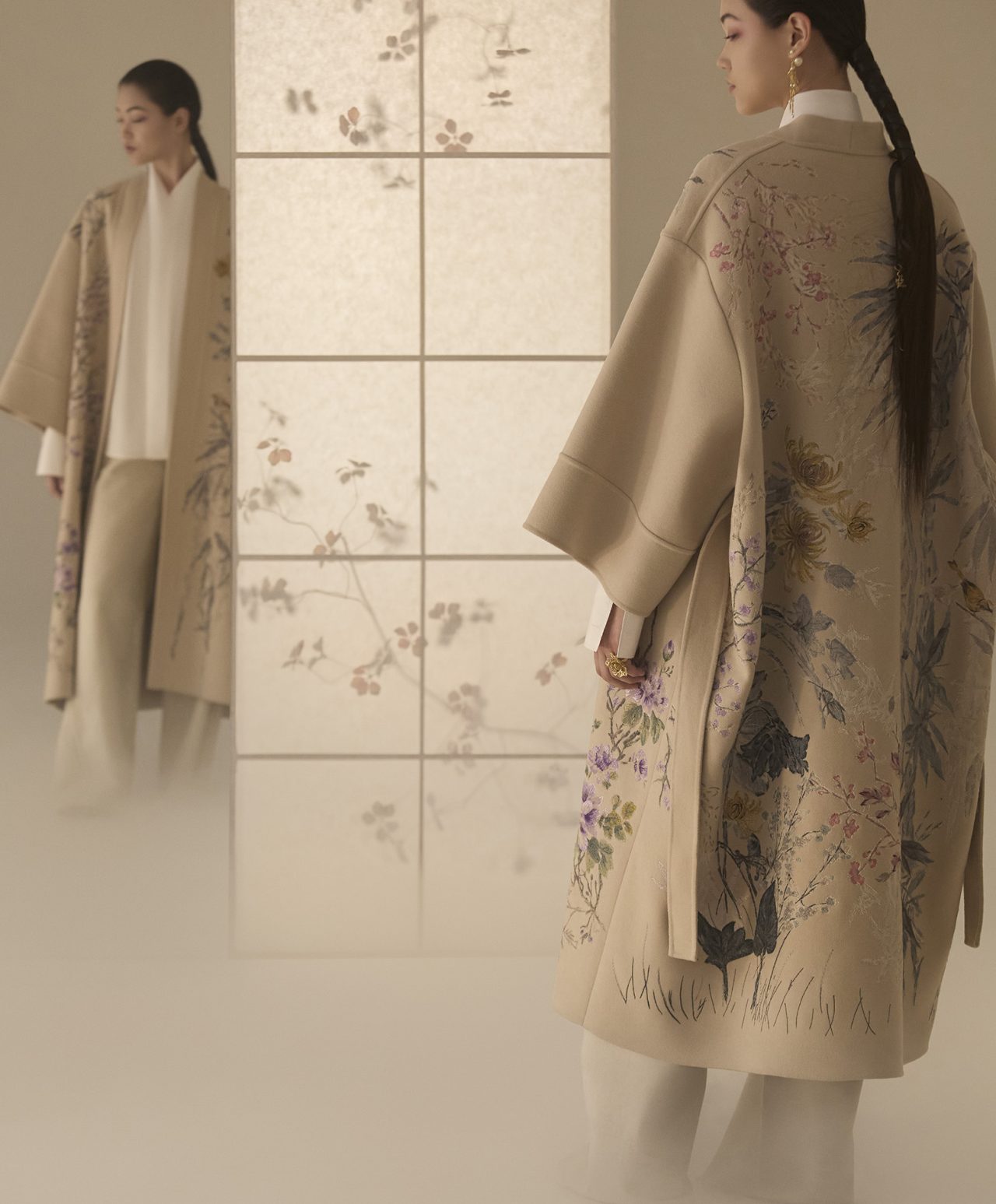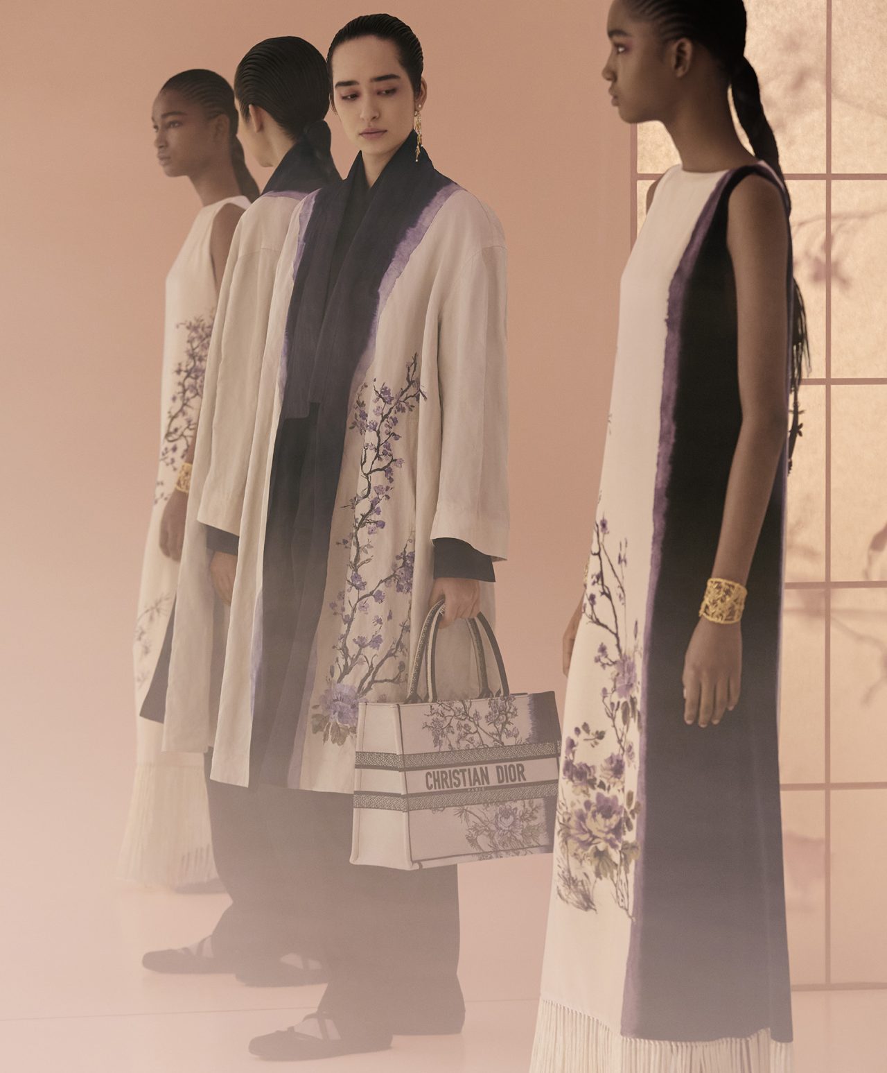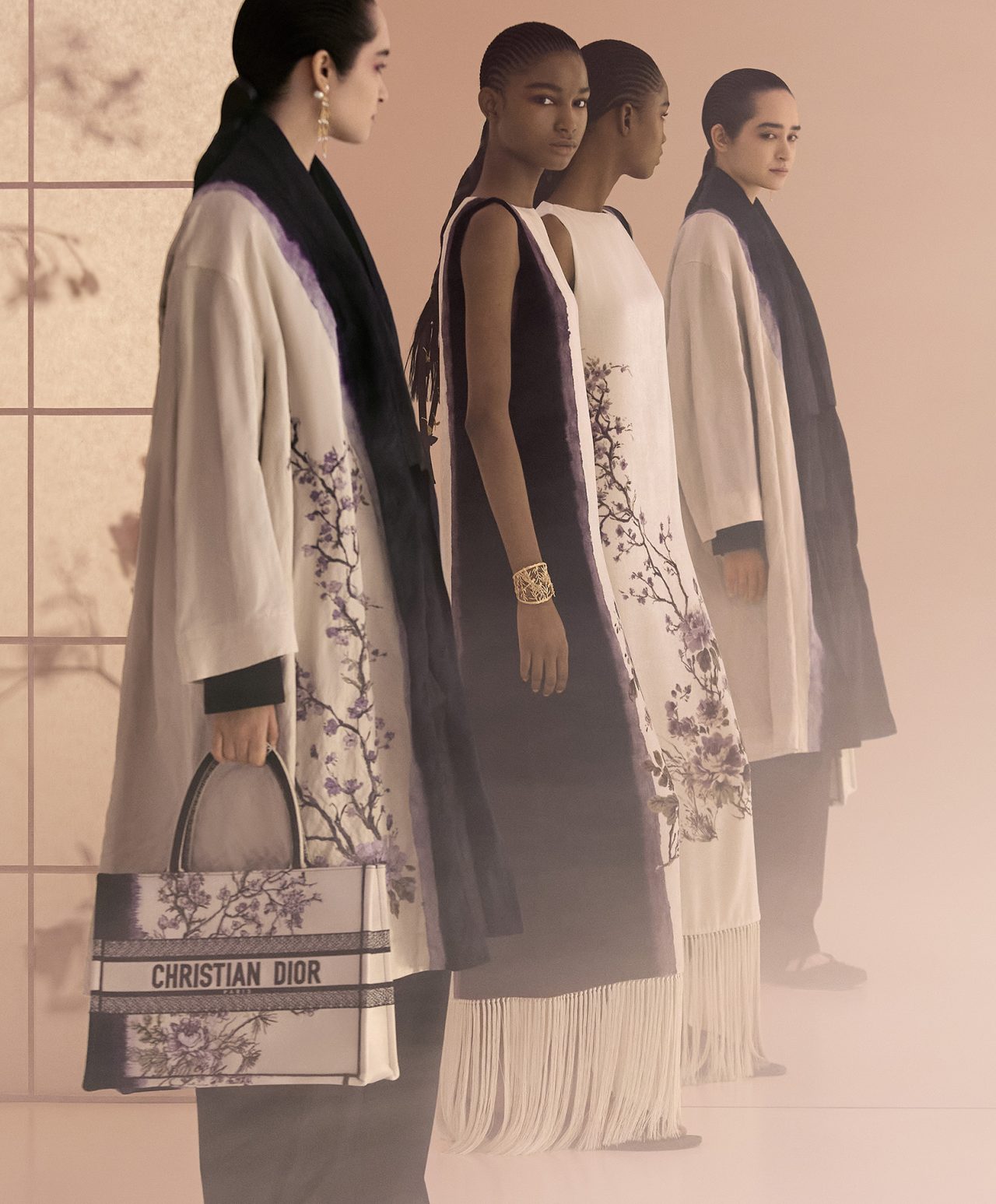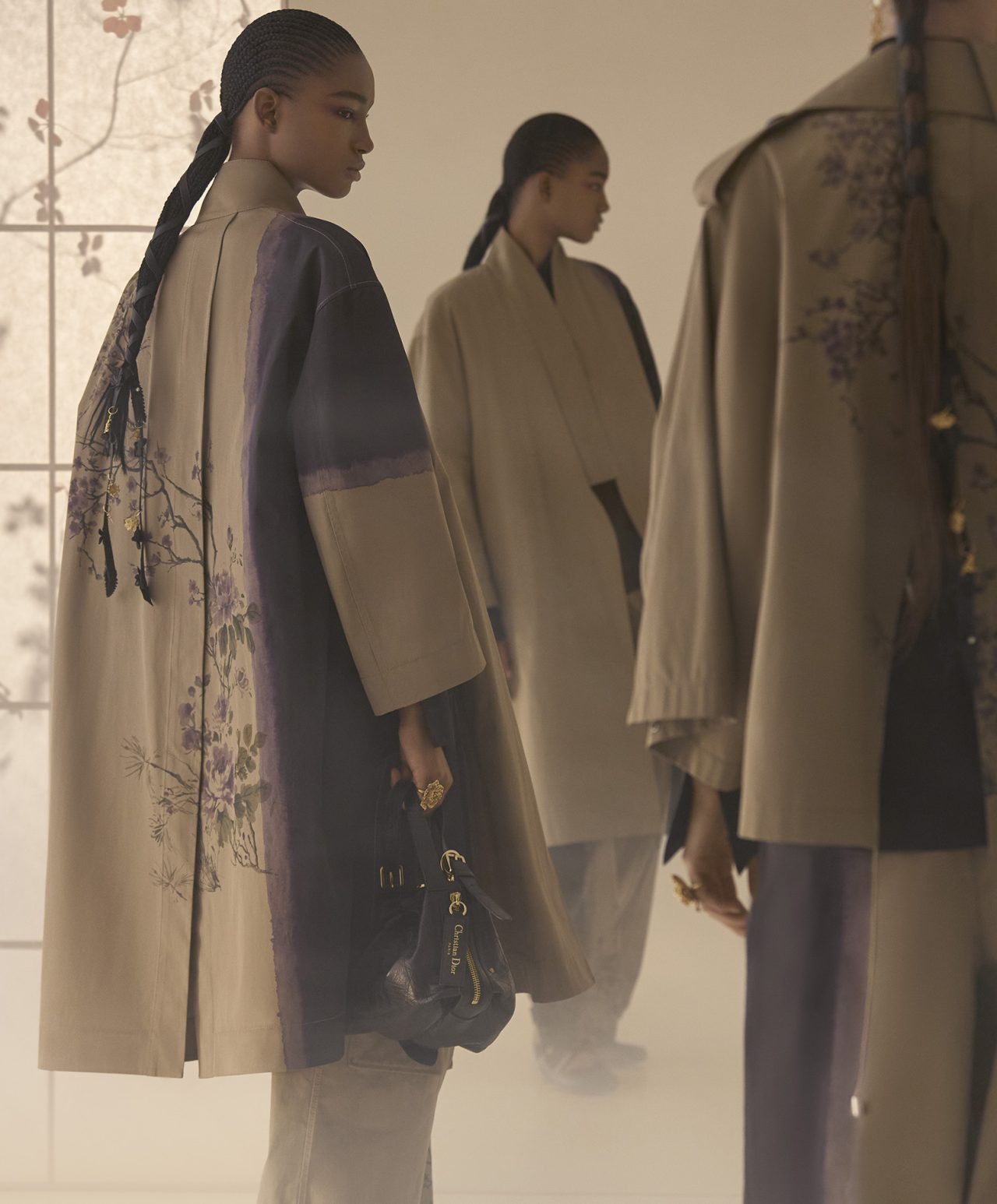 2025年秋コレクションには、日本の伝統的な匠の技とフランスのクチュールが融合したアイテムがラインナップ。1957年秋冬コレクションの「Diorpaletot (ディオールパルト)」や「Diorcoat (ディオールコート)」を再構築したキモノジャケットに、シルクに描かれた庭園のモチーフや、金の刺繍を施した。また、Dior のアイコニックなアイテム「ディオール ブック トート」は、日本文化の多彩な輝きを表現する魅惑的なモチーフで登場。日本の卓越性と職人技をオマージュし、Dior との永遠の絆を表現した。伝統と革新が融合した本キャンペーンをチェックしてみて。