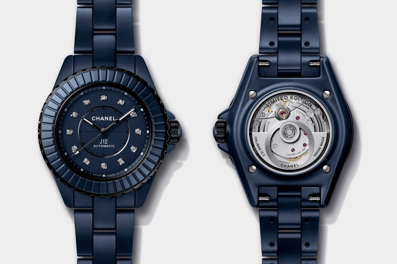 「J12 BLEU キャリバー 12.1」と「J12 BLEU キャリバー 12.2」には、オートマティック ムーブメントが搭載されている他、この2モデルには、他のバリエーションもラインナップ。「J12 BLEU キャリバー 12.1」は、ダイヤルにブラックインデックスをデザインのモデル、「J12 BLEU キャリバー 12.2」は、ダイヤルに12個のブリリアンカットダイヤモンドをあしらったモデルがコレクションに織り込まれている。