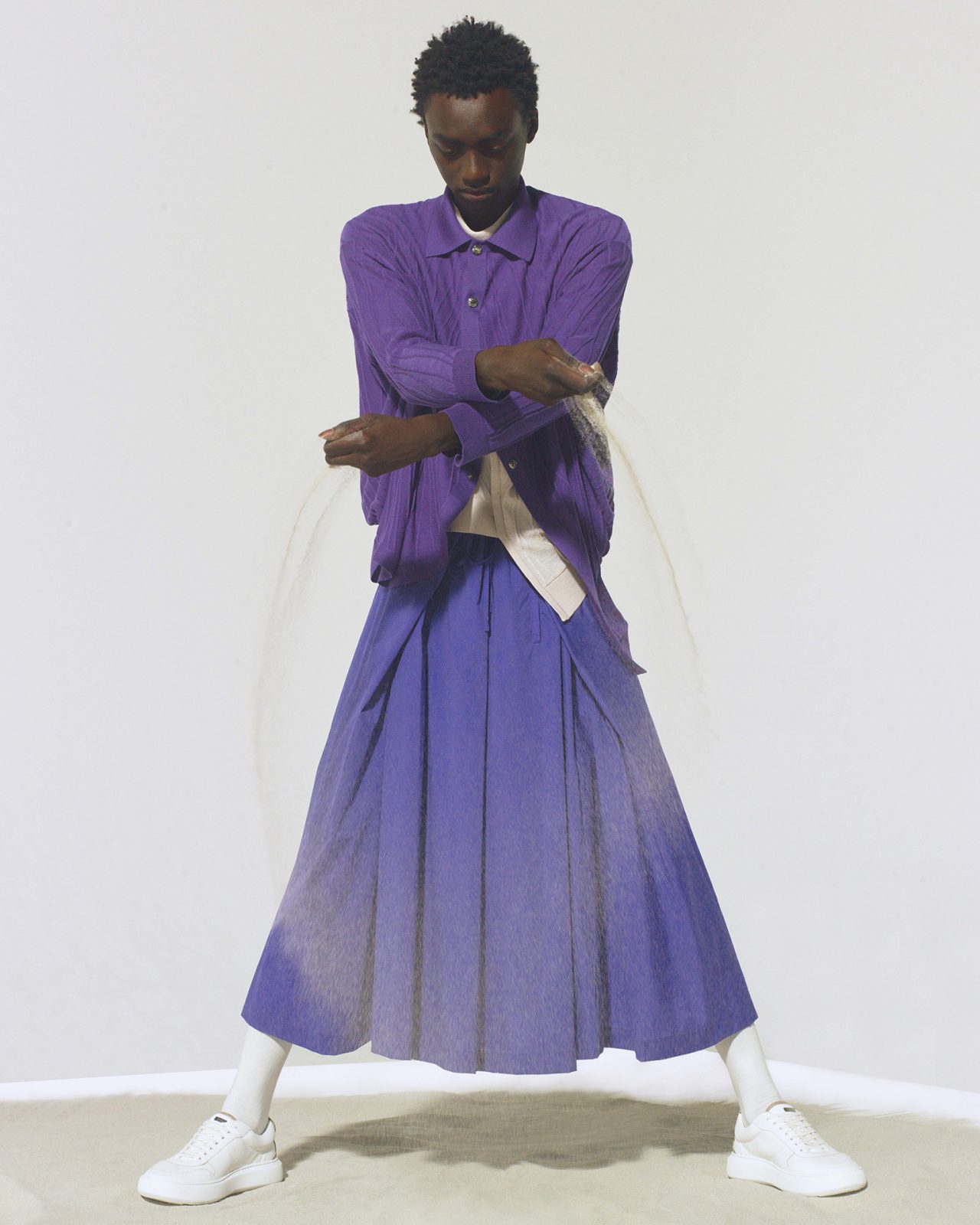 第2弾となる今回のテーマは「未知の惑星」。目を惹くデザインやカラーパレットが、地球の枠を超えた未来のワードローブを表現。ANREALAGE が得意とする惑星のような球体型のボールシルエットやラップボトムに、HERNO ならではの多様性とエレガンスを融合し、ファッションの新たな可能性を提示する。新作では、凹凸感のあるジャガードや光沢感のあるリップストップ、立体的な編み地模様が印象的なオーガニックニットを新たに採用し、ユニークなテクスチャーを創出。