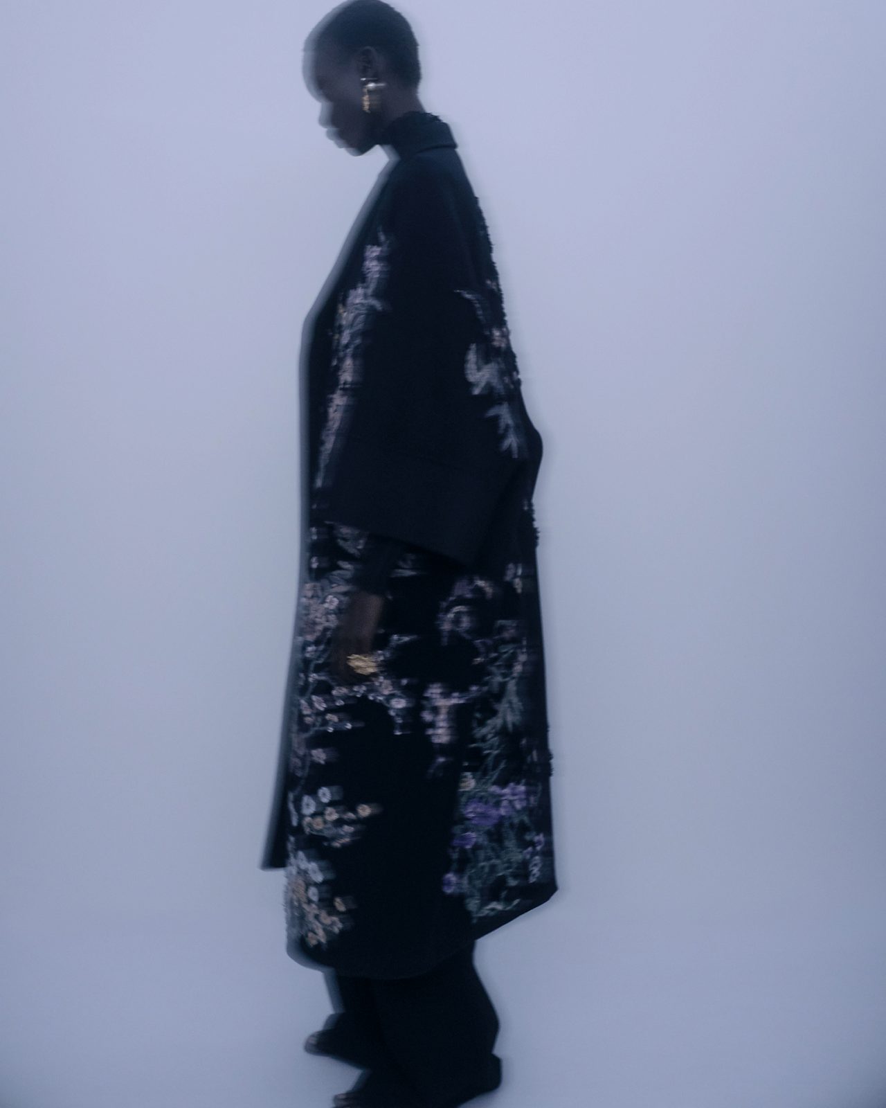 2025年フォールコレクションで Maria Grazia Chiuri がモチーフにしたのは古典的な日本の衣服。今回彼女は、メゾンの創設者 Chrstian Dior (クリスチャン・ディオール) が1957年秋冬コレクションで発表した、着物の上から羽織れるようデザインされた「Diorpaletot (ディオールパルト)」、「Diorcoat(ディオールコート)」を再構築し、本コレクションの主役である「キモノジャケット」に落とし込んだ。