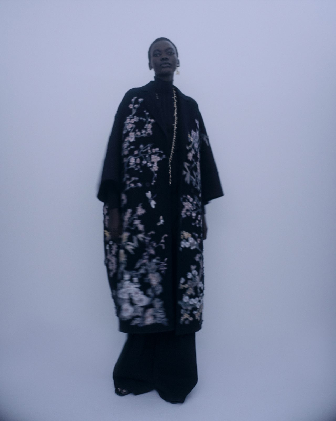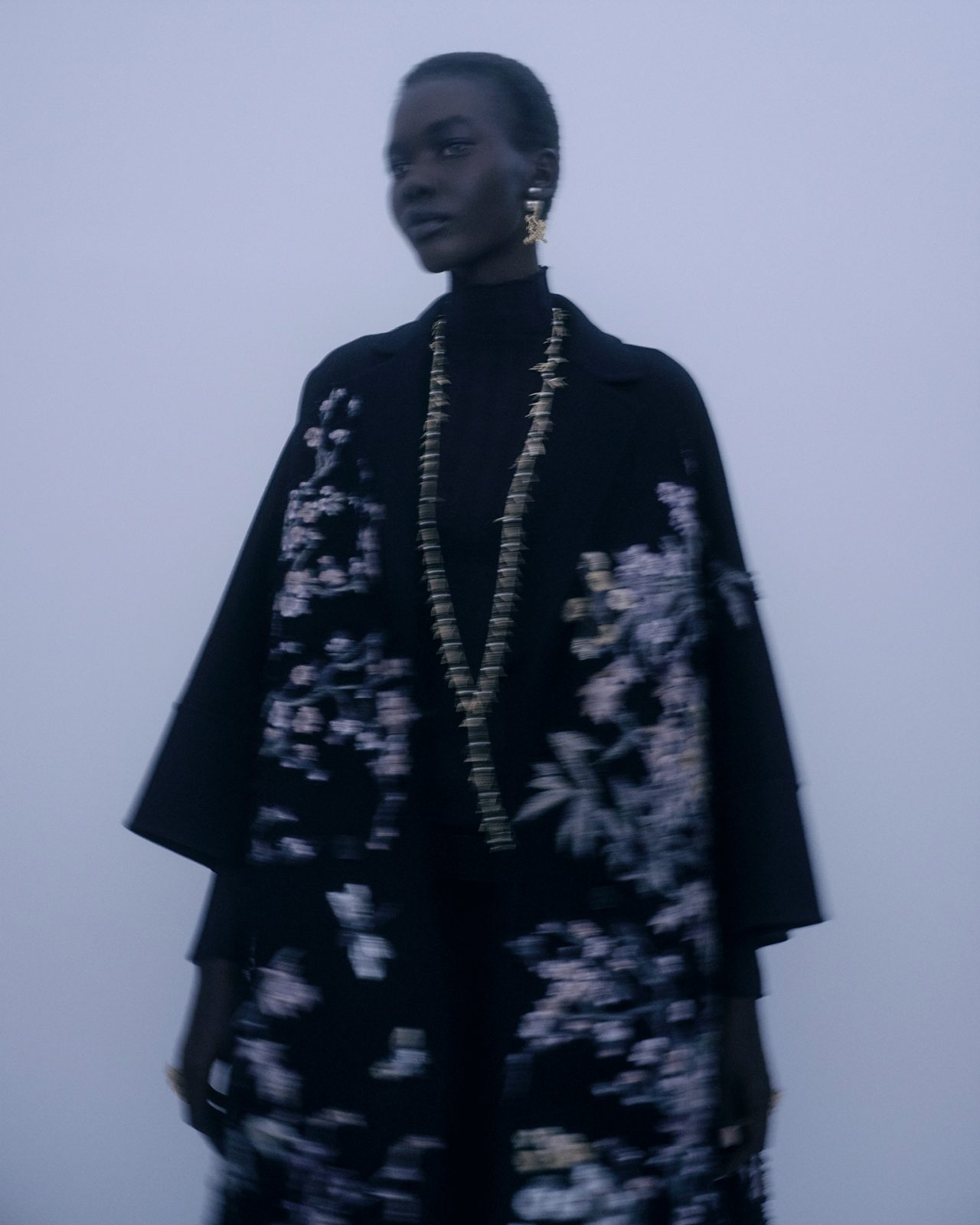 本コレクションのルックでは、伝統と卓越性を融合させ、フランスのテイラリングに宿る職人技と、着物特有の構造を結び付けた。定番のデニムジャケットは、古典的な日本の被服が持つフォルムを取り入れ、厳密かつ緻密な日本の折り紙に着想を得ている。ロングドレス、トップスは、Chrstian Dior が愛した花や庭園にインスパイアされ、桜をはじめとする日本らしい植物の柄が、絵付け、刺繍などの手法であしらわれている。