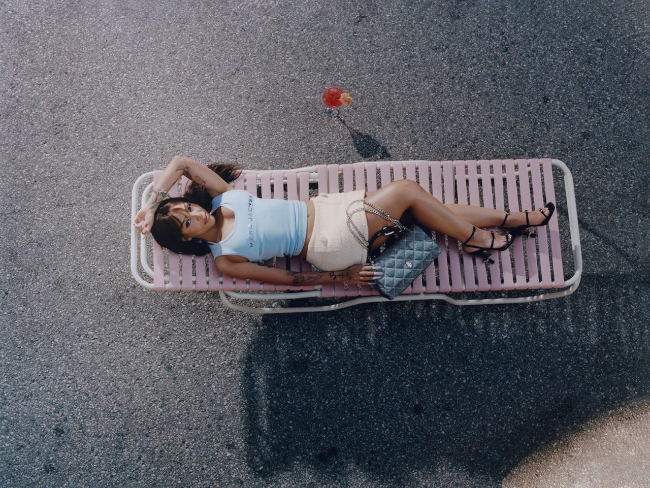 音楽とファッションを融合させた夏の大胆な表現がテーマの本キャンペーン。’80年代のポップとソウルを感じさせる楽曲「Jealous Type」がビジュアルのムードを彩り、Doja Cat が夢のような都市型ステイケーションを舞台に登場する。建設現場が日光浴スポットに、バス停がスパに変わるなど、非日常の中で彼女のグラマラスな魅力が際立っている。