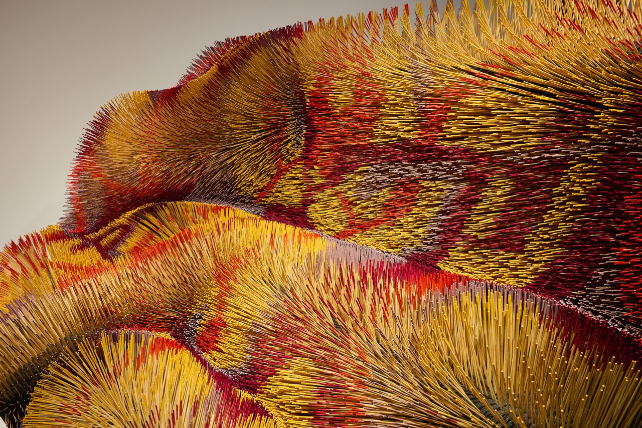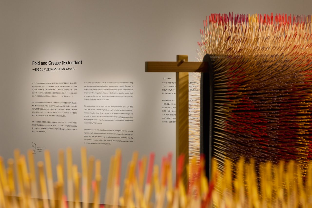 オランダを拠点とする創作集団 We Make Carpets は、日用品や建築材料を用いた緻密なインスタレーションを制作。即興的な共同作業で生み出されるその作品は、多くの人を魅了してきた。本展覧会は、昨年ミラノで発表されたプロジェクト「Fold and Crease」の続編として、既存作に新作を加えて展示されている。