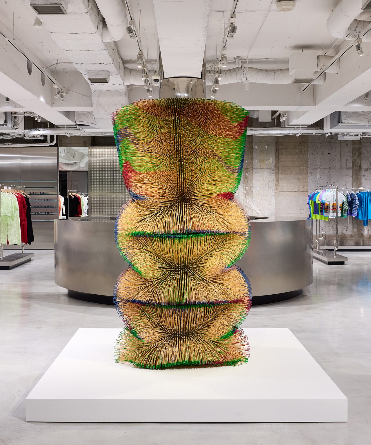 そんな彼らが、 ISSEY MIYAKE の服づくりに宿るクラフツマンシップなどから着想を得 て、見慣れた日用品に色彩やパターンを纏い、手仕事が織りなす創造力によって生み出された、美しい空間が広がる。ぜひ足を運び、日常の素材による非日常的な空間を体験してみては。