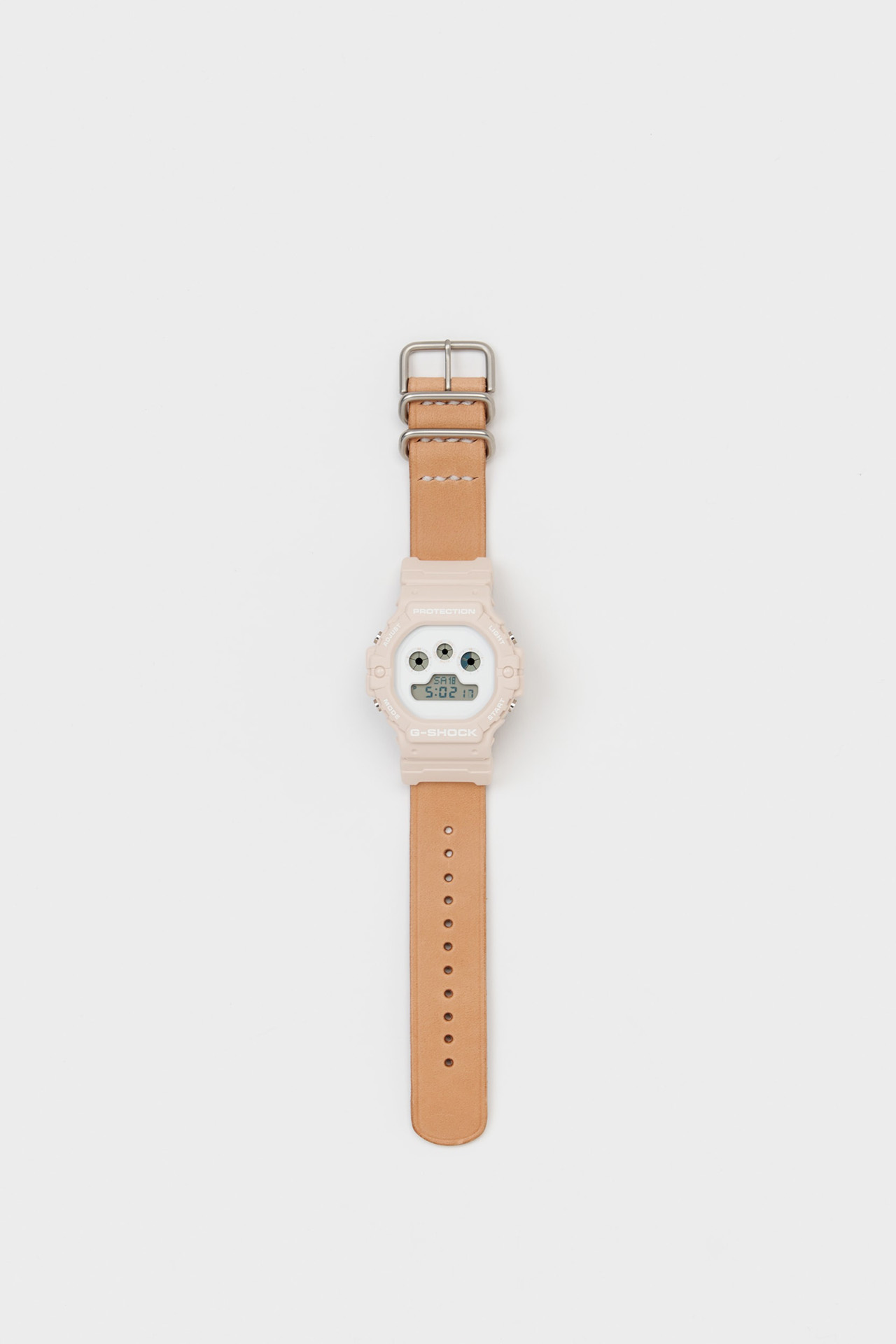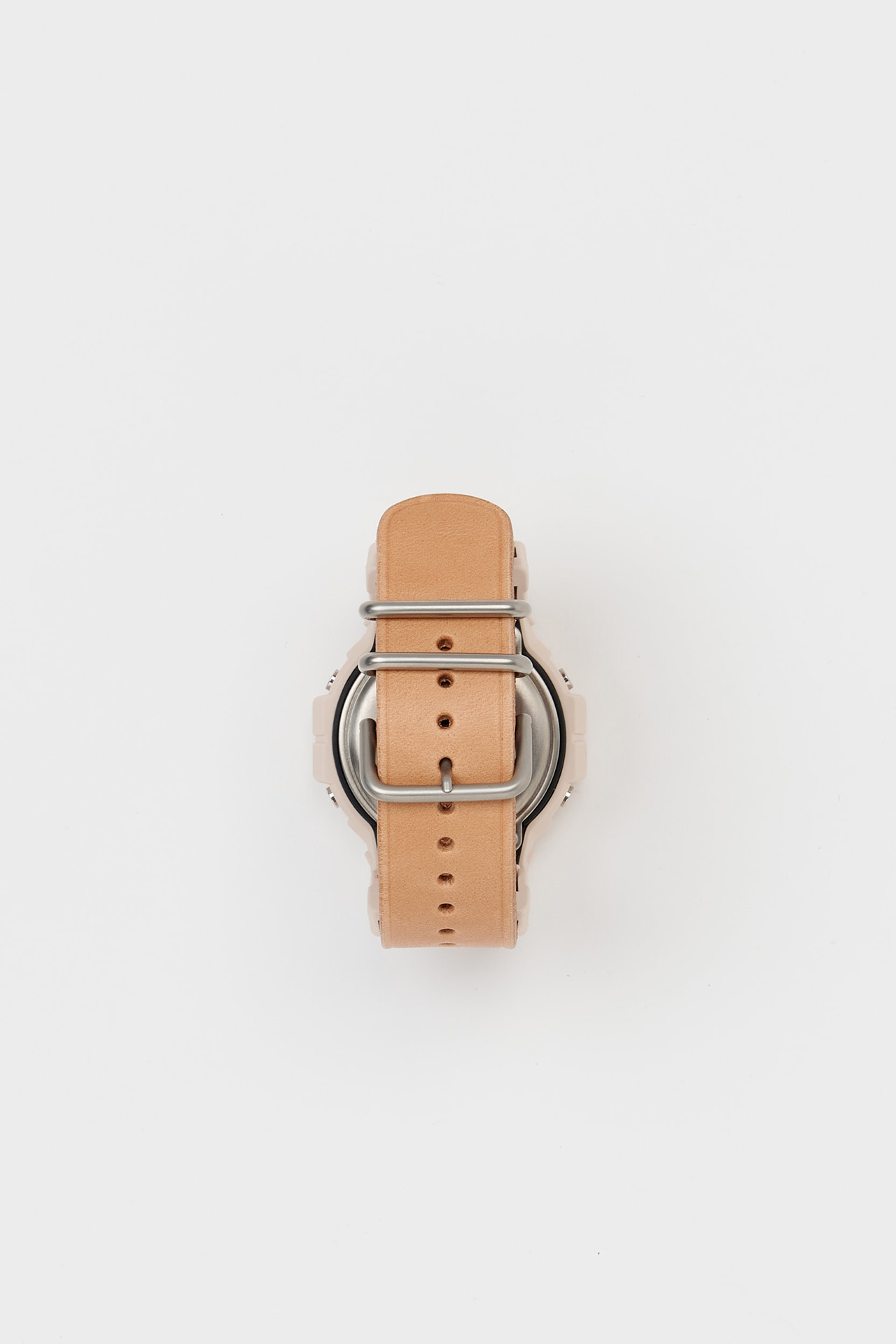 2018年に G-SHOCK に Hender Scheme 製のレザーベルトを組み合わせ、ブランド初となる新たなコラボレーションとして誕生した「Hender Scheme × G-SHOCK」シリーズ。第4弾となる今作は、G-SHOCK のアイコニックなモデルの一つである「DW-5900」を軸に、Hender Scheme らしさあふれるベジタブルタンニンレザーが融合。手縫いで仕上げたレザーベルトは、使用する度に色と質感が経年変化するのも魅力である。さらに、文字盤にホワイトカラーを採用することで全体的にクリーンな佇まいになり、洗練されたデザインに仕上がった。