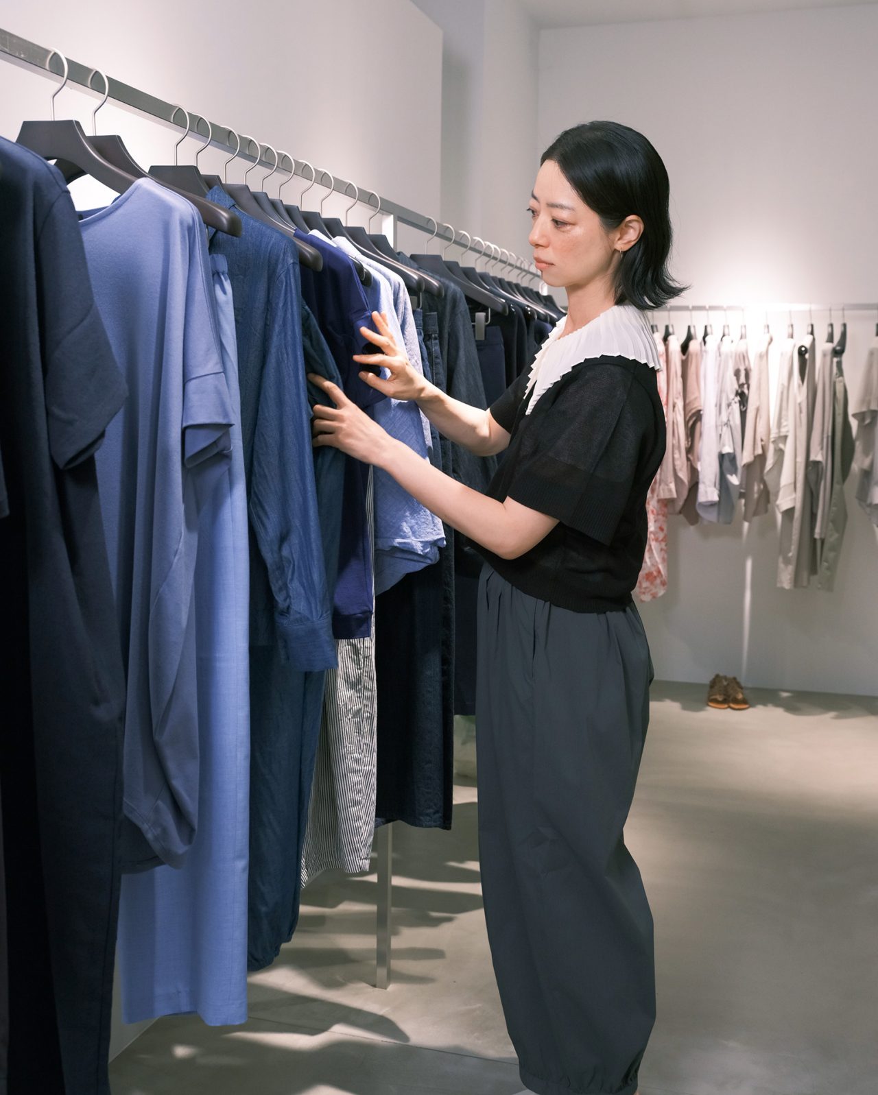 「Ageless, Sceneless, Seasonless (年代、シーン、シーズン問わず永く愛される)」。mizuiro ind AOYAMA は、そうした「とらわれのない美しさ」を体感できる空間となっている。時代に追われることなく、自分の感性と丁寧に向き合う。その営みにそっと寄り添うような、穏やかで自由な時間が、ここには流れている。オープンに先駆けて行われたオープニングイベントには、俳優の市川実和子、モデルの藤井夏恋、秋元梢が来場。それぞれが mizuiro ind のアイテムを纏い、ブランドの哲学を体現するような佇まいで空間を彩った。肩肘張らず、自分のペースで服と向き合えるmizuiro ind AOYAMA にぜひ足を運んでみてほしい。