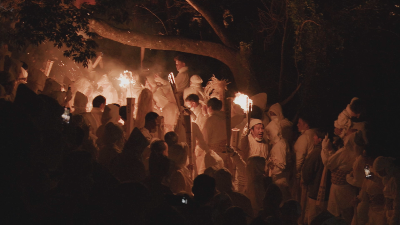 向井山朋子が手がけたのは、東京・青ヶ島の手つかずの大自然と、彼女自身の故郷である和歌山県新宮市にある神倉神社にて毎年執り行われる、1400年の歴史を誇る女人禁制の火祭り「お燈まつり」、そしてウクライナの作曲家マキシム・シャリギンによるピアノ曲「9つの前奏曲」を交錯させた新作アートフィルム「ここから」(kokokara)。本作品は「空・海・火」という象徴的なテーマを掲げ、自然と人間、儀式と芸術、ジェンダーと伝統など多層的な問いを投げかける。ジャンル、形式にとらわれない表現を探求してきた向井山らしい作品を完成させた。
