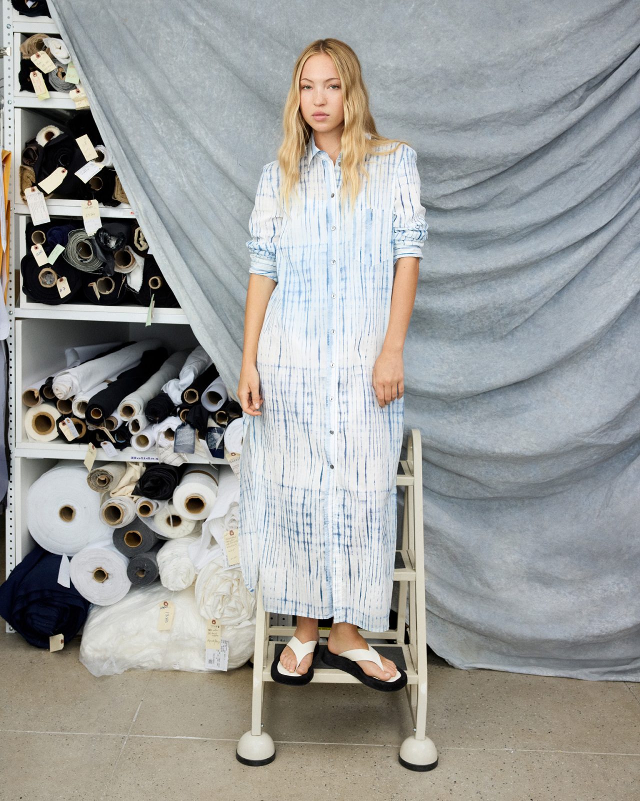 今回のコレクションでは、クラフトマンシップとリラックスムードを融合し、洗練された定番アイテムがラインナップ。夏らしさを演出するにあたり、「デニム」「シャンブレー」「ボイル」という3つのタイムレスなサマー素材を軸に、動きやすいデザインと軽さを追求。レイヤリング、ボリューム感、スタイルなどにこだわり、洗練されたシルエットを生み出した。特に注目すべきは、ドレープ性を備えた新たなデニム素材。手に吸い付くようなやわらかな手触りと通気性のある軽さが魅力で、これからの季節に最適な機能性が備わった。日焼け加工のようなフェード感を再現した繊細なテクスチャーが、夏の着こなしにアクセントを加えてくれる。