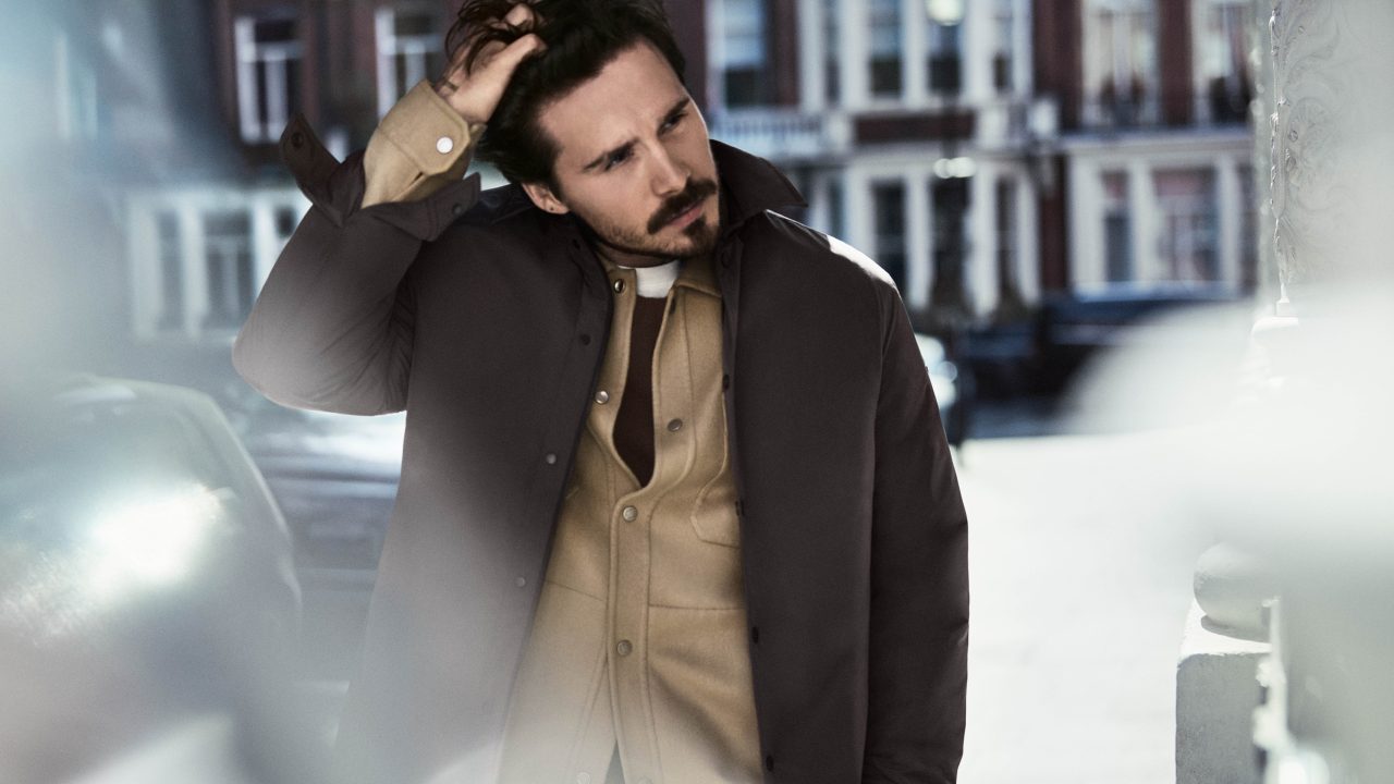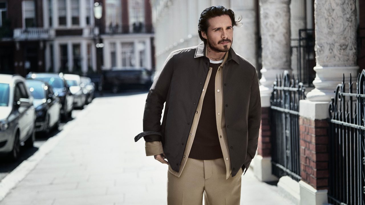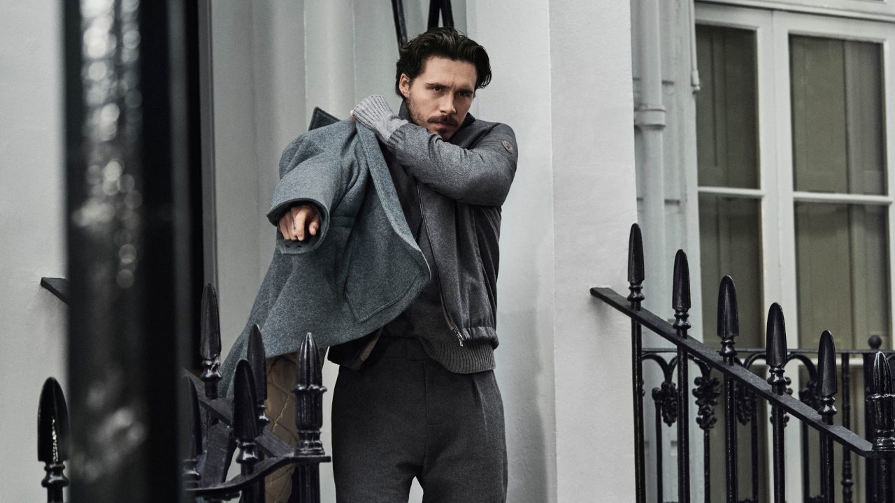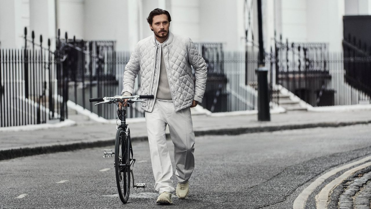料理人や写真家など多岐に渡って活躍する Brooklyn Beckham は、自身の感性を加えた都会的なワードローブで登場。今回のコレクションから新たに採用された、斜めのボーダンキルティングやニットの襟元が印象的なナイロンアウターを主役に、ブラウンやグリーン、グレーといった落ち着いたカラーパレットでまとめ、スマートな着こなしを完成させた。