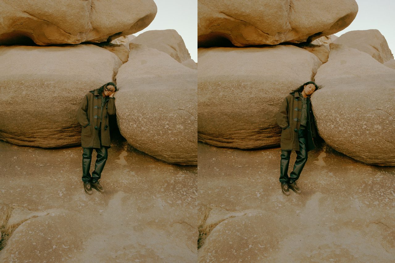本キャンペーンは、アメリカ・カリフォルニアにあるモハーヴェ砂漠を舞台に、ロンドンを拠点に活躍する大阪出身のフォトグラファー PICZO が撮影を手がけた。モハーヴェ砂漠の広大で静寂な風景は、都市の喧騒や人工的なものとは対照的であり、独特のムードを演出。年月をかけて風によって削られた岩石や、空に向かってまっすぐ伸びる木々が印象的なアクセントとなり、過去にこの地を訪れた多くの人々の思いが重なり合うこの場所が、新たな価値を創出している。そんな特別なロケーションと、NICENESS の洗練されたアイテムが響き合い、唯一無二のビジュアルが完成した。