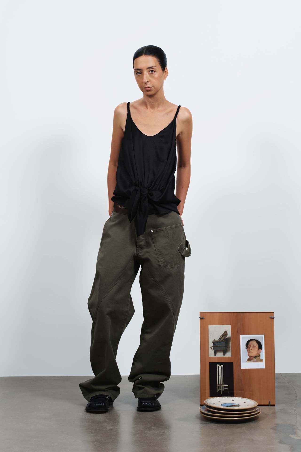 今季のコレクションは、Jonathan が最も愛するクリエイション技法であるキュレーションを再定義。展覧会などで作品を選定する行為を指すこの言葉を、自身のクリエイションの根幹に位置づけた。直感や美意識、個人的な経験に基づきながら、調和するものも、時に意外性のある組み合わせも、あえて同列に並べて見せることが、ブランドにおける選ぶという行為の本質となっている。