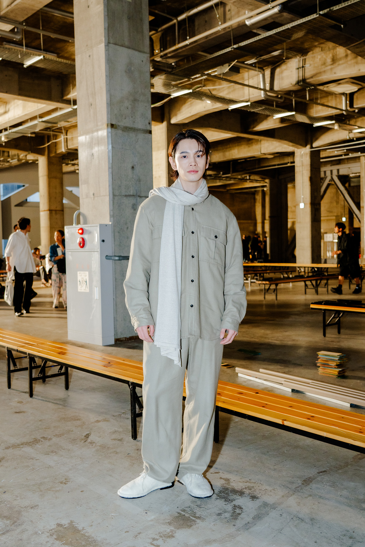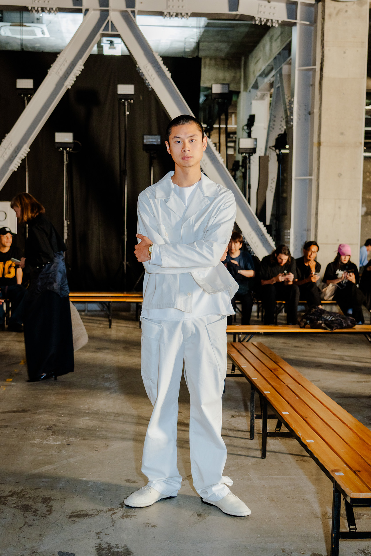 さらに、落ち着いたムードの中にも程よい熱気が漂う会場には、モデルやアーティストの姿も見られ、コレクションを華やかに彩った。静かな熱気と高揚感が交錯する空間で披露された本コレクションを機に、ATTACHMENT をチェックしてみてはいかが。