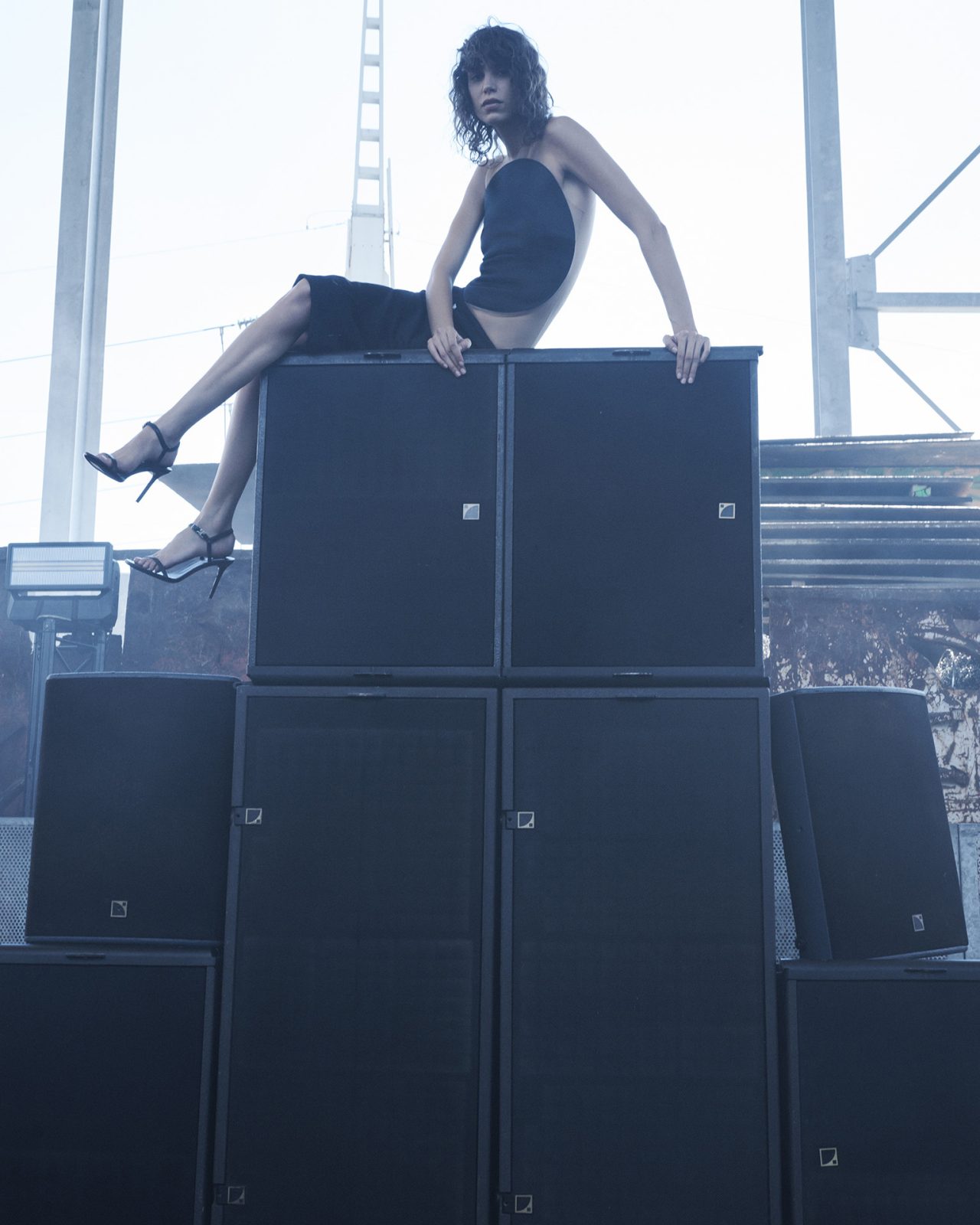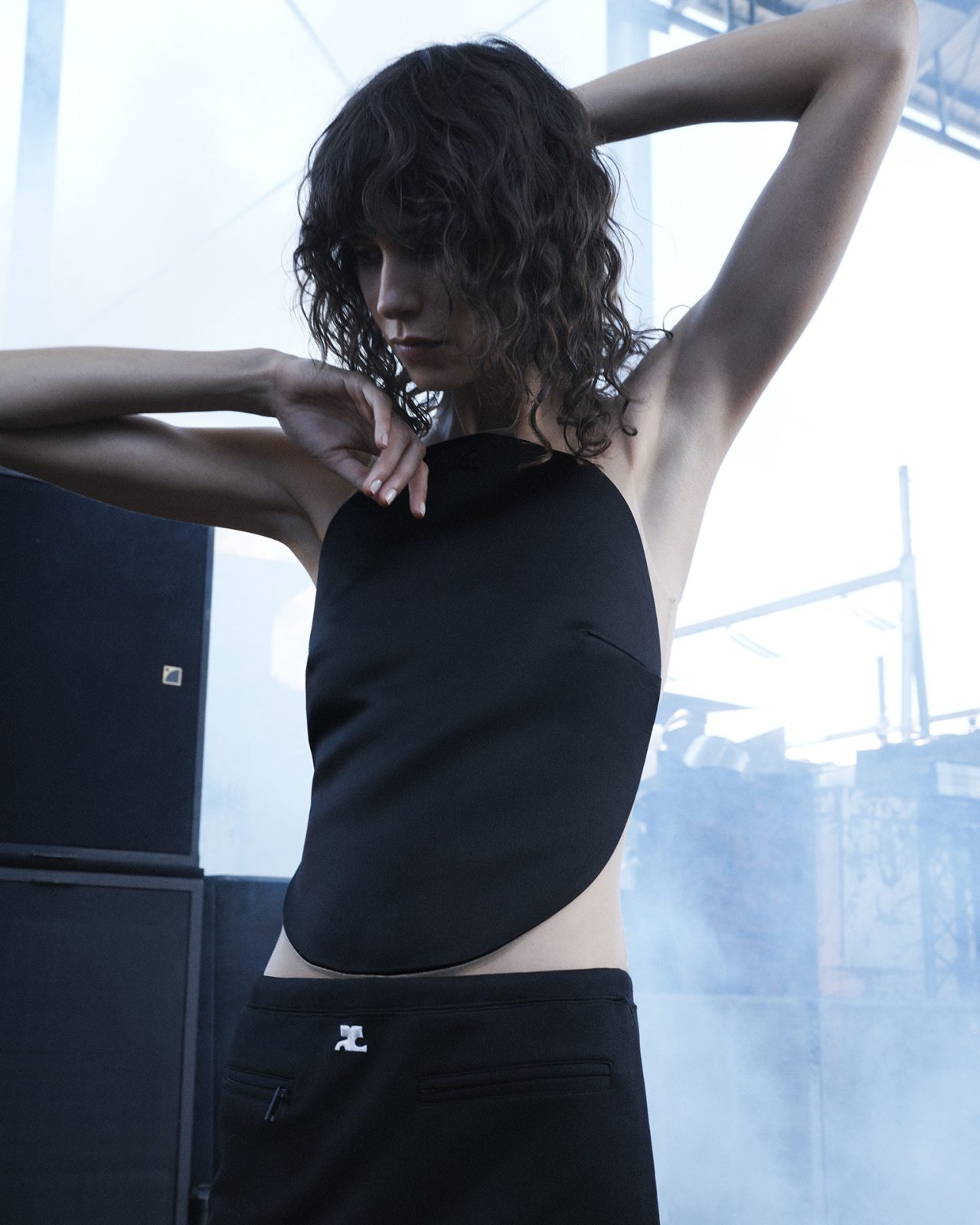 キャンペーンの舞台は、6月末に開催された「Courrèges Summer Club 2025 (クレージュ サマー クラブ 2025)」。アルゼンチン出身のモデル Mica Arganaraz (ミカ・アルガナラス) がコレクションを纏い、フォトグラファー Sam Rock (サム・ロック) が光と音が交差する瞬間を、エネルギッシュかつドリーミーに捉えた。