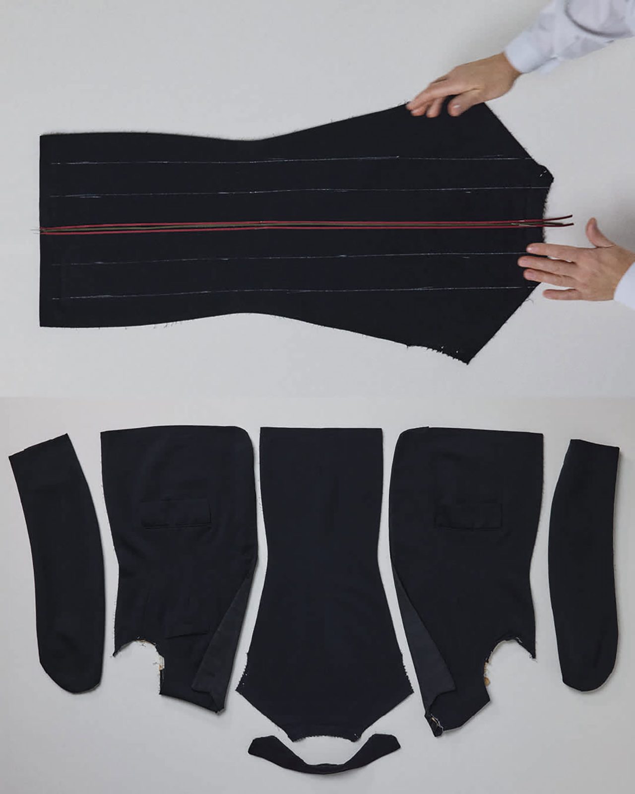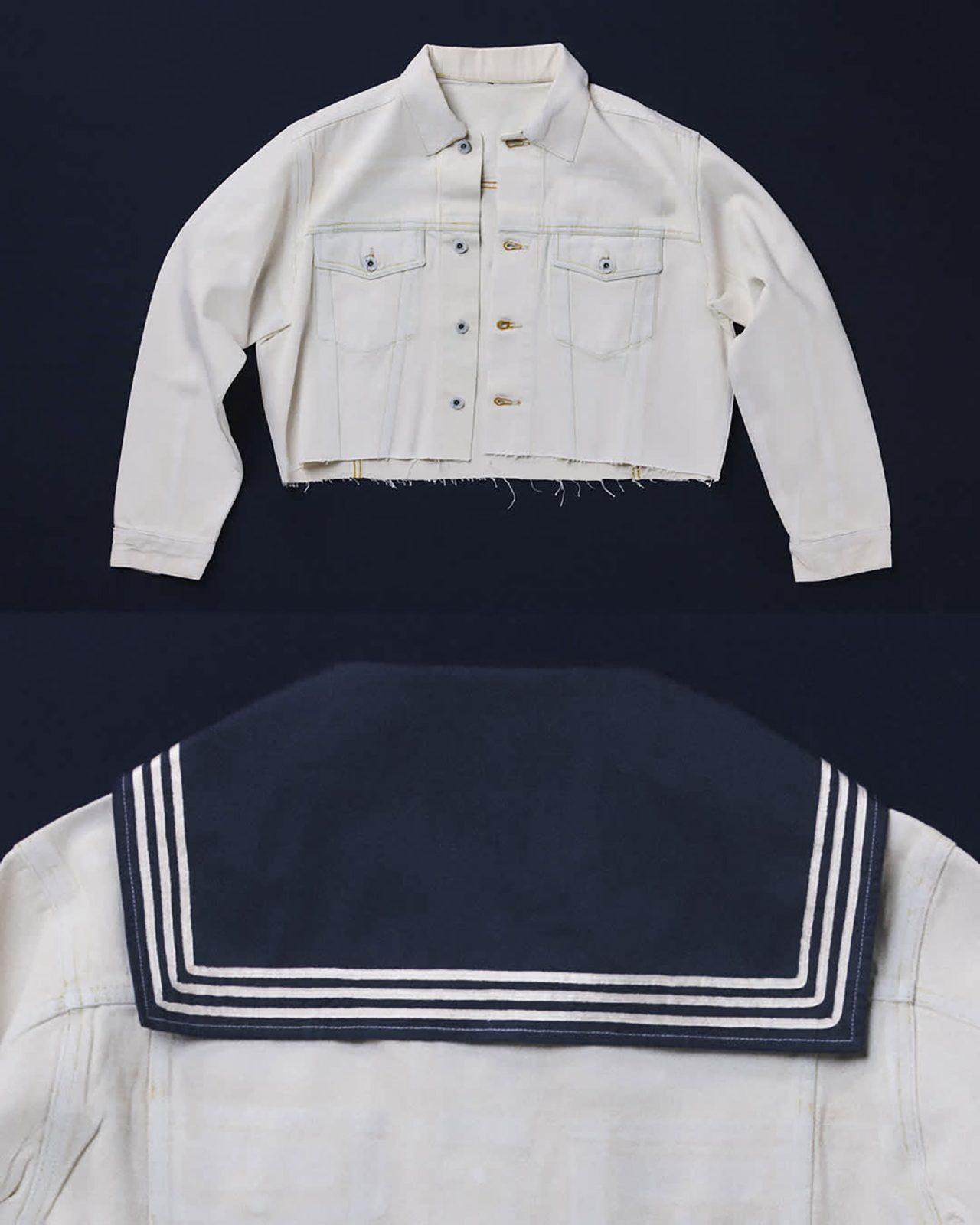 「Marinier」は、夏らしいクラシックレッド、ホワイト、ブルーを基調としたマリンスタイルのコレクション。ヴィンテージデニムやボーダー T をパッチワークしたドレスやジャケットを展開する。「Evening」は1920〜30年代のランジェリーを T シャツの上にレイヤードしたり再仕立てしたスーツと合わせたりすることで、、フォーマルな印象からモダンなカジュアルウェアに昇華。「Foulard」は、ヴィンテージのシルクスカートやモダンな Miu Miu のプリントをあしらった唯一無二のホルターネックやスカートで構成され、1920年代のリヴィエラの陽光を思わせるような自由で気ままなムードが漂っている。