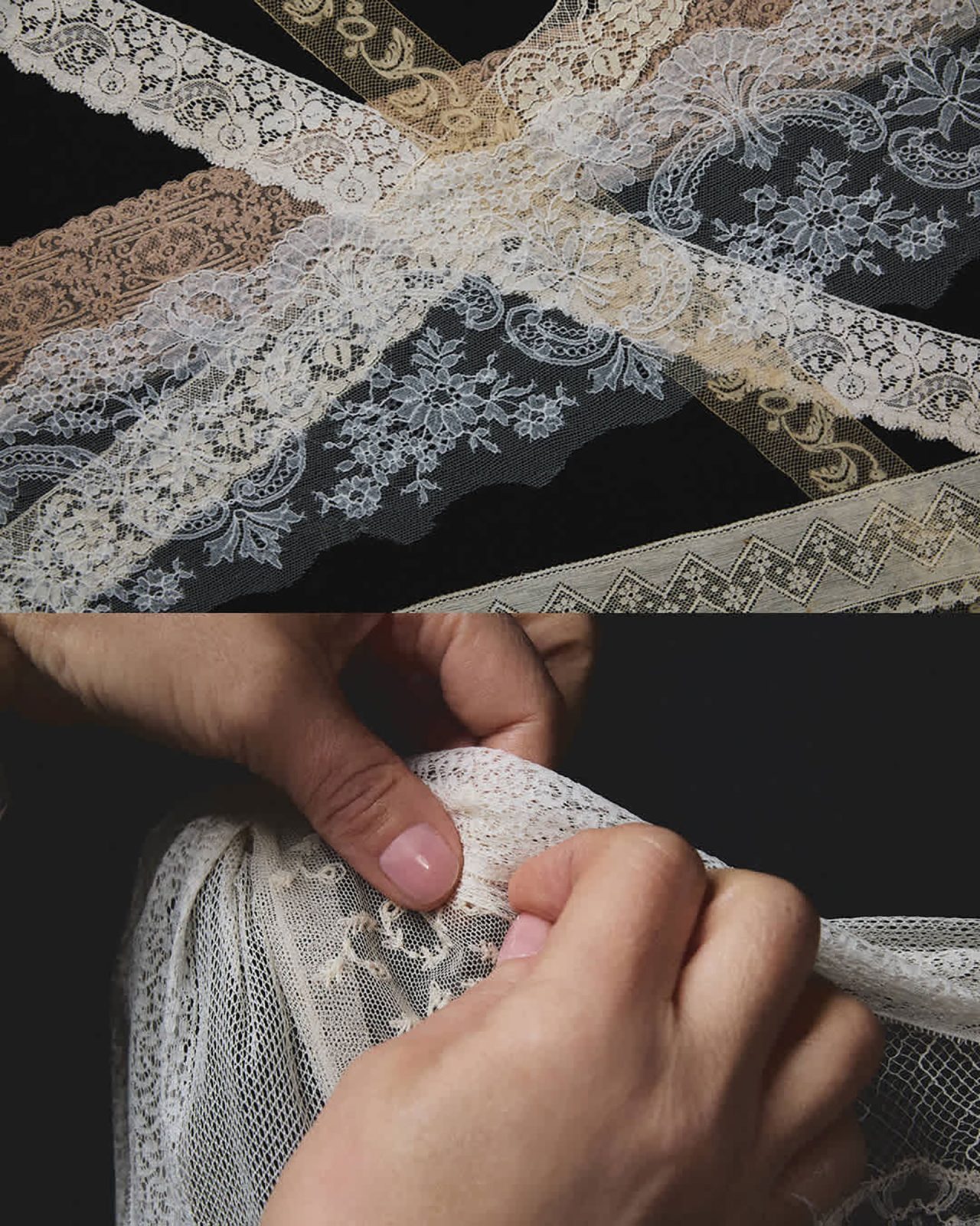 Miu Miu はその情景を、繊細かつ卓越した技術によってファブリックへ落とし込んだ。今回の新作コレクションは、「Marinier (マリニエール)」「Evening (イブニング)」「Foulard (フラール)」の3つのテーマから構成されている。アイテムは、いずれも1920〜30年代のヴィンテージスタイルを現代的に再解釈しており、ヴィンテージ素材やアイテムを新たなデザインに仕立てている。
