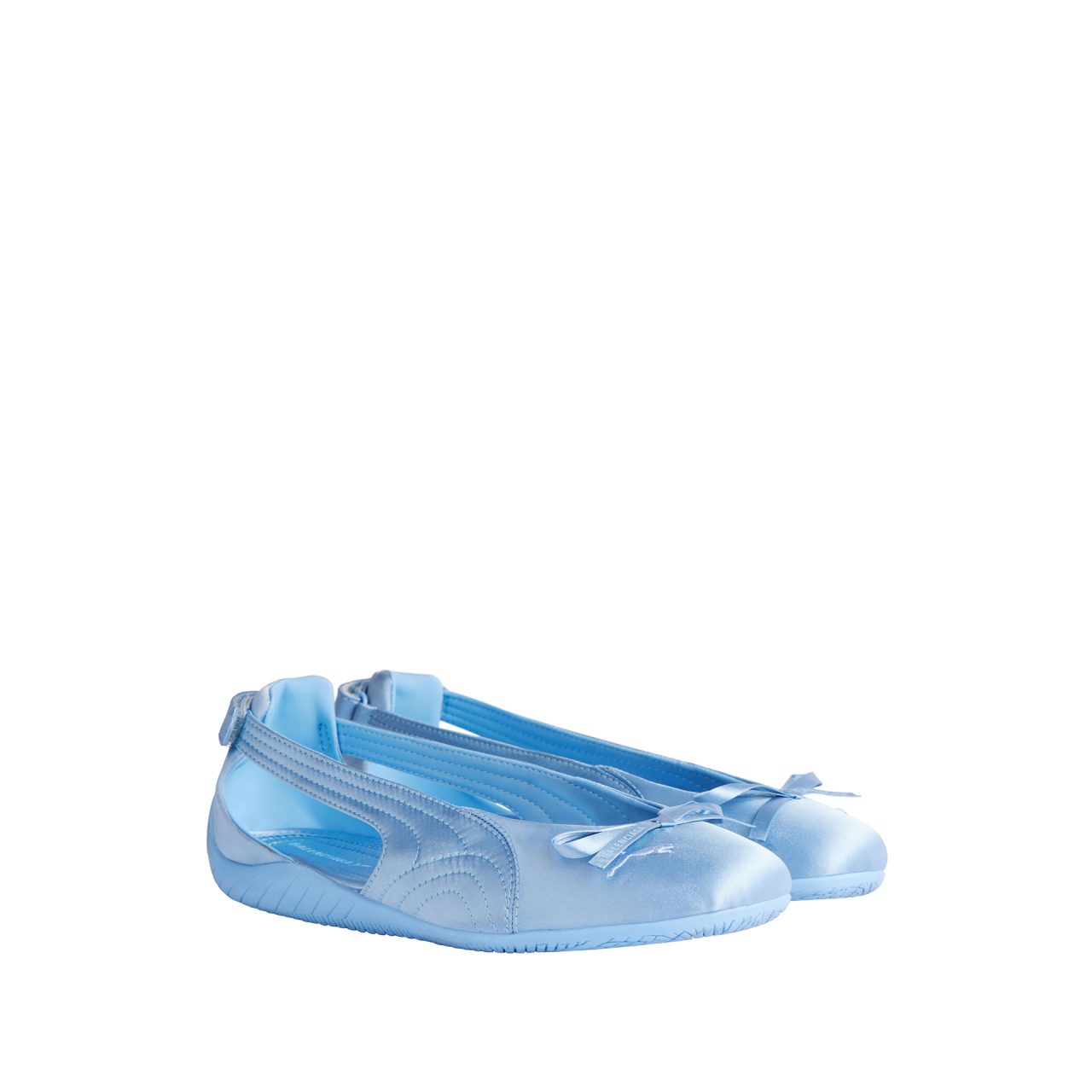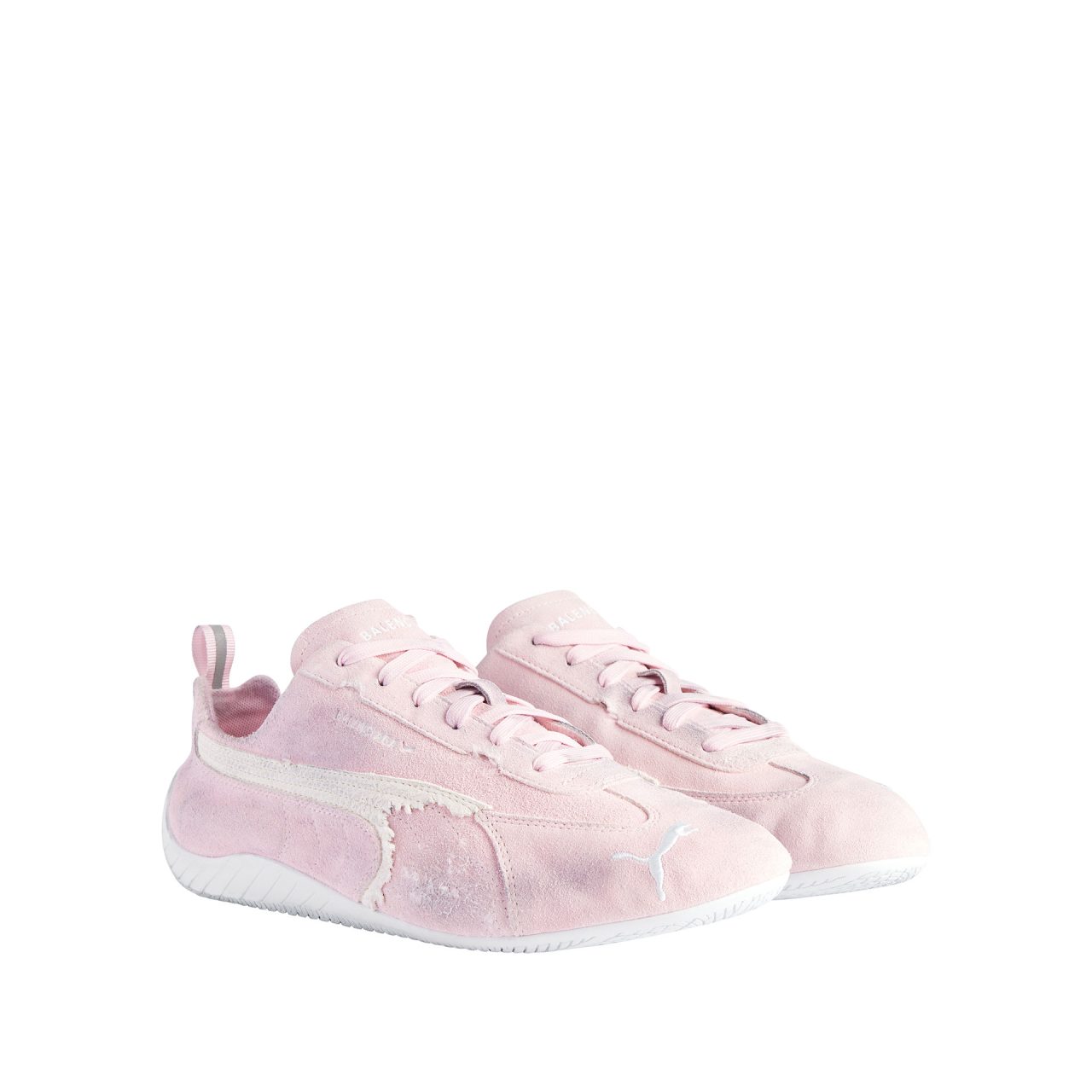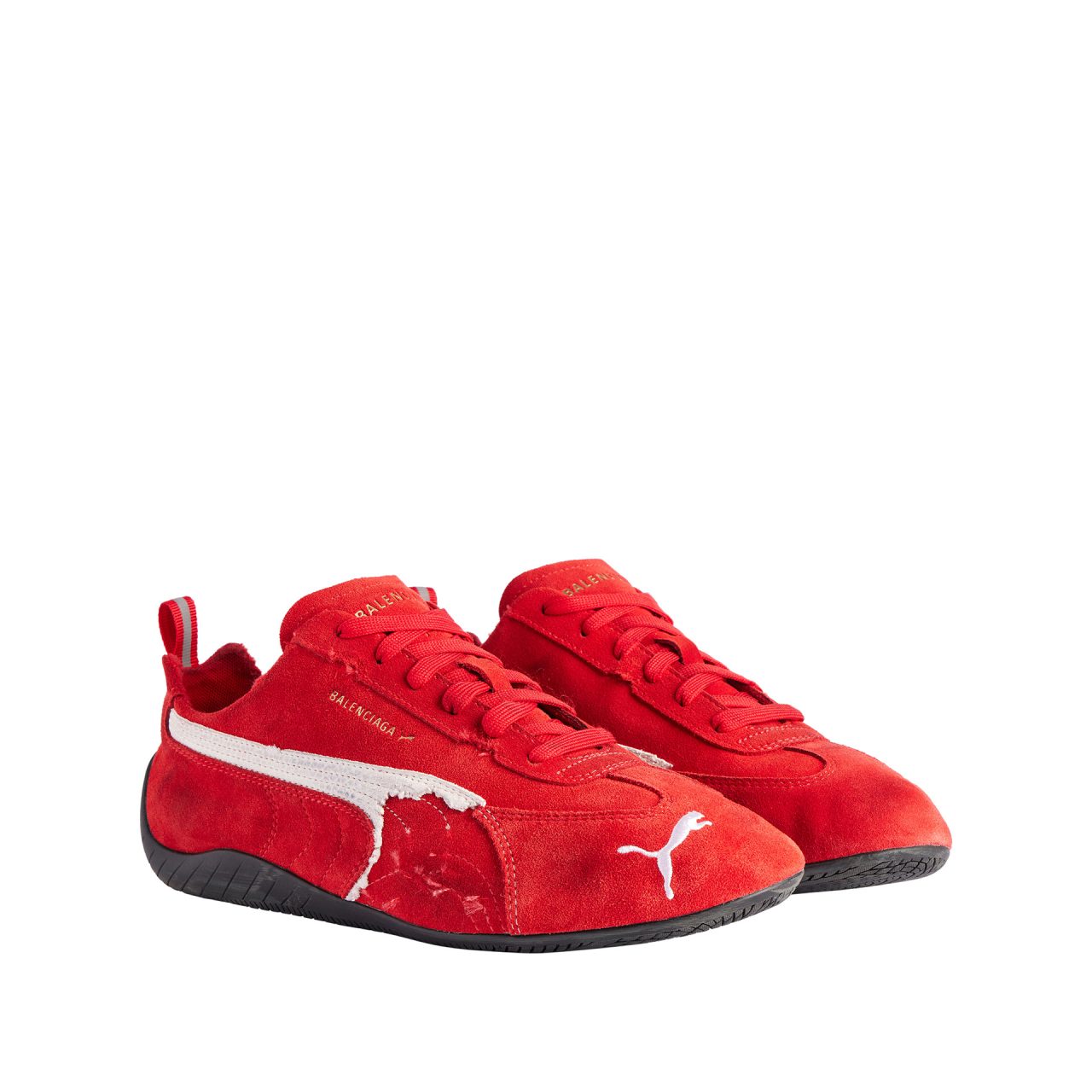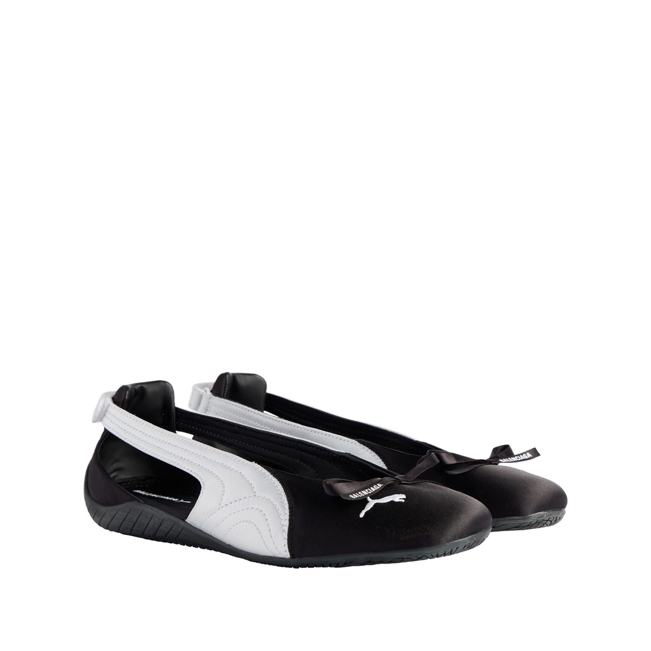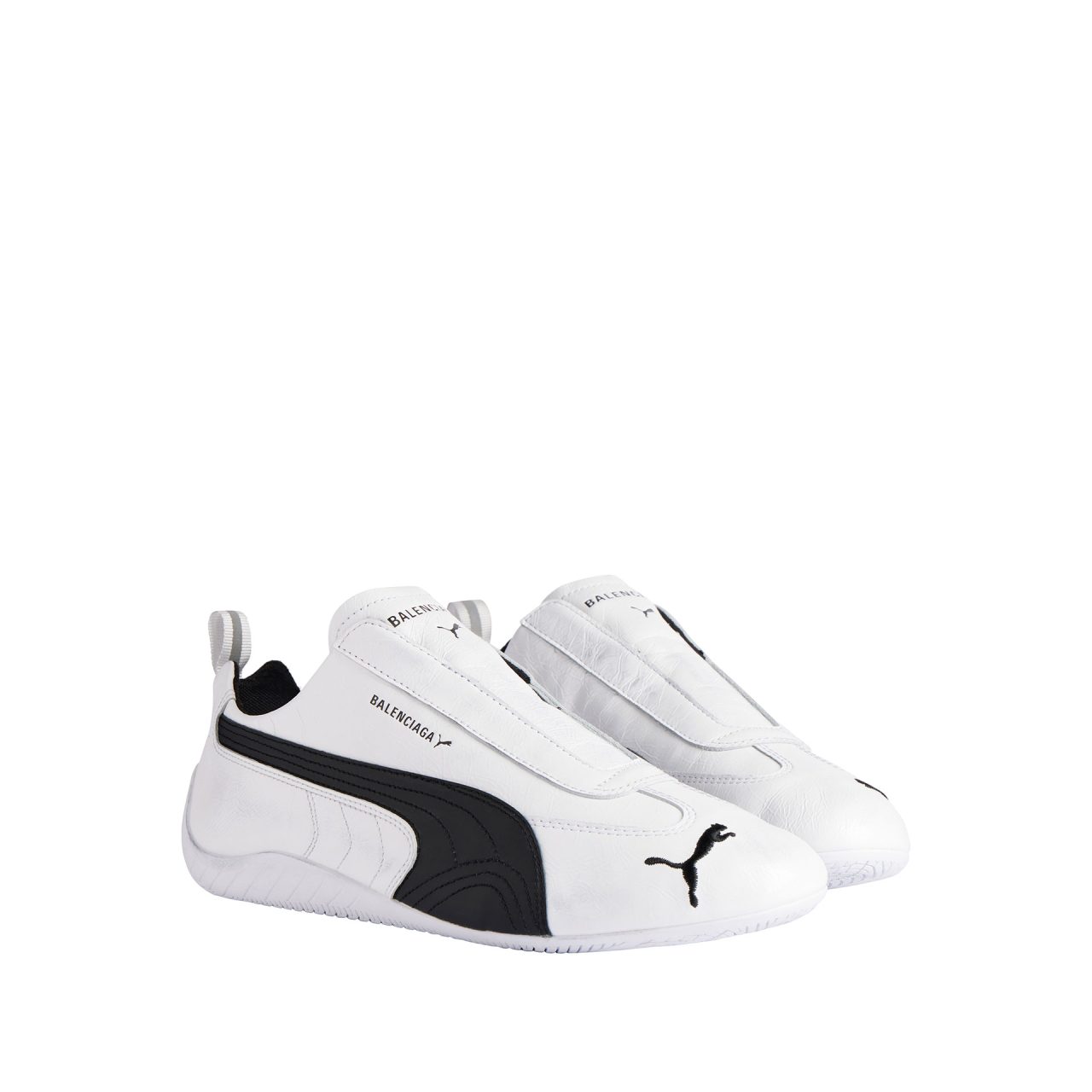 本コラボレーションでは、Balenciaga の特有のデザイン言語と PUMA の高機能スポーツウェアにおける伝統を融合したアイテムを多数展開。フットウェアでは、1999年に発売された PUMA のアイコニックなスニーカー「Speedcat (スピードキャット) 」を再解釈。しなやかなレザーで仕立てられたシューレースレスのスリッポン型「Destroyed Speedcat (デストロイド スピードキャット) 」や、バレエシューズのシルエットを取り入れた「Balenciaga | PUMA Ballerina」が登場する。