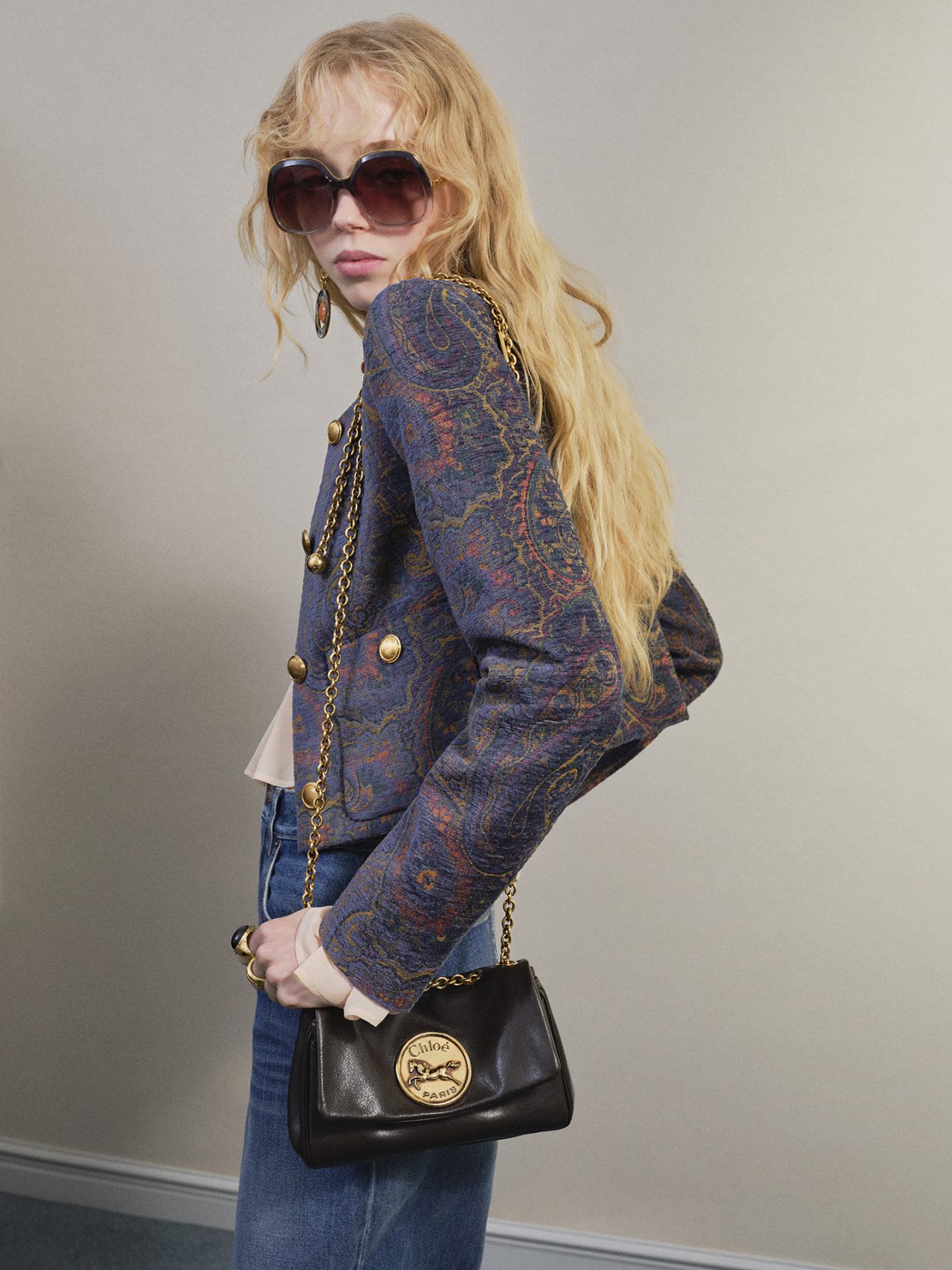 新たに登場した「CHLOÉ HERITAGE」と「HORSE MEDAL」は、メゾンのアイコンピースがあしらわれた、デザイン性と汎用性を兼ね揃えた最新バッグ。アイテムの中央にはクロエ・ウーマンを体現する自由な精神の証として、サドルを着用せずに疾走する馬が描かれている。