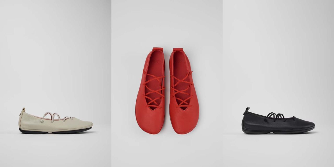 カンペールのアイコン「RIGHT NINA」は、一般的なバレエシューズとは一線を画す存在。ミニマルでいて遊び心あるデザインが特徴だ。今シーズンはソフトでライニングを省いたアッパーを採用し、足を優しく包み込むフィット感へアップデート。クラシックなグローブ構造に360°ステッチのラバーアウトソールを組み合わせ、耐久性と快適さを両立している。伸縮性のあるストラップや上質なレザー、クッション性の高い EVA インソールが一日中の歩行をサポートする。定番のバレリーナやメリージェーン、人気の「TWINS」に加え、今季はレースアップデザインが新登場。華奢なゴムを使ったレースアップは素足でもソックスやタイツでも映え、秋のスタイリングに新しいアクセントを添えてくれる。