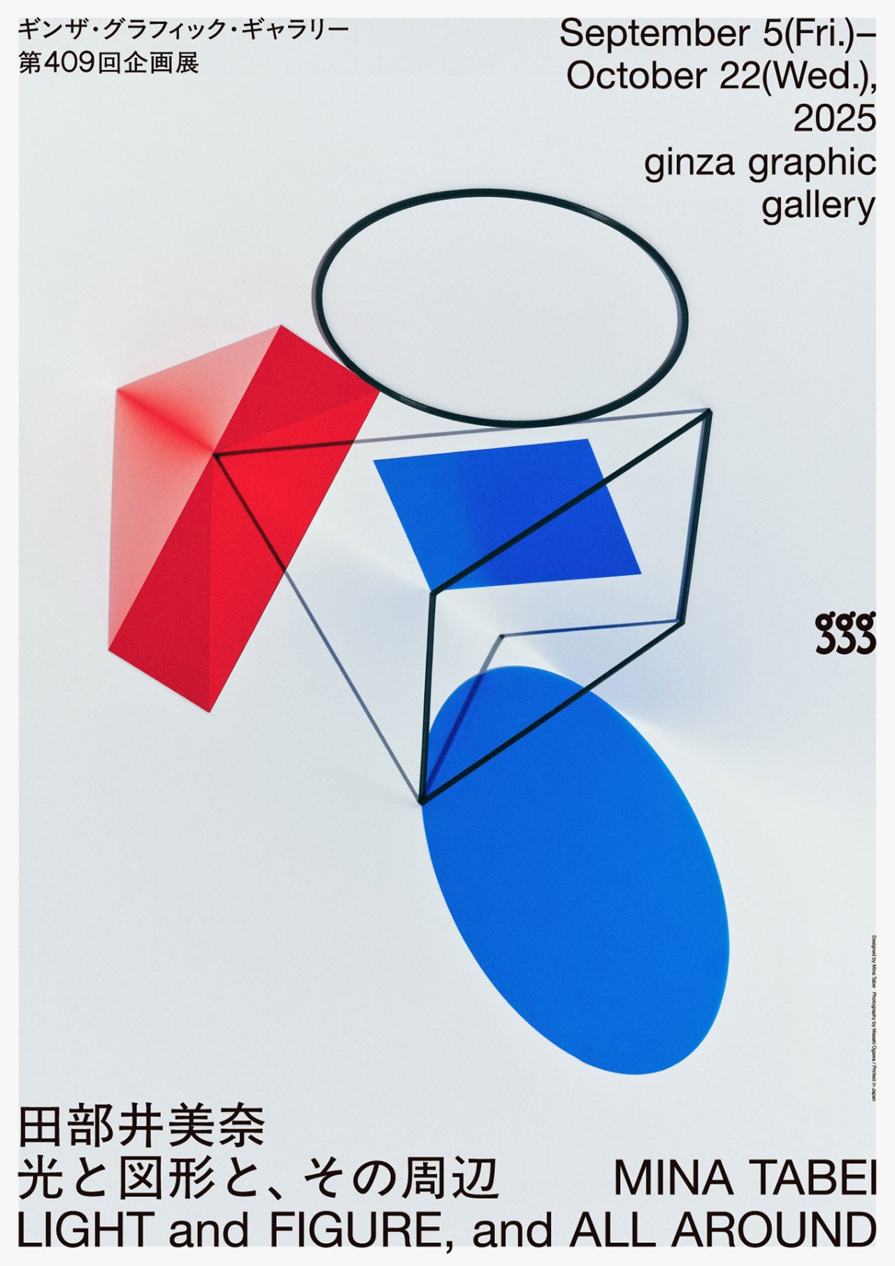 アートディレクター、グラフィックデザイナーとして活動する田部井美奈。本展は、2018年より取り組む「光と図形」の最新作が、空間ごと体感できるかたちでお披露目される。また、これまでに手掛けたグラフィックワークの代表作が一堂に会す特別な展示となる。彼女の軌跡に迫る本展は、ギンザ・グラフィック・ギャラリーにて9月5日(金)から10月22日(水)まで開催される。
