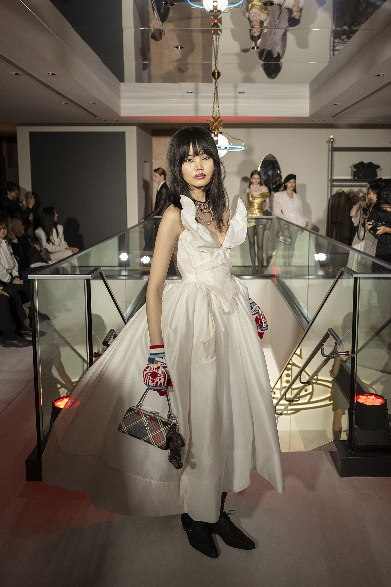 また、グランドオープンを記念して、青山店限定のアイテムも登場。日本の美に包まれた空間で、Vivienne Westwood らしさ溢れるスペシャルなアイテムがラインナップする。さらに、先日行われたオープニングイベントでは、メンズ・ウィメンズ・ユニセックスの2025年秋冬コレクションがランウェイ形式でお披露目。Vivienne Westwood の CEO である Carlo D’Amario (カルロ・ダマリオ) がホストを務め、俳優の夏木マリや松岡茉優、黒木メイサなどの豪華キャストが来場し、華やかなイベントで幕開けを祝福した。日本の伝統建築とブランドの世界観が融合した空間を体験しに、ぜひ足を運んでみては。