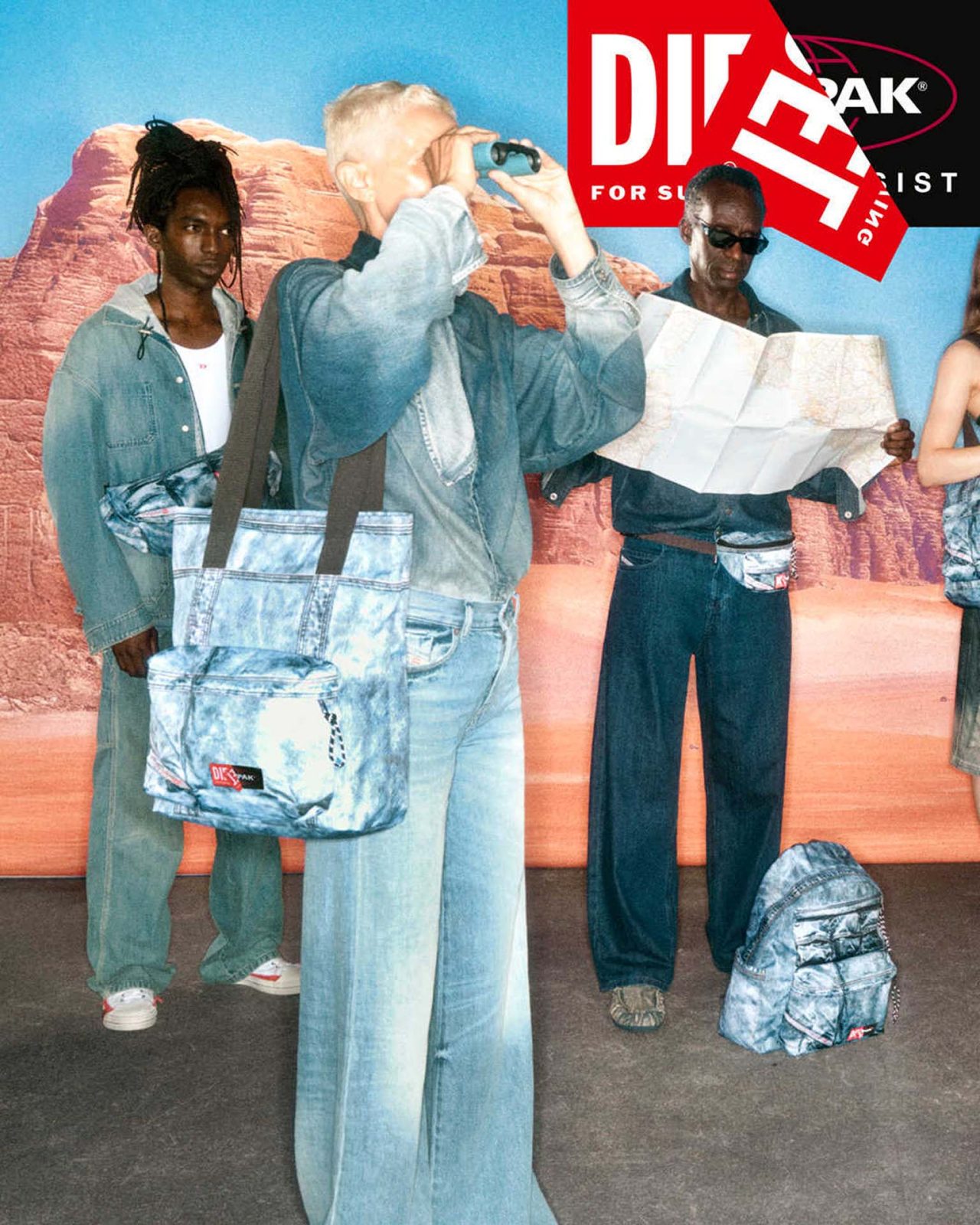 また、コーデュラ素材とカットオフデニムを融合させた異素材ミックスのモデルも登場。日常使いに最適なバッグには、随所に DIESEL ならではの個性が光り、冒険心をくすぐるデザインに仕上げられている。再構築されたロゴと EASTPAK のオリジナルロゴの組み合わせは、両ブランドの見事な融合を象徴するディテールだ。