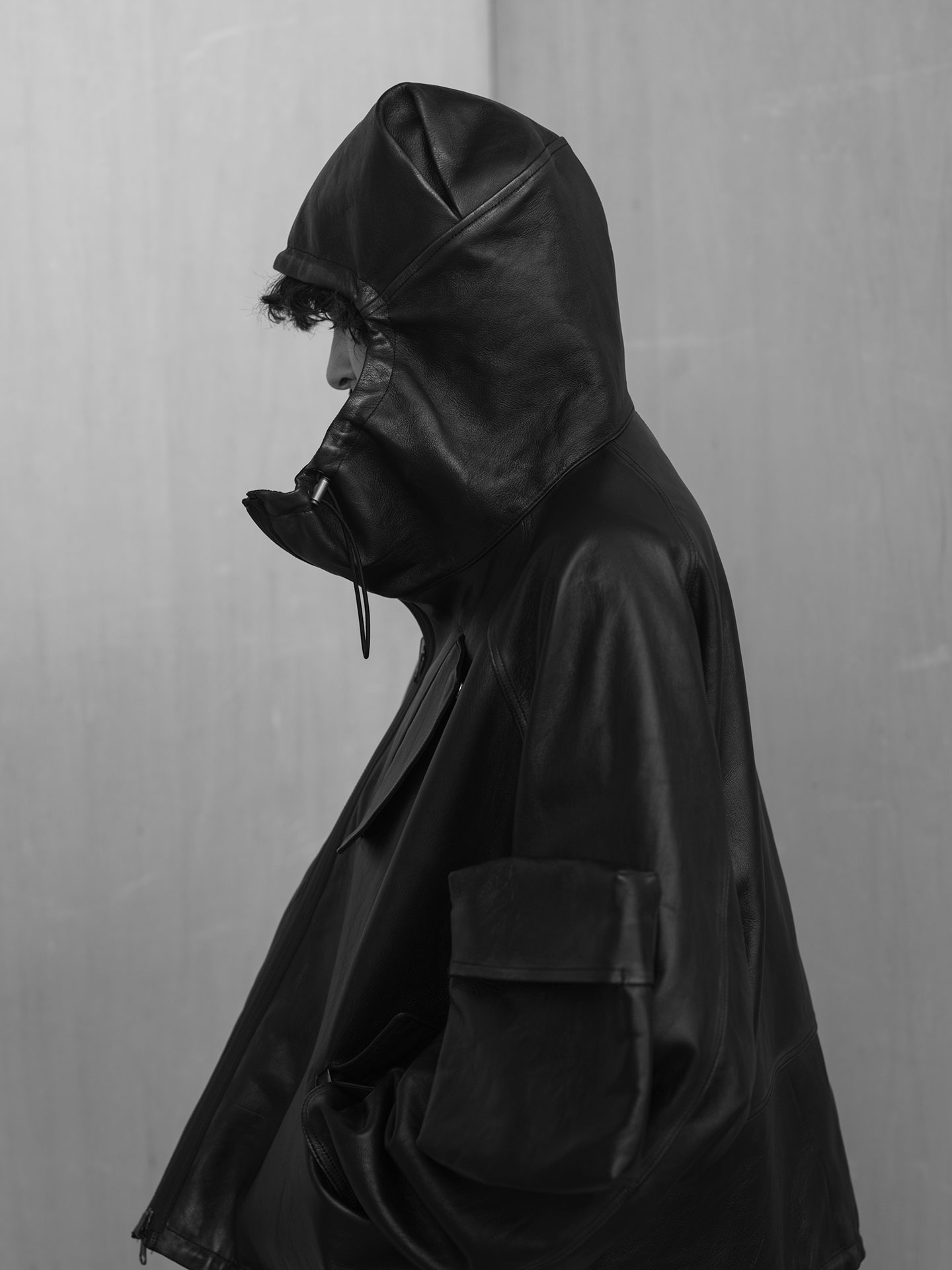 本コレクションは、視覚的な表現として、映画『関心領域』(2023年) やスウェーデンのフォトグラファーの JH Engström (ジェイ・エイチ・エングストーム) の写真集『CDG/JHE』を着想源にしている。『関心領域』のシーンからインスパイアを受け、デザインされたレザーのマウンテンパーカーは、最も軽量な Ventile (ベンタイル) コットンを用いたリバーシブル仕様に完成。軽量でありながらも撥水性を兼ね備えた高機能なアイテムには特に注目したい。また、リバーシブルという二面性も、今季のコレクションのモチーフとなっている。ジャガード柄のデニムジャケットとトラウザーは、大戦期のデニムの写真からピクセル単位で構成されたデータに落とし込み、自身のデニムのパターンに合わせて再構築。ダメージやディテールのテクスチャを柄として反映させたデザインが特徴的だ。