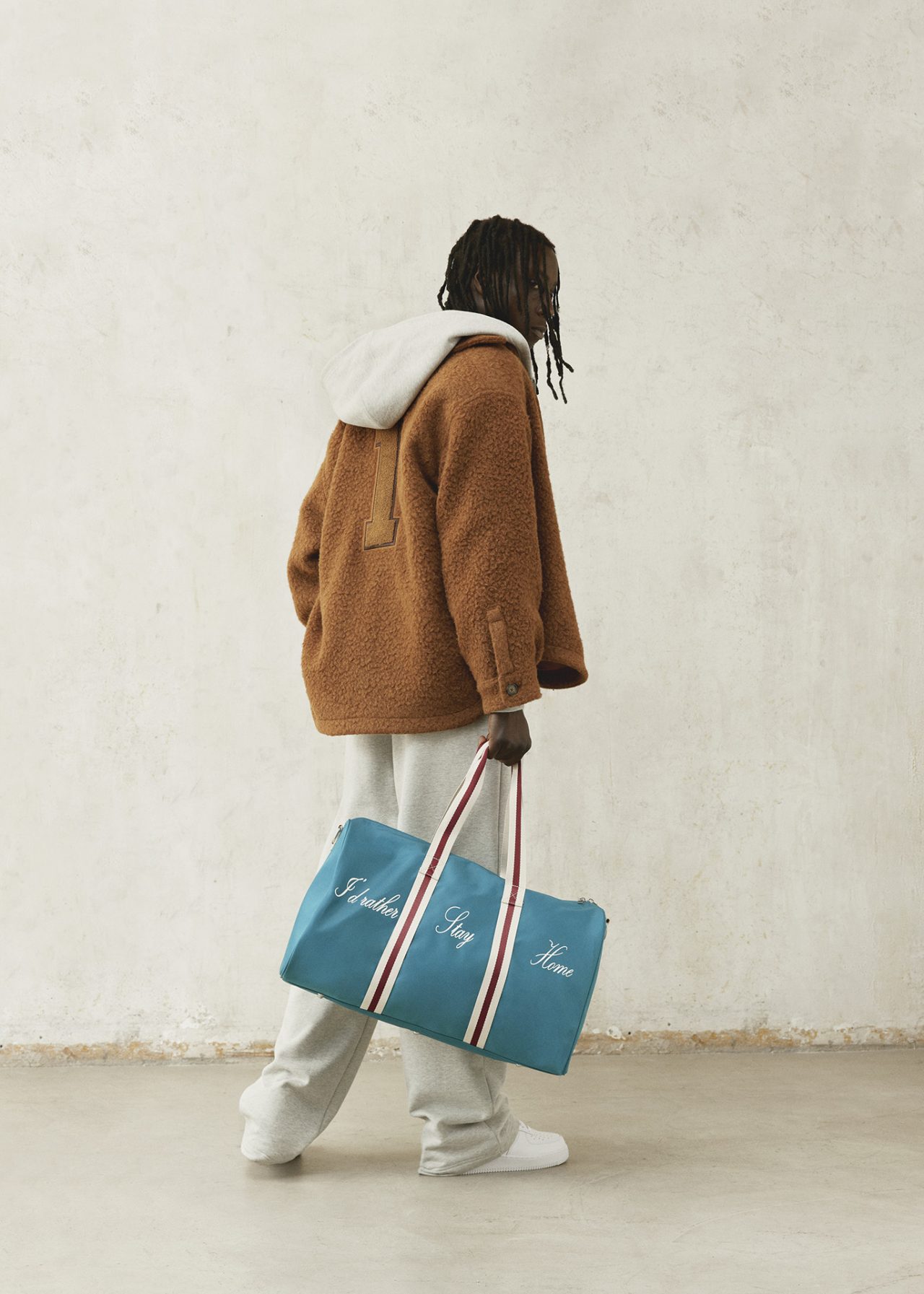 「I WAS RIGHT (ほらね、正しかったでしょ!)」や、「HEARTBREAKER (モテ過ぎ注意)」など、意外性のある言葉遊びとダブルミーニングを含んだフレーズが散りばめられたアイテムに加え、ソックス、ハット、ダッフルバッグ、そして「I PREFER SUNNY DAYS (晴れの日の方が好き)」と書かれた傘など、遊び心溢れるアクセサリーも展開。アメリカン・カジュアルなアイテムが揃い、六本木ヒルズ内の hills café/SPACE をアイロニーとユーモアあふれる空間に染め上げる。