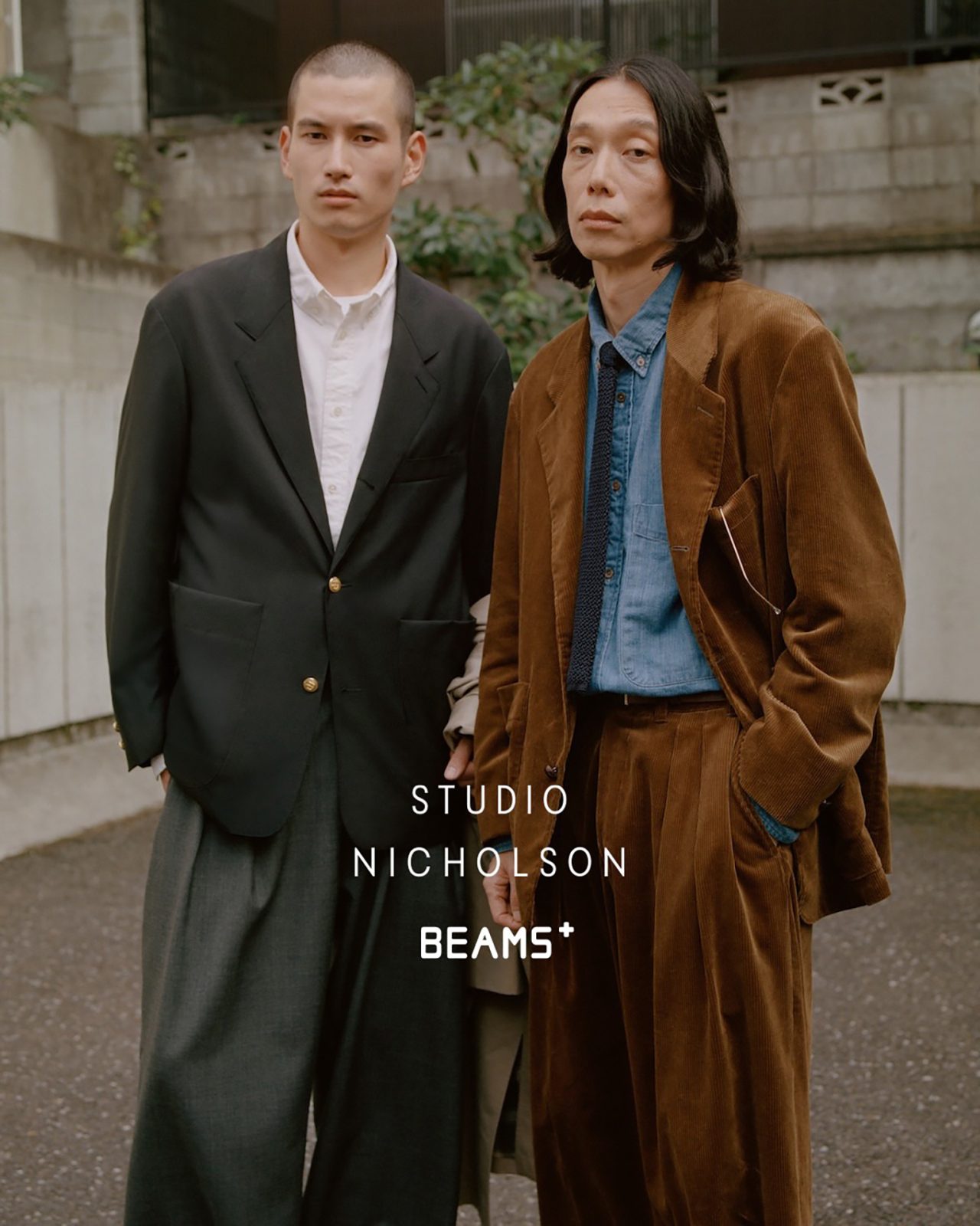 コラボレーションコレクションは、BEAMS PLUS 丸の内店、BEAMS オンラインストア、STUDIO NICHOLSON 一部店舗、および STUDIO NICHOLSON オンラインストアにて発売中。