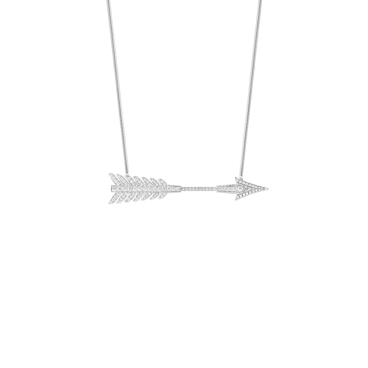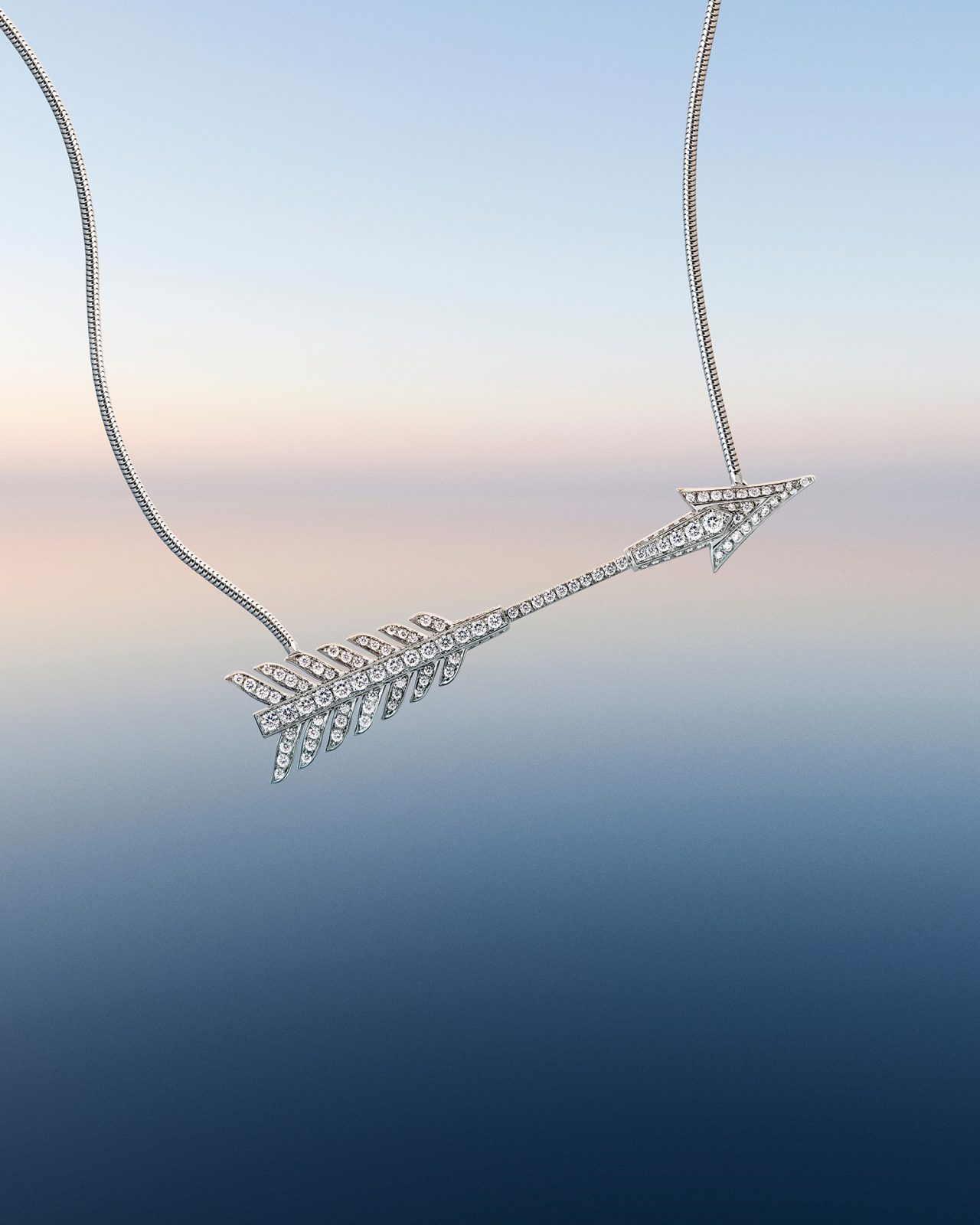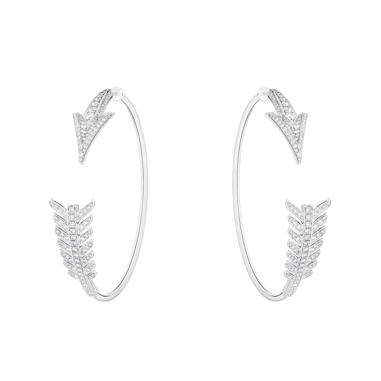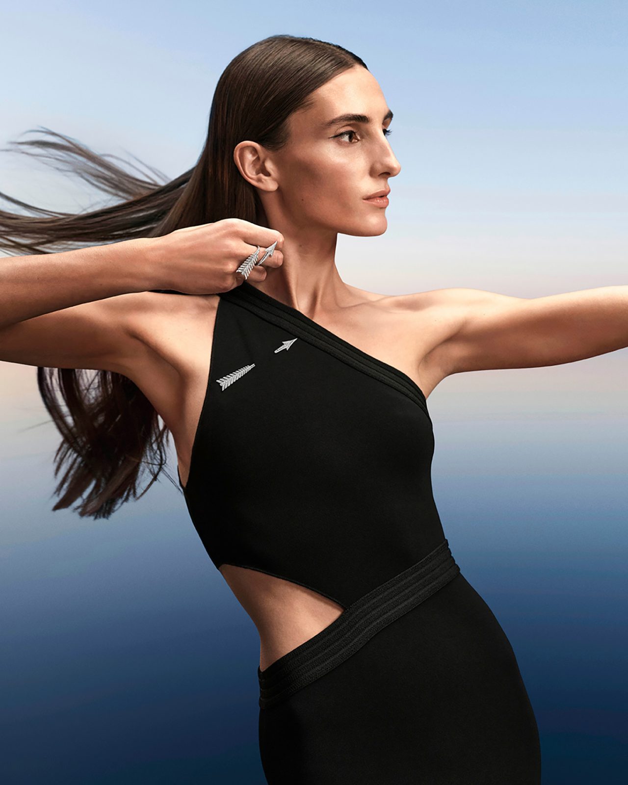 本コレクションでは、「矢」を忠実な形で再現した、精巧で繊細なデザインのブローチ、ラウンドカットとバゲットカットのダイヤモンドを組みわせた XXL サイズのブローチ、さらに、ラウンドカットのダイヤモンドで1本の指に巻き付くようなデザインに加え、3本の指にまたがる彫刻的なデザインの2種類のリングがラインナップ。そのほかにも、留め具のないフレキシブルな構造のネックレスやブレスレット、フープイヤリングやペンダントも登場した。
