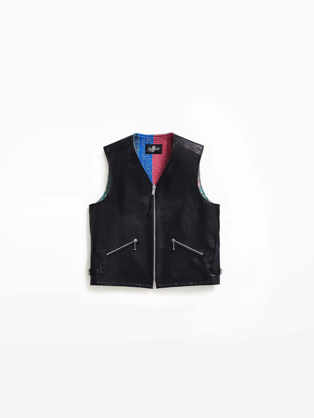 「Rizon Vest」 はリバーシブル仕様で仕立てられており、豊かなカンタ模様を外側に見せることで、伝統的なテキスタイル文化への敬意を込めた華やかな一着に。特注のブラス製ジッププラーやシルクで仕立てられたスリーブを備え、機能性と洗練されたフォルムを両立した。本コレクションは、2025年9月30日(火)に発売予定。BYREDO 初の限定レディ・トゥ・ウェアをぜひチェックしてみて。