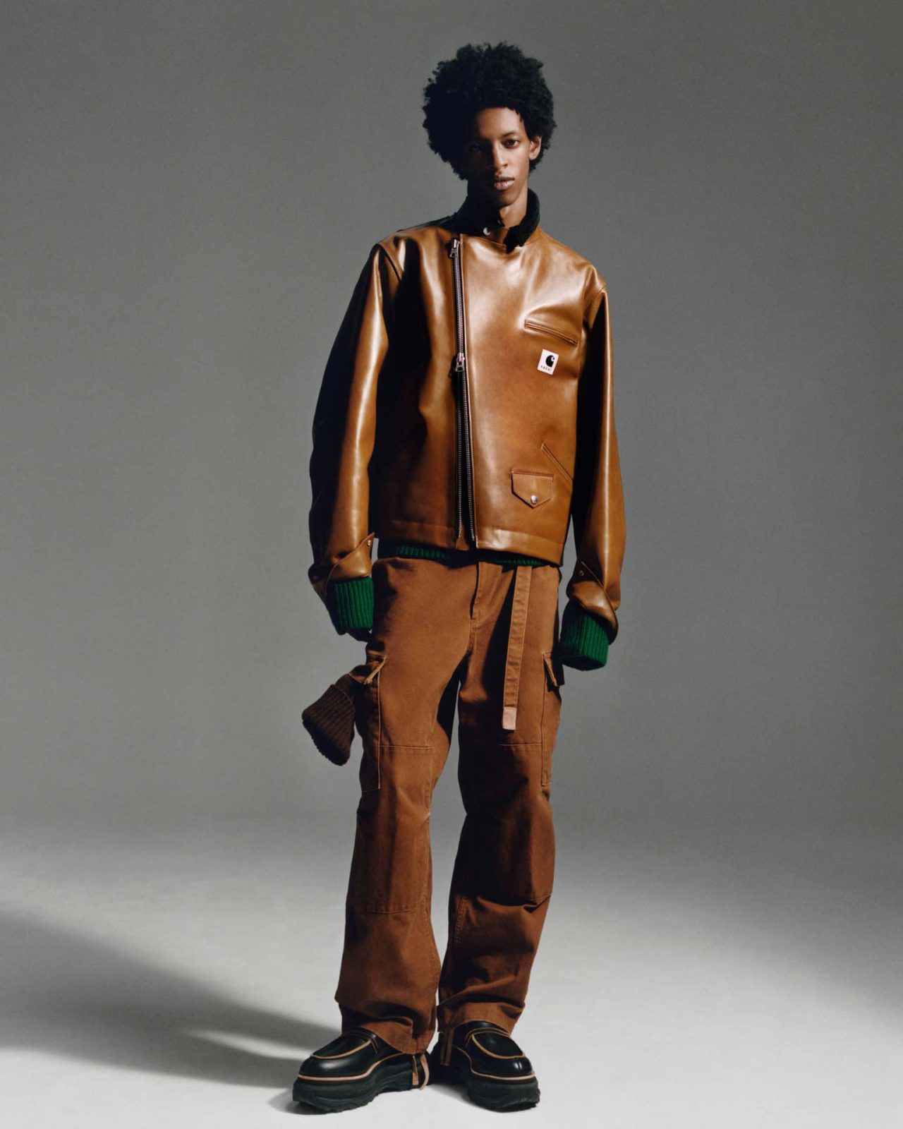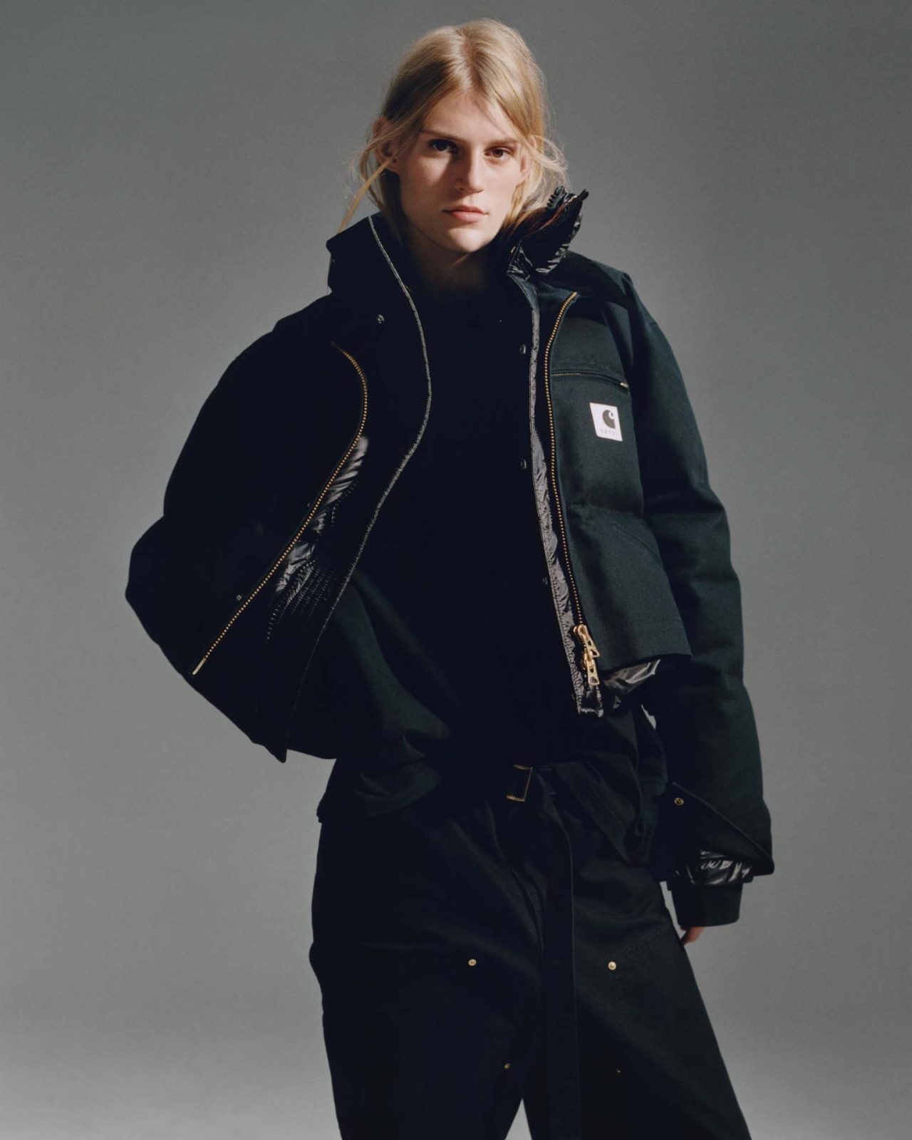 sacai と Carhartt WIP のカプセルコレクションの第3弾は、両ブランドのアイデンティティをハイブリッドに融合させた全19型で構成される。Carhartt WIP の象徴的なデトロイトジャケットをベースに、sacai ならではのパファーライニングやクラシックなダウンステッチを組み合わせたジャケットや、デトロイトジャケットと sacai のバイカージャケットを掛け合わせたレザージャケットが登場する。