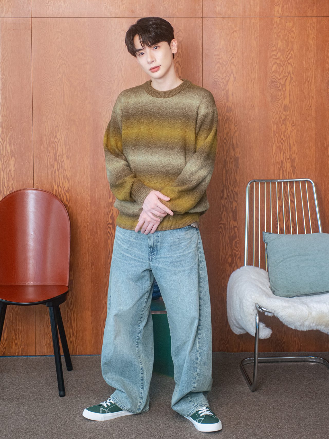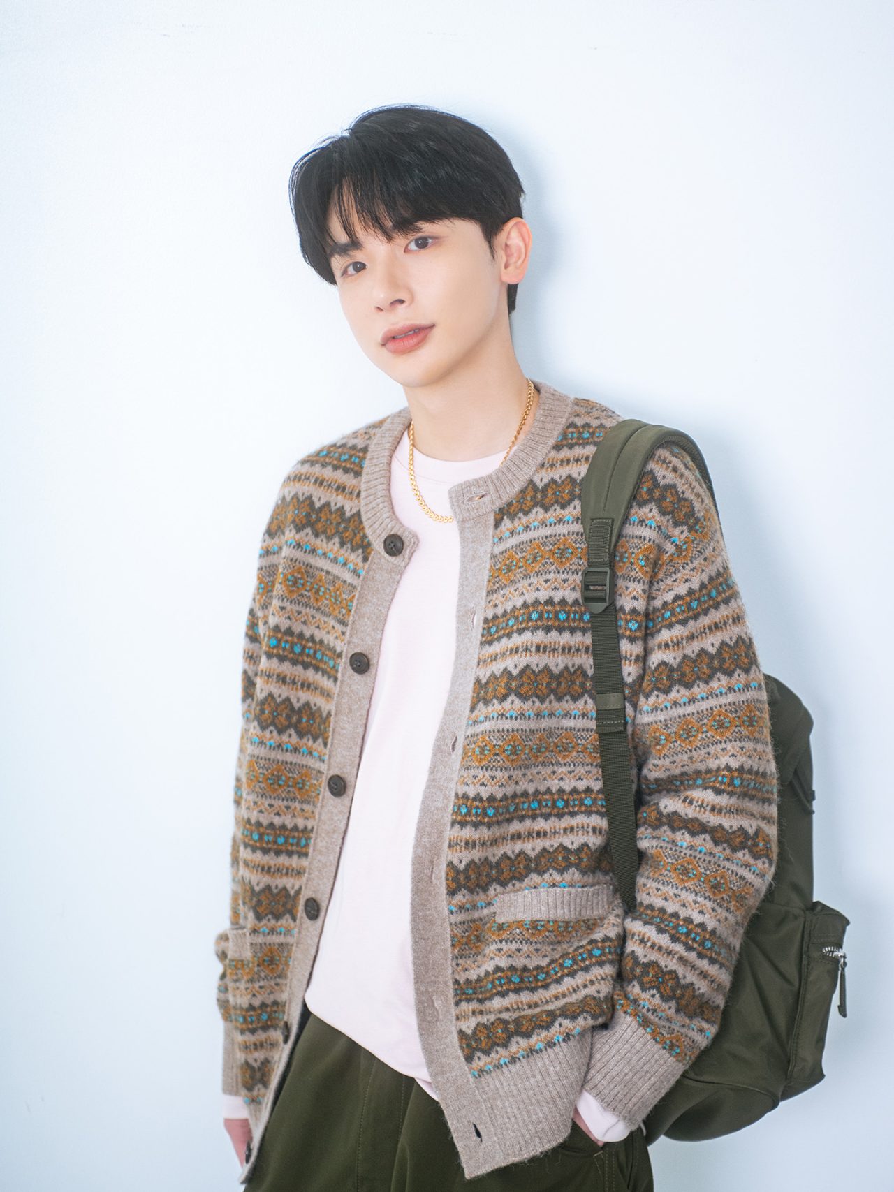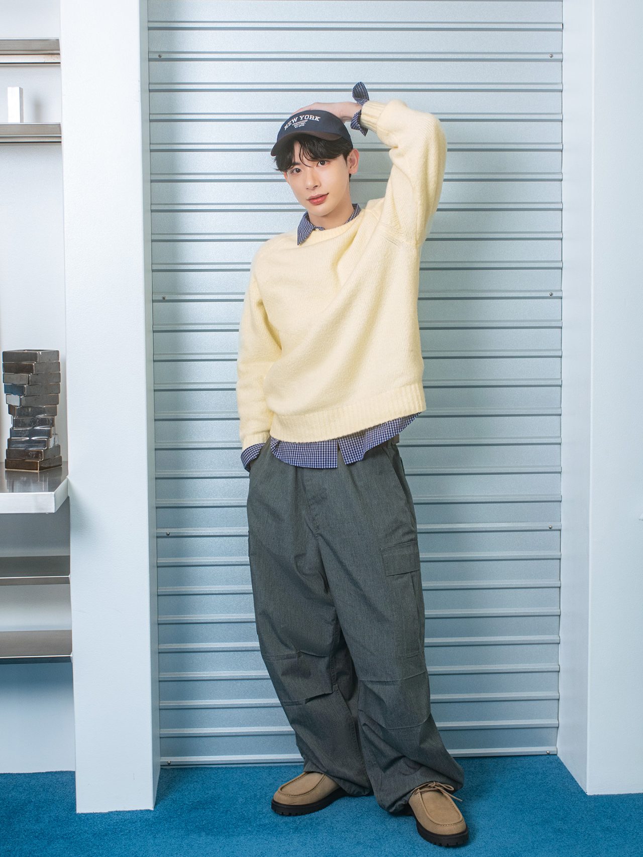 よしあき:インナーなしでもチクチクしない、ふんわりとした着心地に驚きました。グリーンのハーフジップニットは、やや短めの丈感で、着るだけで今っぽいトレンド感が出せるのも魅力。どんなシーンでも活躍しそうで、自分でも全色揃えたくなるほど気に入りました。