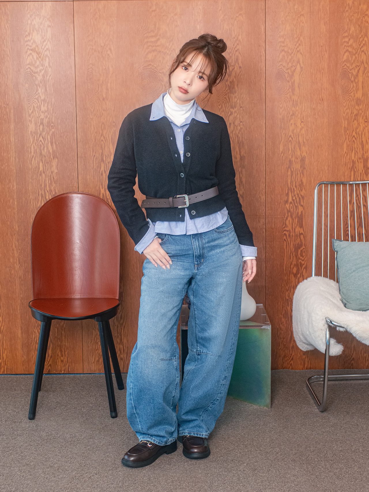 ミチ:寒がりなので、季節に関係なくカーディガンはいつも持ち歩いています。特に冬は、厚手のものを重ねるほど安心感があるので、あたたかなニットは欠かせません。今日着たパフニットのカーディガンも、程よいボリューム感のある生地で、とても着心地が良かったです。