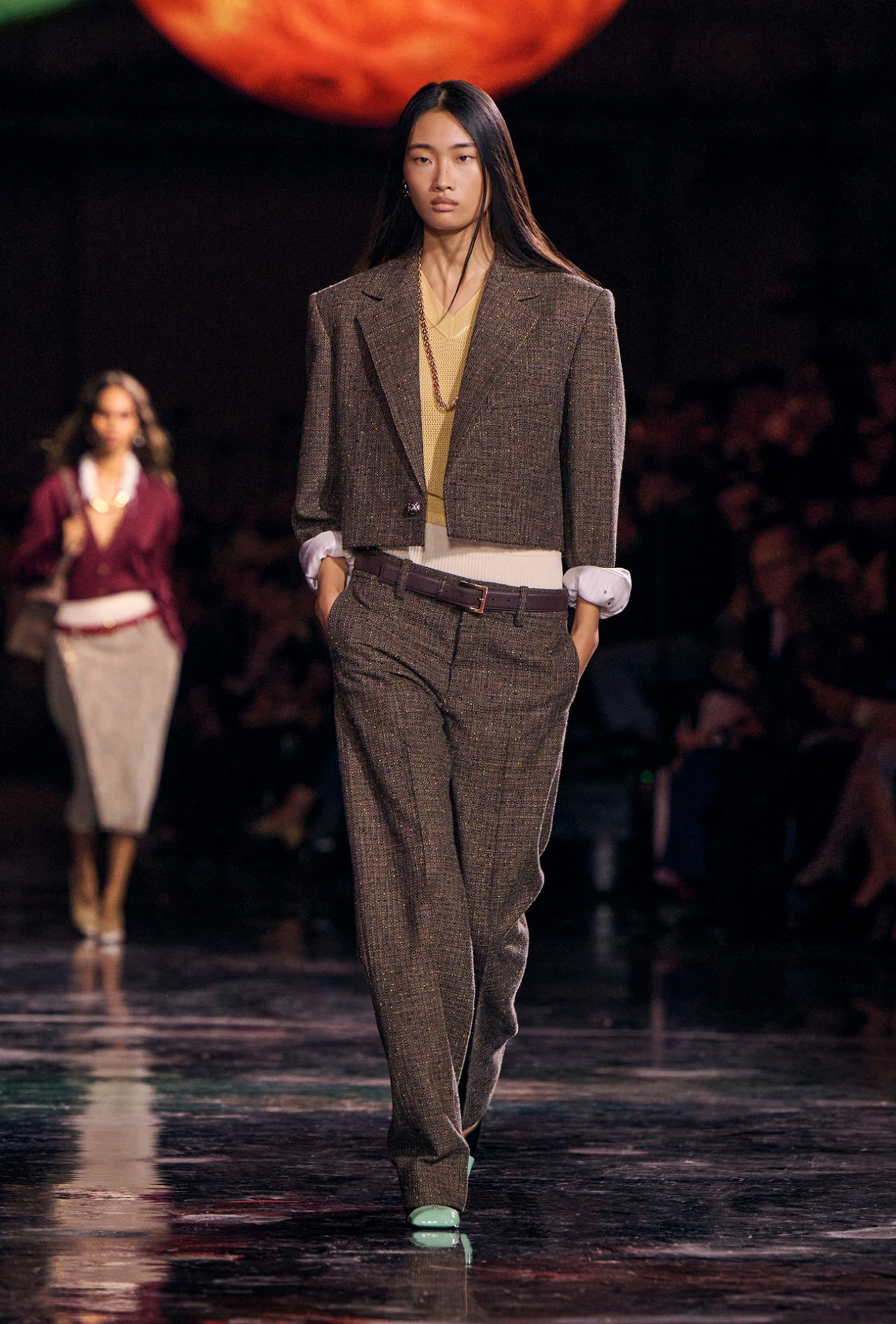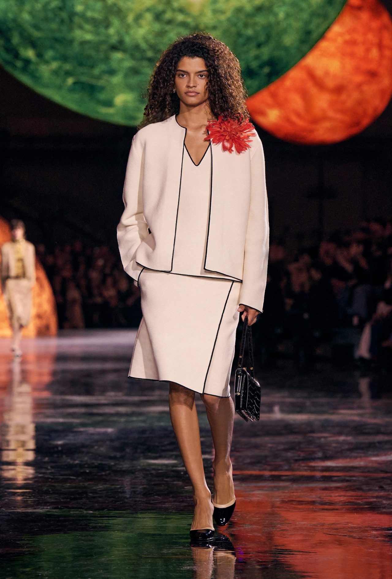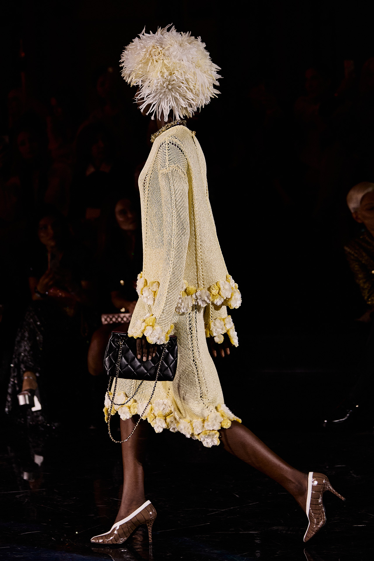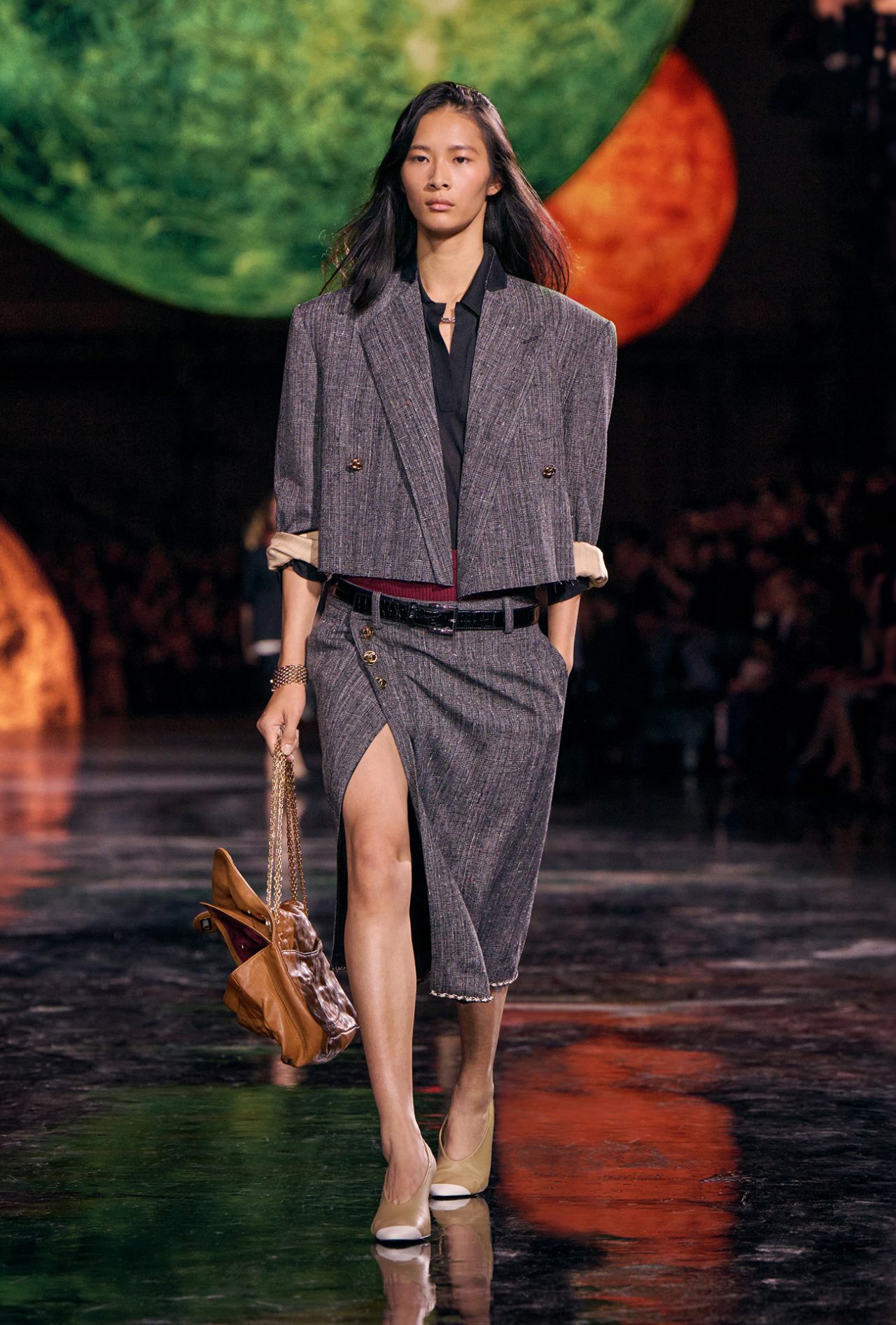 ショーは「UN PARADOXE (パラドックス)」、「LE JOUR (昼から夜まで)」、「L’UNIVERSEL (普遍性)」の3部構成で披露。ファーストルックには、Gabrielle Chasnel が最愛の人から借りて身につけていたというシャツとパンツが登場した。また英国のコードを感じる伝統的なメンズシャツや、切りっぱなしのスーツジャケットといったマスキュリンなスタイルで、CHANEL のクラシックスタイルを体現。また、カメリアや、メゾンの哲学を反映したアイコンバッグ「2.55」など、ブランドを語るに欠かせない要素もお目見え。
