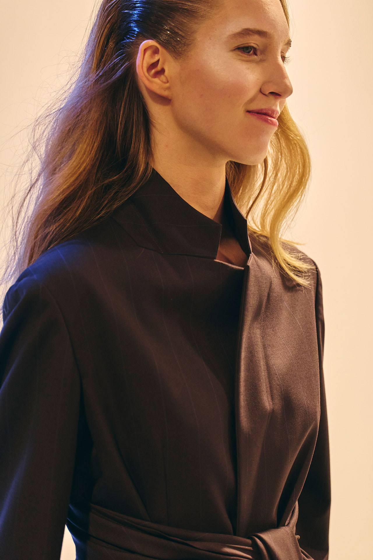 今回のメイクアップは、UJOH の持つ構築的で洗練されたデザインに呼応するように、「アーバン・サマー」というテーマで提案しました。マットな肌をベースにしながらも、光を感じさせるポイントをつくることで、夏の軽やかさとモードな強さを両立させています。