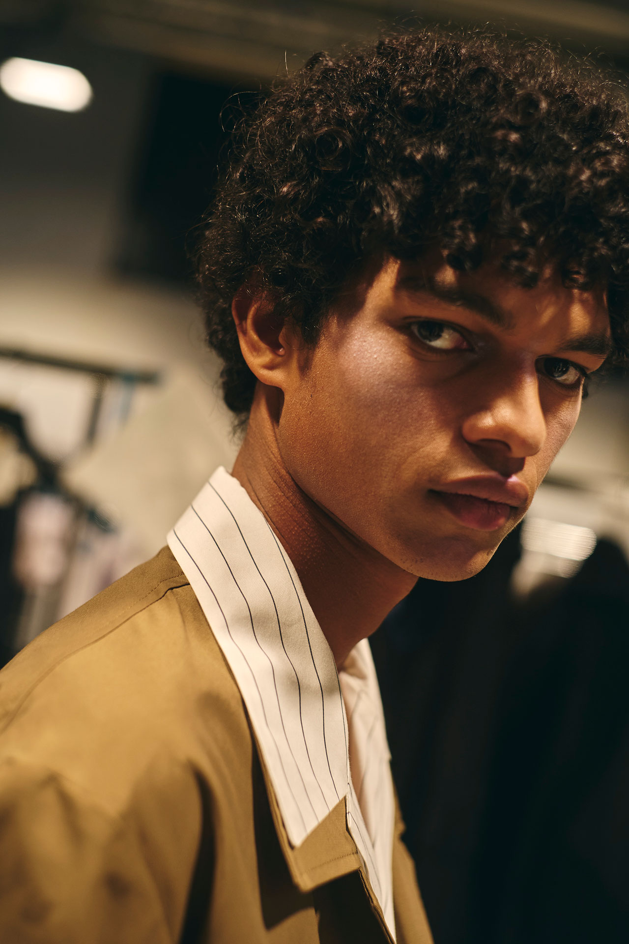 shu uemura が手がけたバックステージメイクは、UJOH 2026年春夏コレクションの構築的で躍動感のある世界観を、フレッシュで都会的な表情として映し出した。軽やかなソフトマット肌とブルーのハイライターが生む幻想的な輝きは、ショーだけでなく日常にも取り入れられるヒントを与えてくれるだろう。