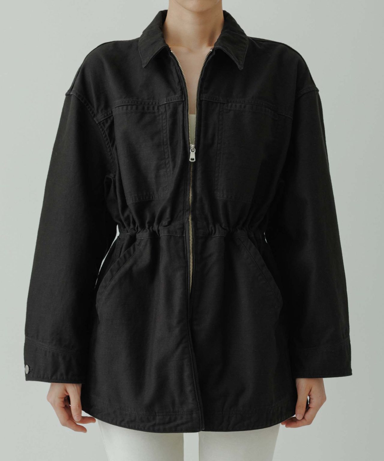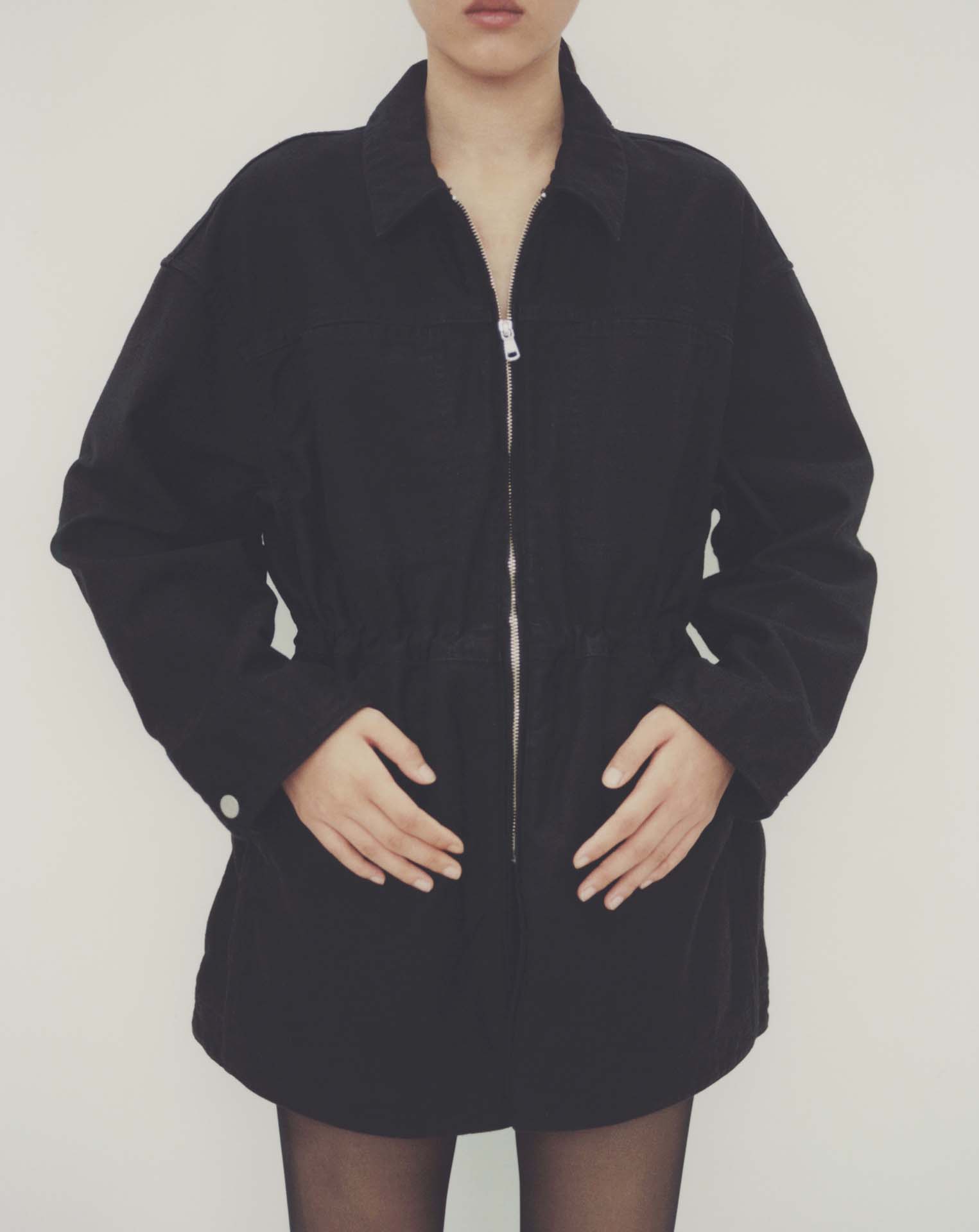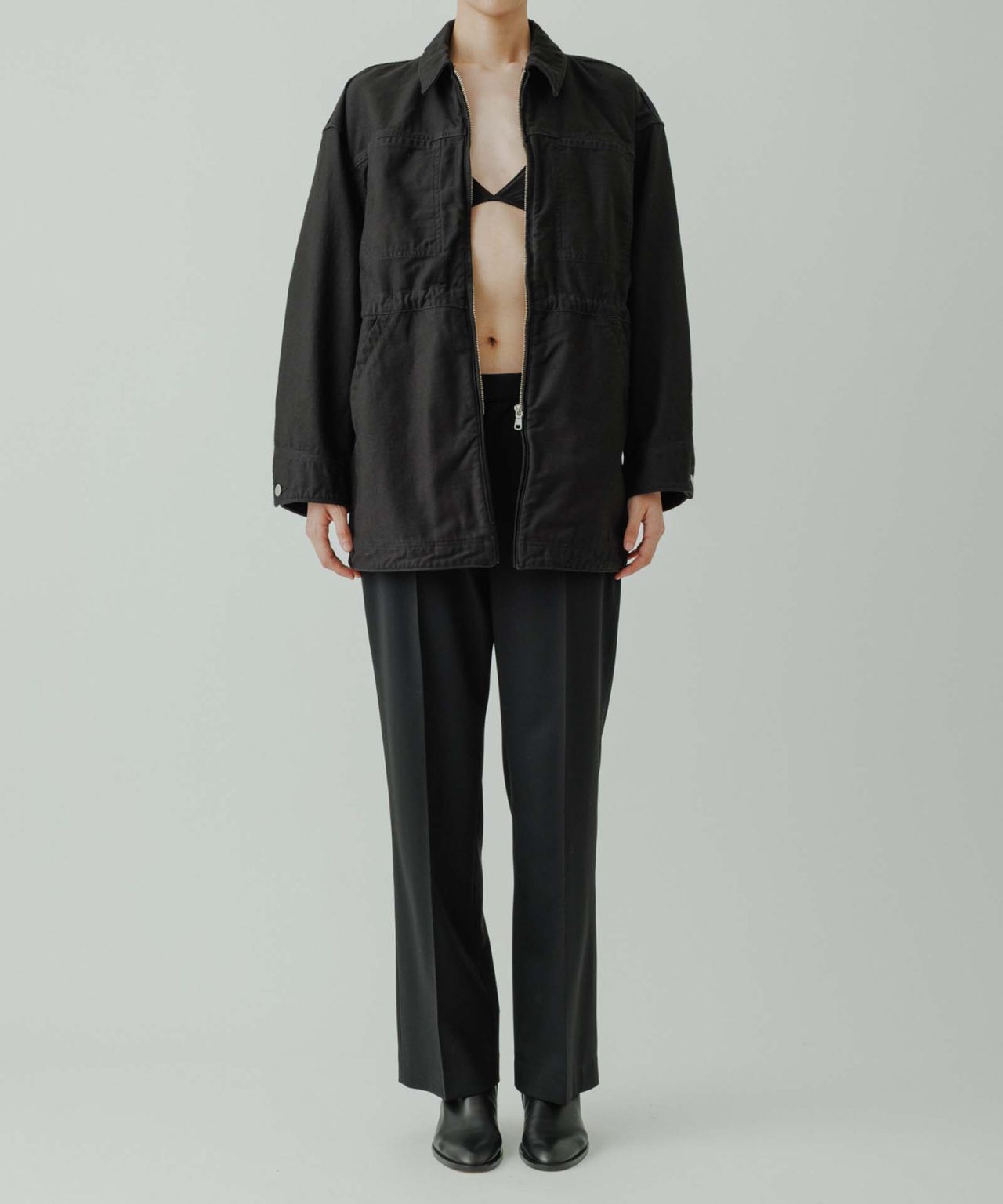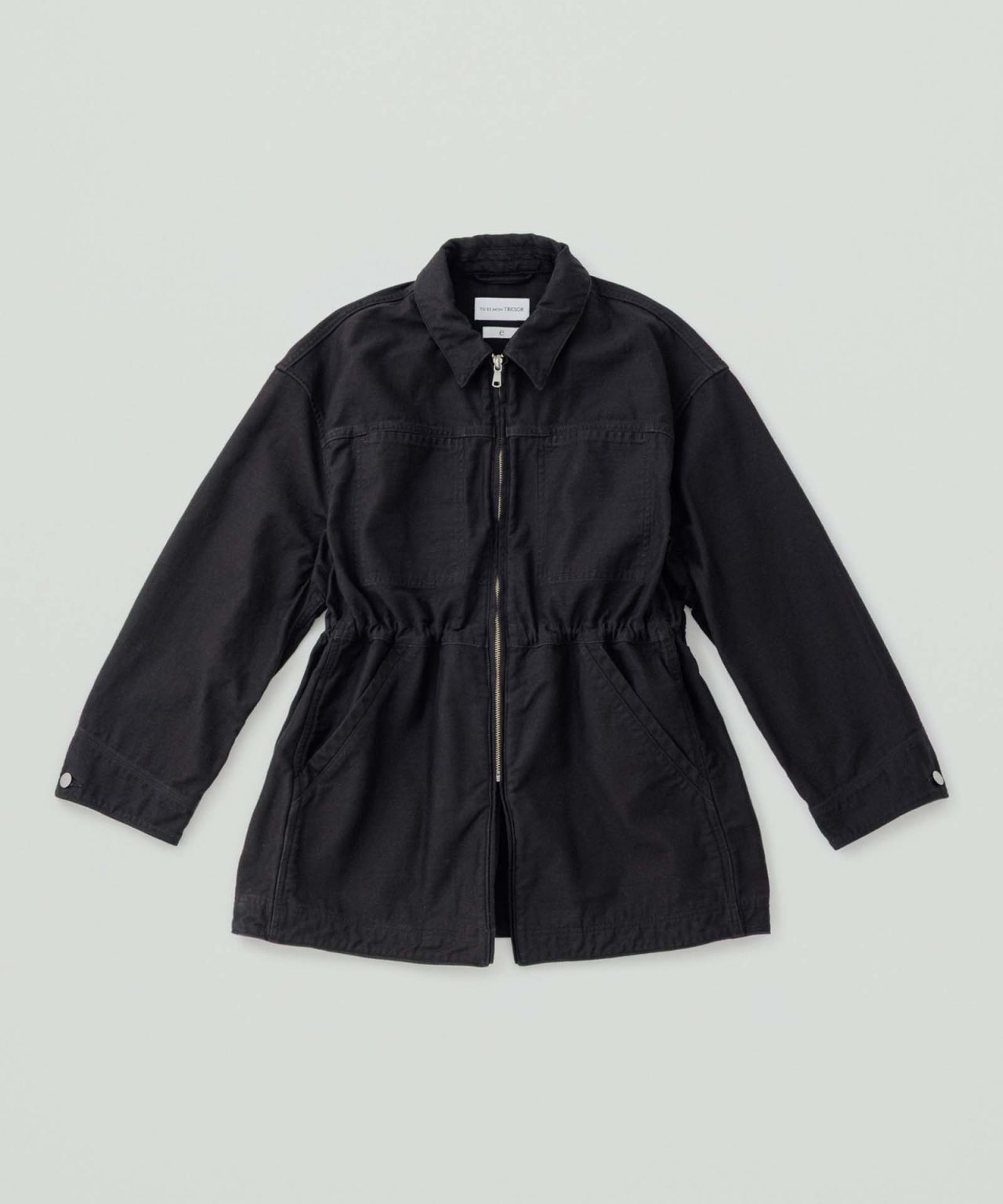 ë BIOTOP (ヨー ビオトープ) が Tu es mon Tresor (トゥ・エ・モン・トレゾア) との別注第4弾として、初のジャケットをリリース。人気モデル「Moonstone Jacket」をベースに、ワークジャケットのディテールを削ぎ落とし、クリーンで洗練された印象に仕上げた。ドローストリングでウエストのシルエットを自在に調整でき、フェミニンにもメンズライクにも着こなせる一着だ。