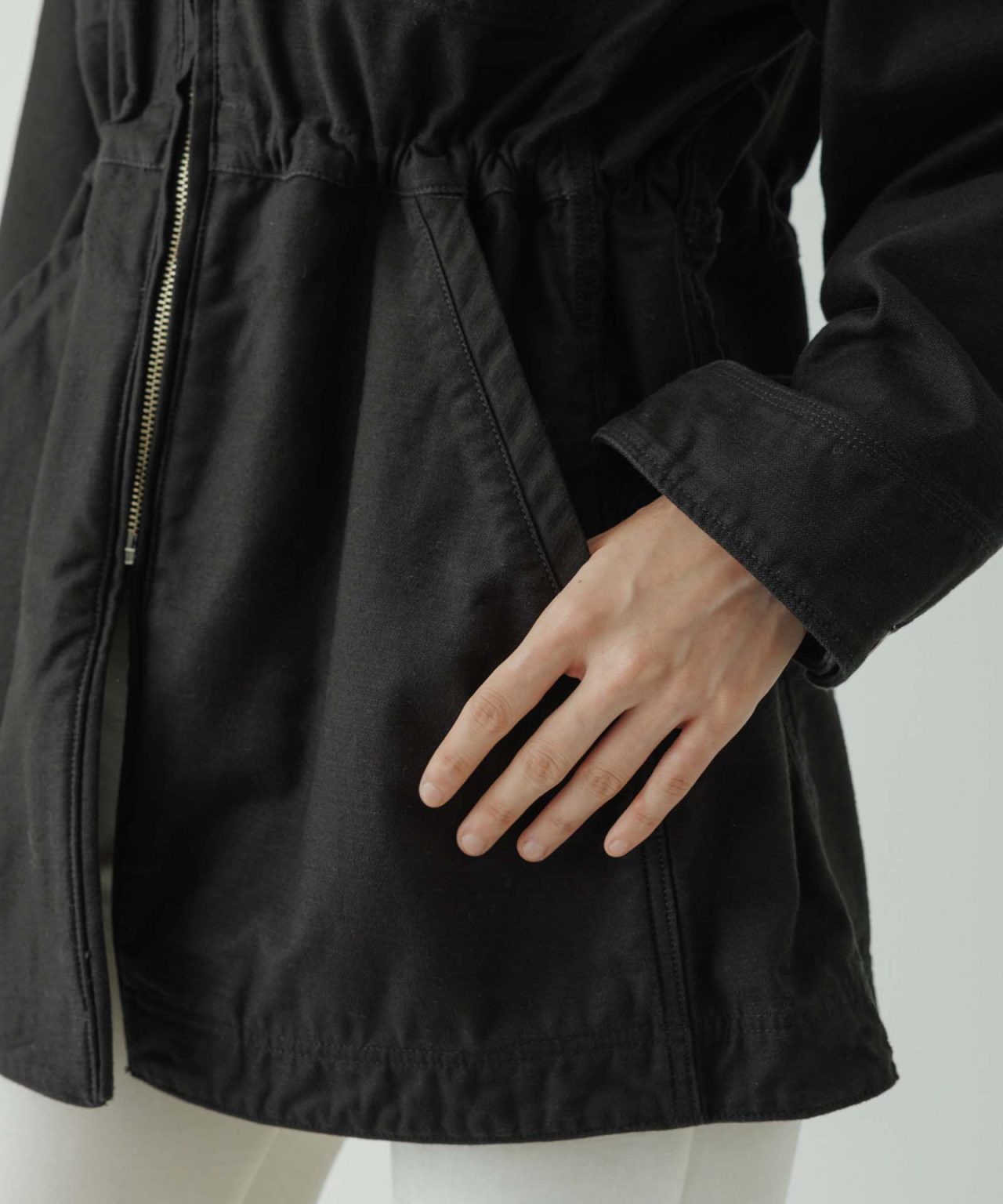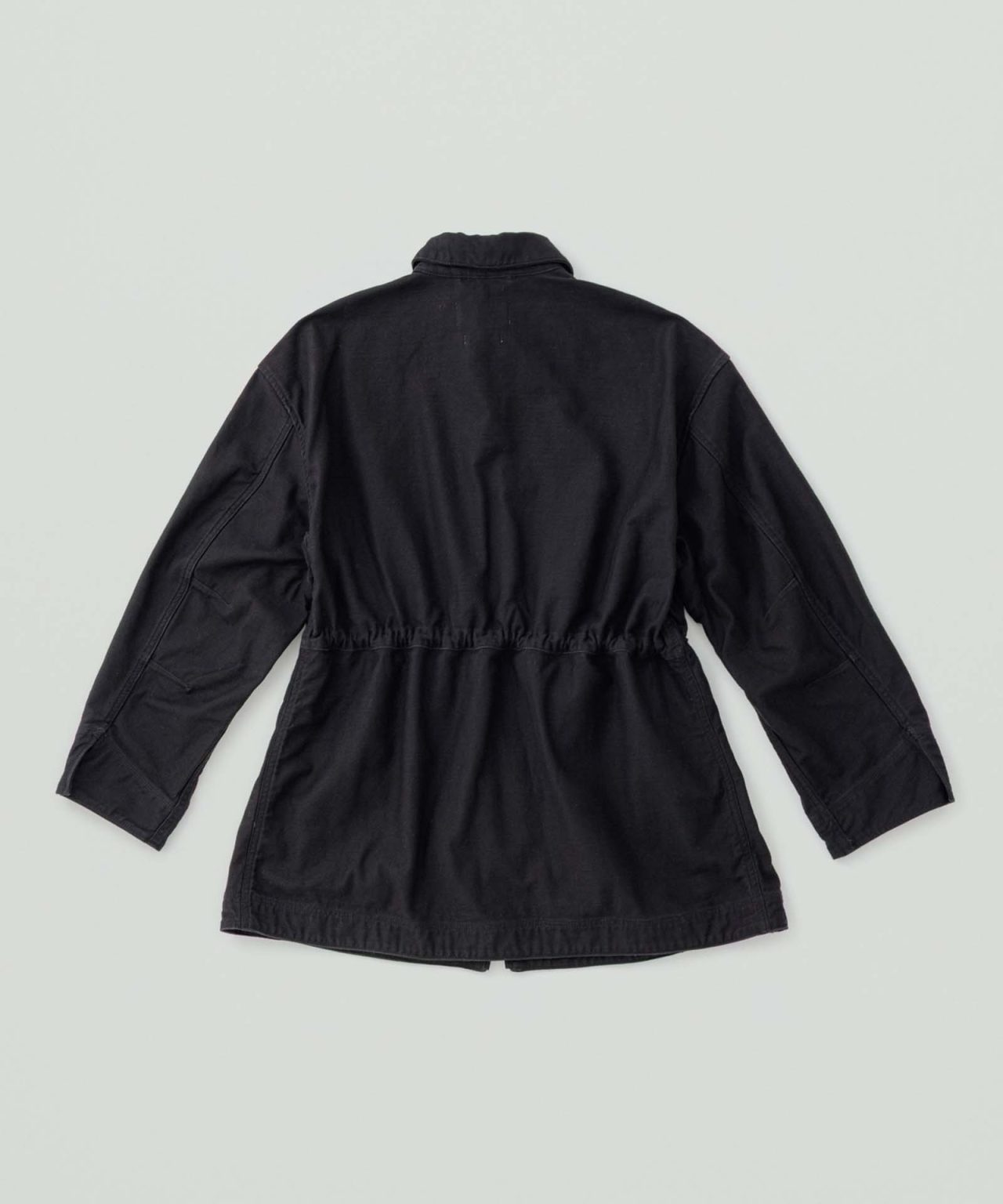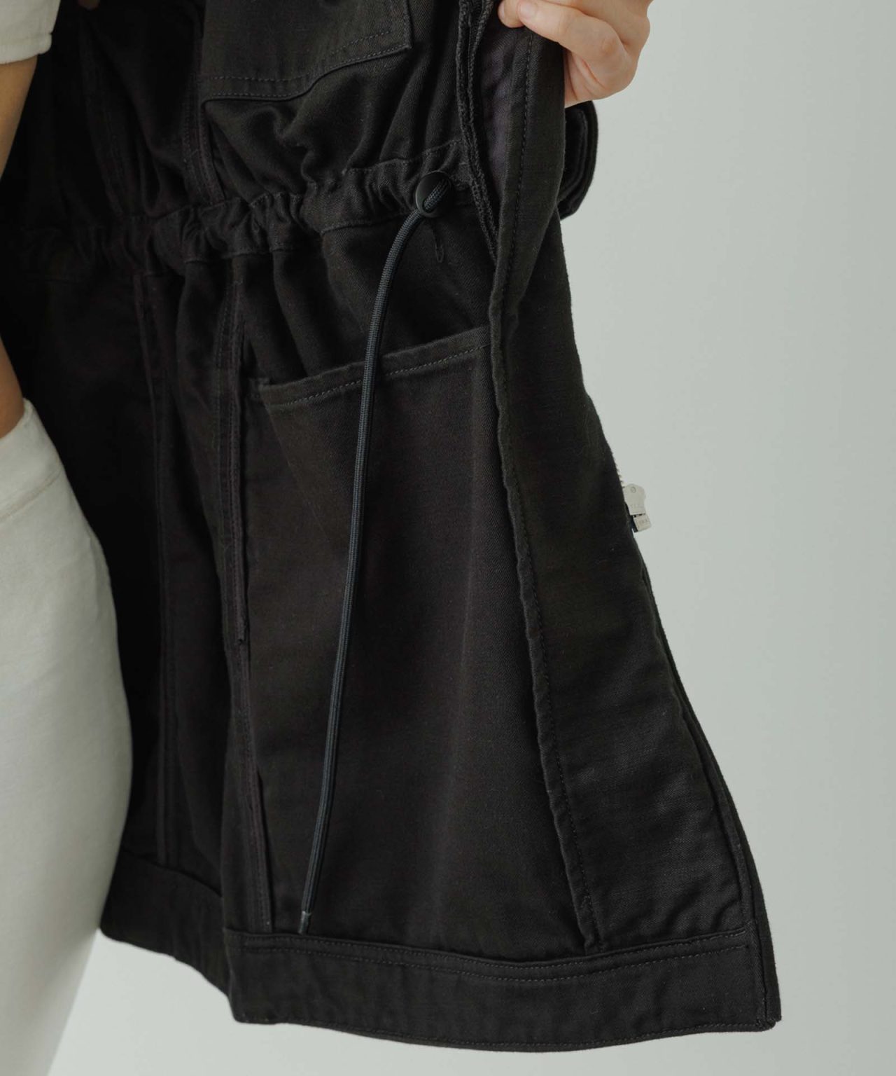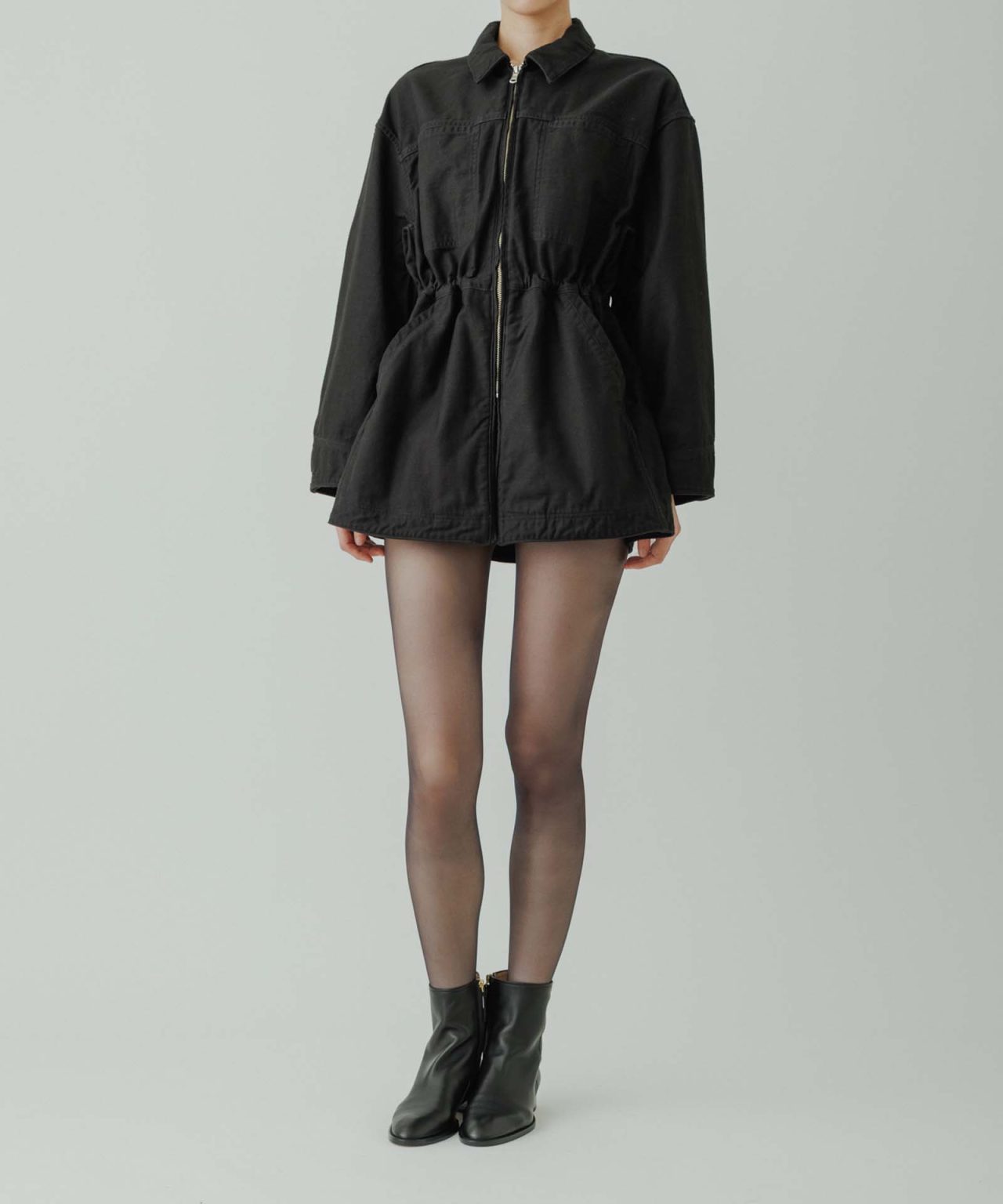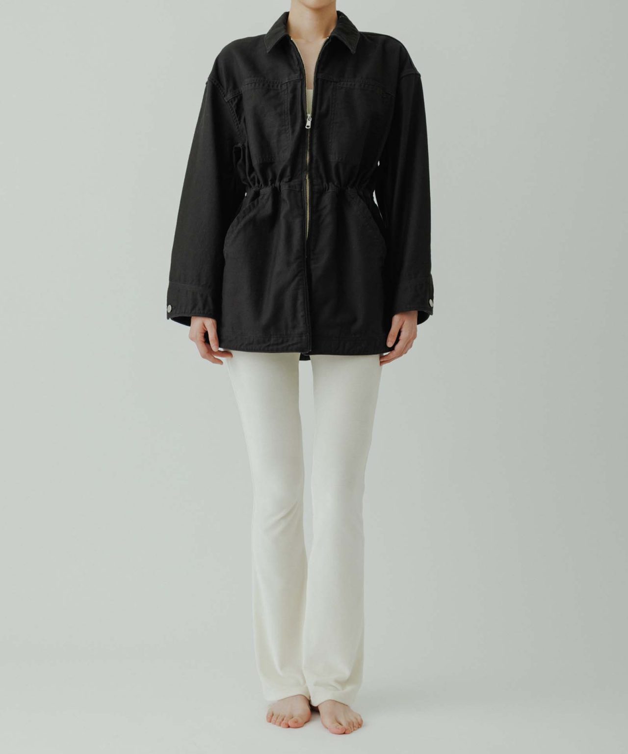 ë BIOTOP (ヨー ビオトープ) が Tu es mon Tresor (トゥ・エ・モン・トレゾア) との別注第4弾として、初のジャケットをリリース。人気モデル「Moonstone Jacket」をベースに、ワークジャケットのディテールを削ぎ落とし、クリーンで洗練された印象に仕上げた。ドローストリングでウエストのシルエットを自在に調整でき、フェミニンにもメンズライクにも着こなせる一着だ。