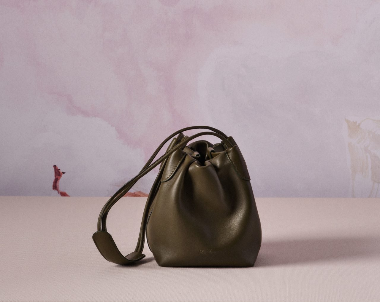 「ベイル・ソフティ・バッグ」の名前とデザインは、メゾンが生地や衣服を生み出すために調達する、カシミヤの原毛の収納袋から着想を得たもの。素材には、カシミヤのような触り心地を再現した自然な半光沢仕上げのラムスキン・ナッパと、驚くほど柔らかく滑らかなグレイン、そしてバターのような質感で高く評価されるディアスキンを採用。バッグのシルエットは、一枚の革から手仕事で仕立てることで、素材の密度や色合いを均一に保っている。