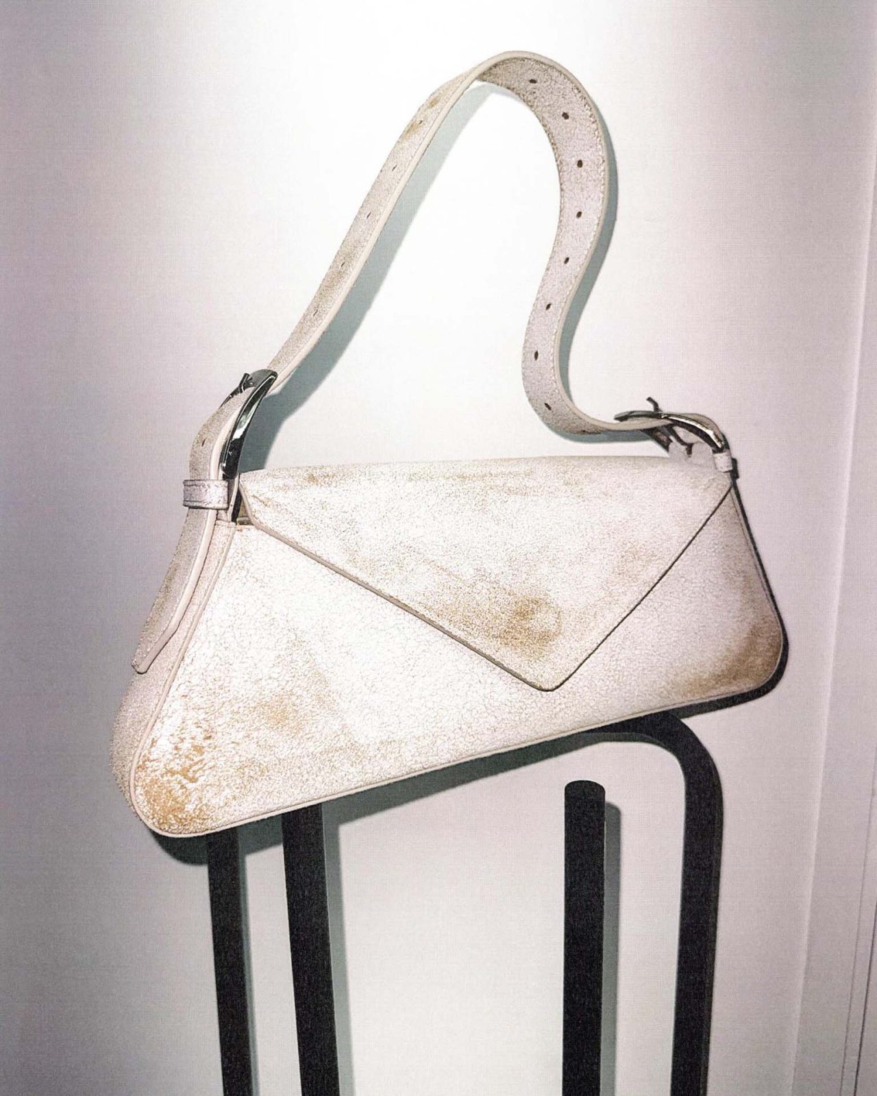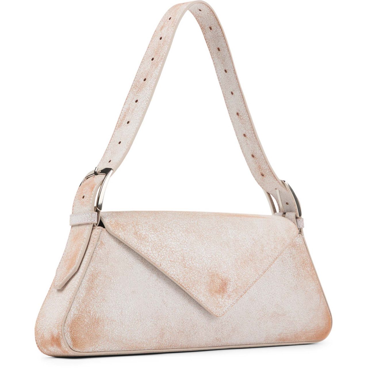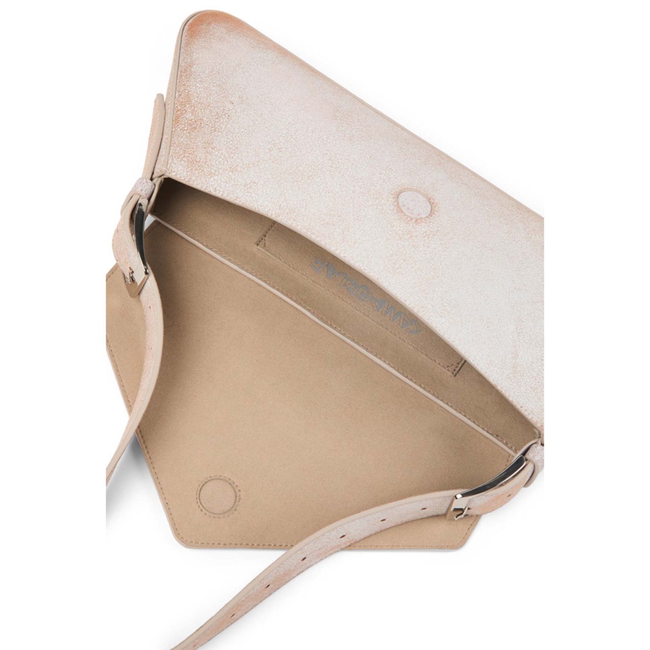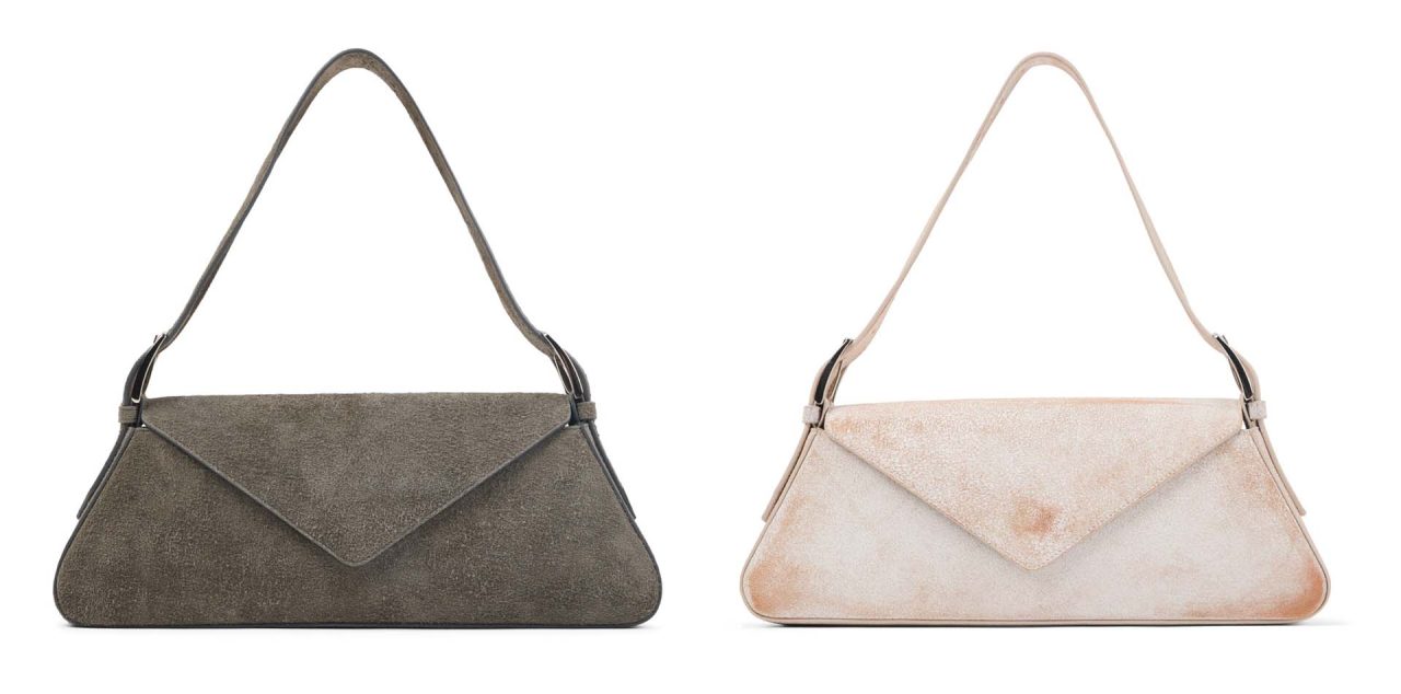 「手紙」の意味を持つ「Kirje」は、封筒を思わせる大胆なデザインが特徴。両サイドのバックルでストラップの長さを調節でき、ショルダーでもハンドルバッグとしても使える2WAY仕様がポイント。ダメージ加工を施したスエード素材は、いつものコーディネートにさりげない華を添えてくれる。