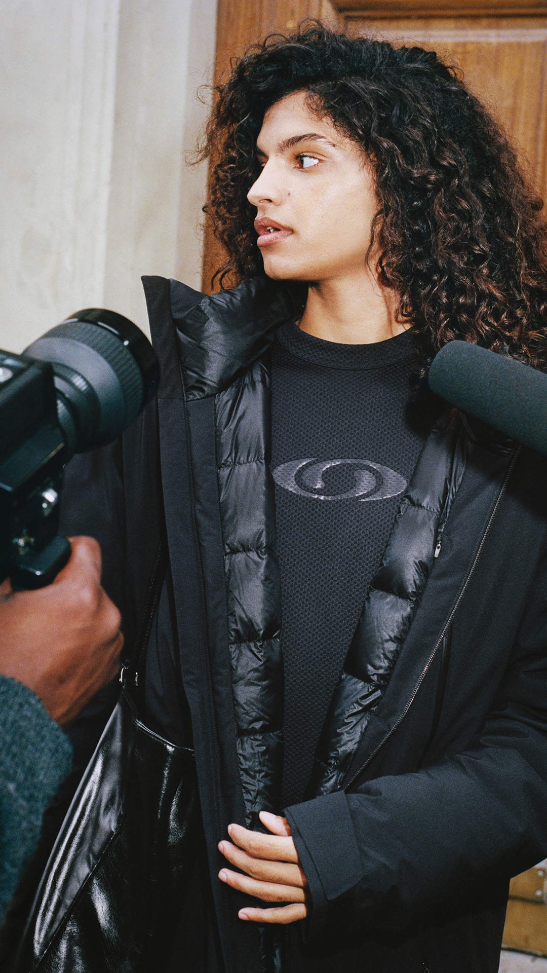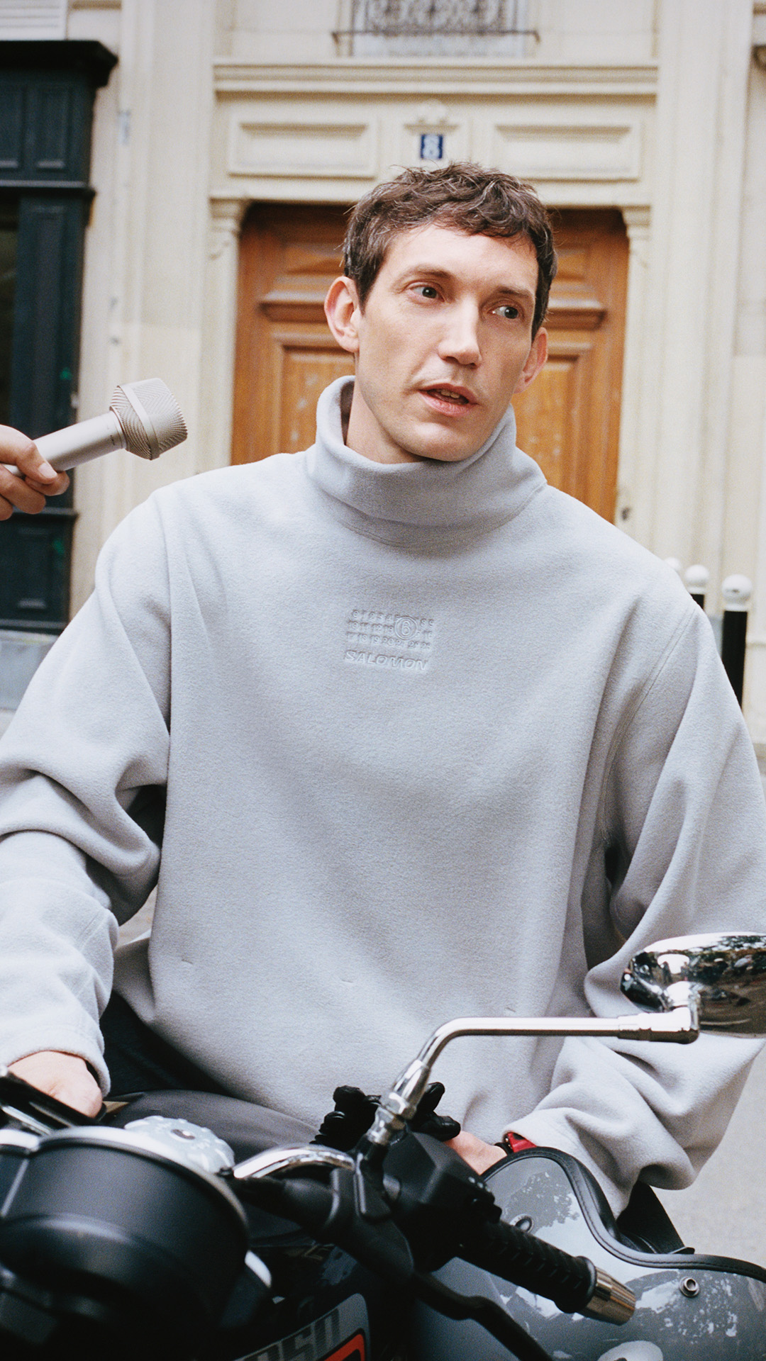 コレクションは4型のウェアをラインアップ。「ウォータープルーフダウンパーカ」は、防水加工を施したシェルに調整可能なフードを備えた一着。 Salomon らしい機能美に、ロング丈のダブルスライダーポケットや MM6 Maison Margiela のシグネチャーである1本の白いステッチが映える。「モトメッシュ LS」では、2000年代初期のモトメッシュクルーネックを再構築。オーバーサイズのシルエットに、胸元の Salomon の象徴であるリンクロゴがアクセントを添える。「モトメッシュパンツ」には、同素材のストレッチメッシュを採用し、ワイドなシルエットが抜け感を演出する。