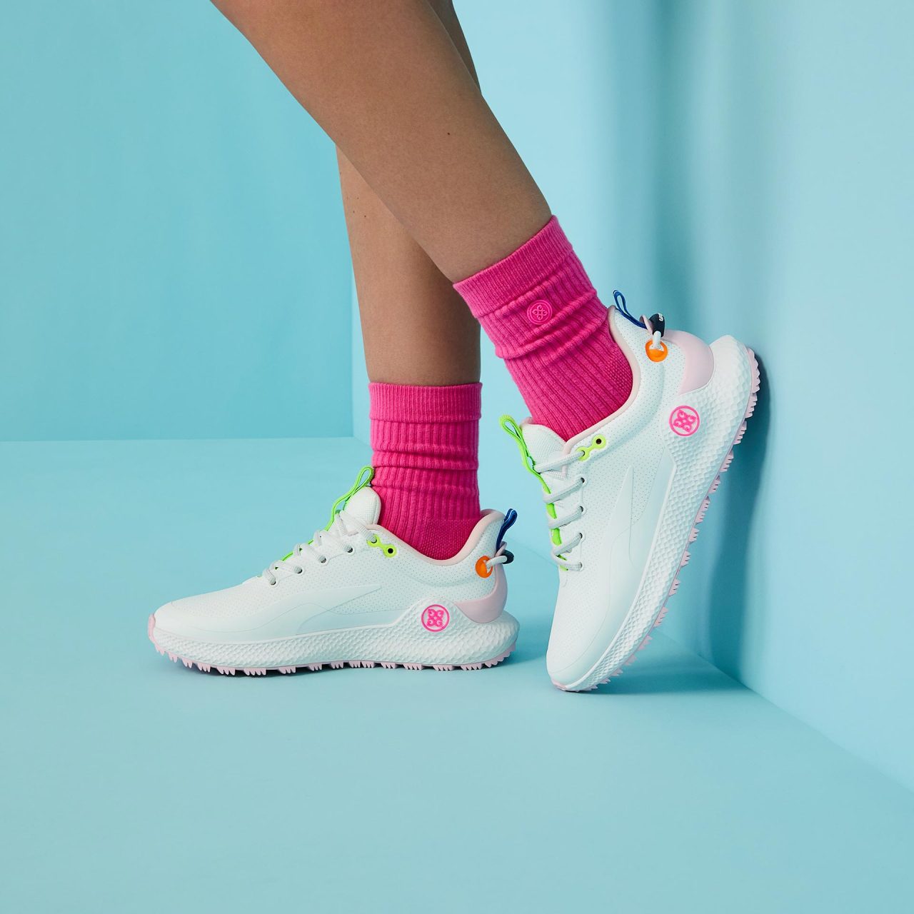 世界的デザイナー Mossimo Giannulli (マッシモ・ジアヌッリ) が2011年にロサンゼルスにてスタートしたプレミアムゴルフブランド G/FORE。ゴルフの伝統を重んじながらも、それを打ち破る革新的なラグジュアリーを核に、若々しい感性とモダンなデザインが世界中で人気を博している。今回新たに登場した「MG4+O2 SPIKELESS」は、ゴルフシーンにおける機能性を備えながらも、街でのスタイルにも違和感なく馴染むデザイン性を追求。コースからタウンまでをシームレスに繋ぐ、G/FORE が提案する新しいラグジュアリーライフスタイルを体現する一足だ。トレンドを意識したモノトーン・ニュアンスカラーから、アクティブなコントラストカラーまで、ユニセックスで楽しめる豊富なカラー展開も魅力のひとつ。ぜひこちらをチェックして、あなたにぴったりの一足を見つけてみて。