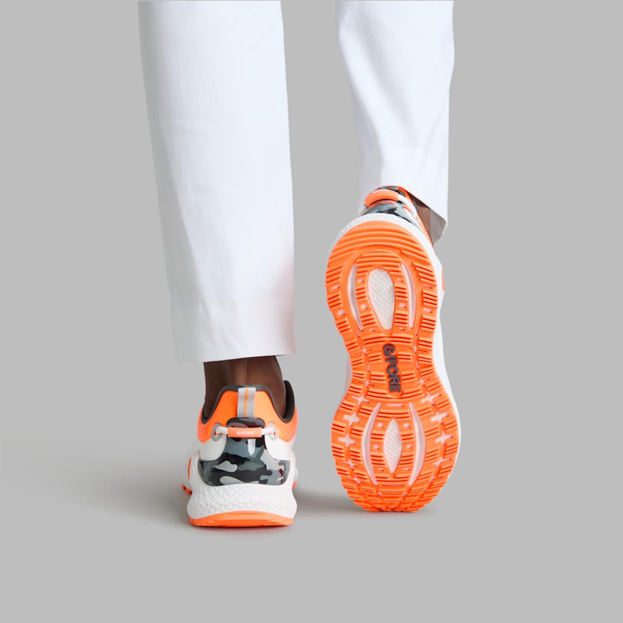 G/FORE ならではのこだわりが詰まった「MG4+O2 SPIKELESS」。アウトソールは、スイング時のバランスをサポートするよう設計され、グリップ力を強化。そしてミッドソールには、解剖学に基づいてデザインされた反応性 EVA を搭載している。また、プレミアム防水 TPU 素材を使用しているだけでなく、マッサージインソールは取り外し可能なウォッシャブル。快適なプレーが叶うだけでなく、ゴルフシーンの枠を超えて活躍してくれる理想的なシューズが誕生した。