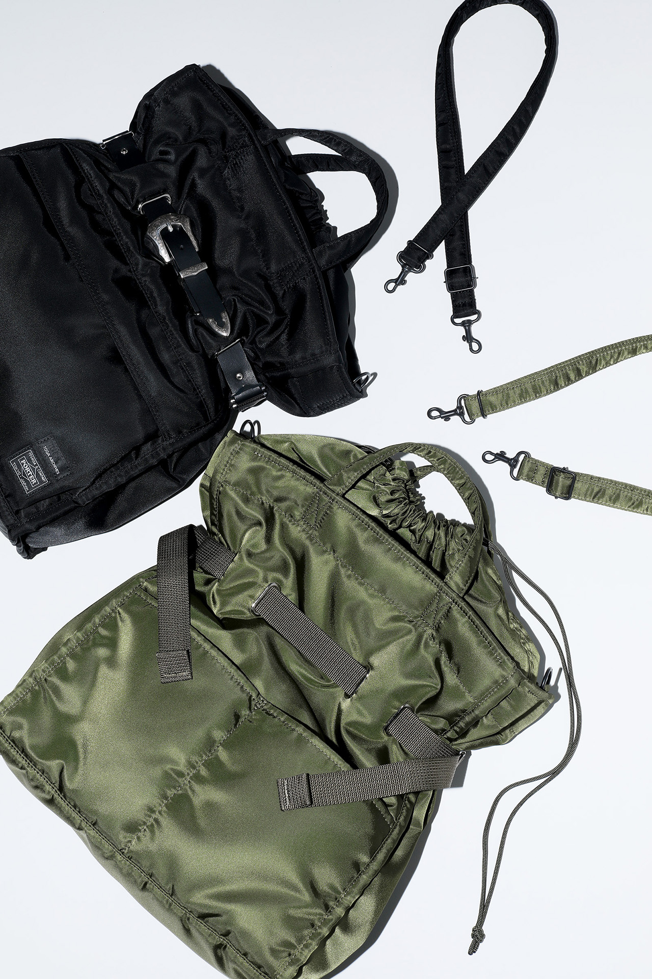 2019年にスタートした両者のコラボレーション。今回は、高い機能性と実用性を備えた PORTER の技術に、ナイロン素材を編み込んだブレードハンドル、取り外しのできるポーチ、フォルムが変わるベルトなど、手作業による TOGA らしいメタルディティールを全アイテムに組み込んだ。両ブランドの魅力を凝縮した。