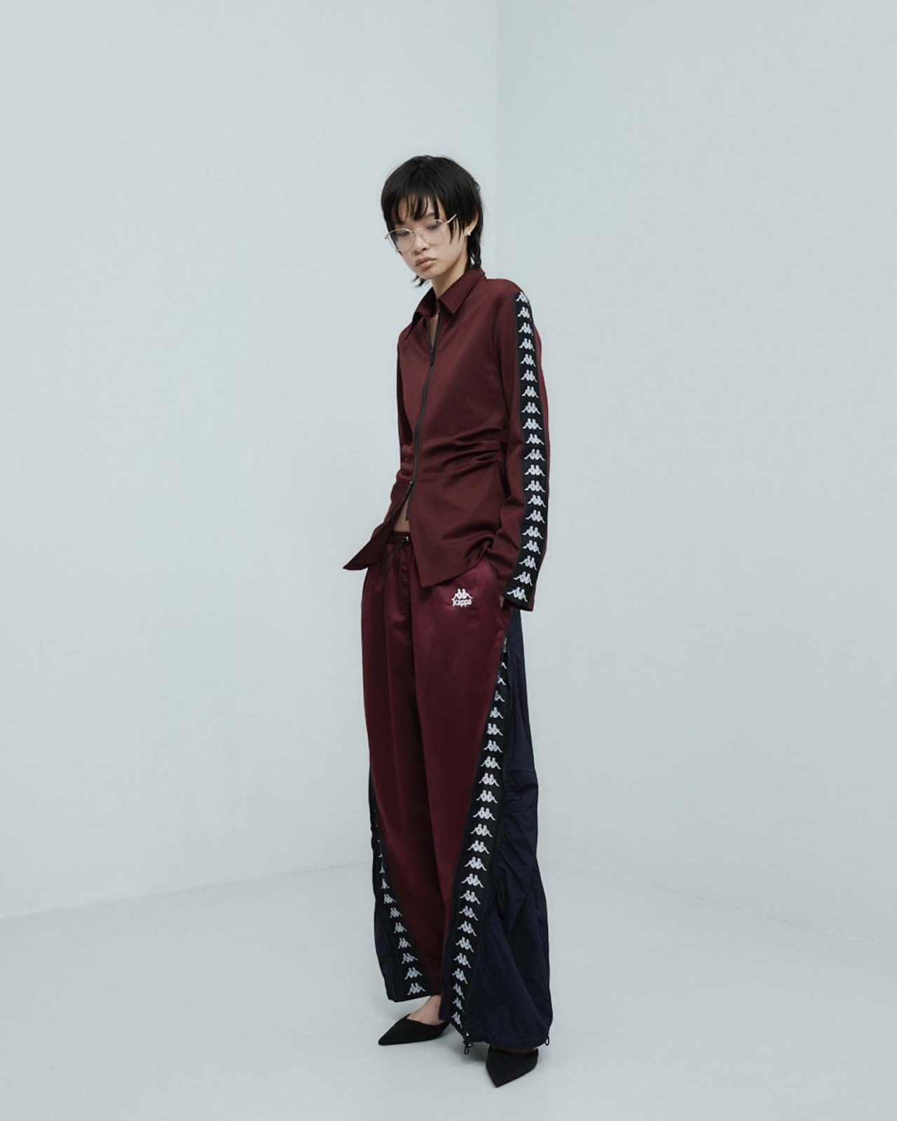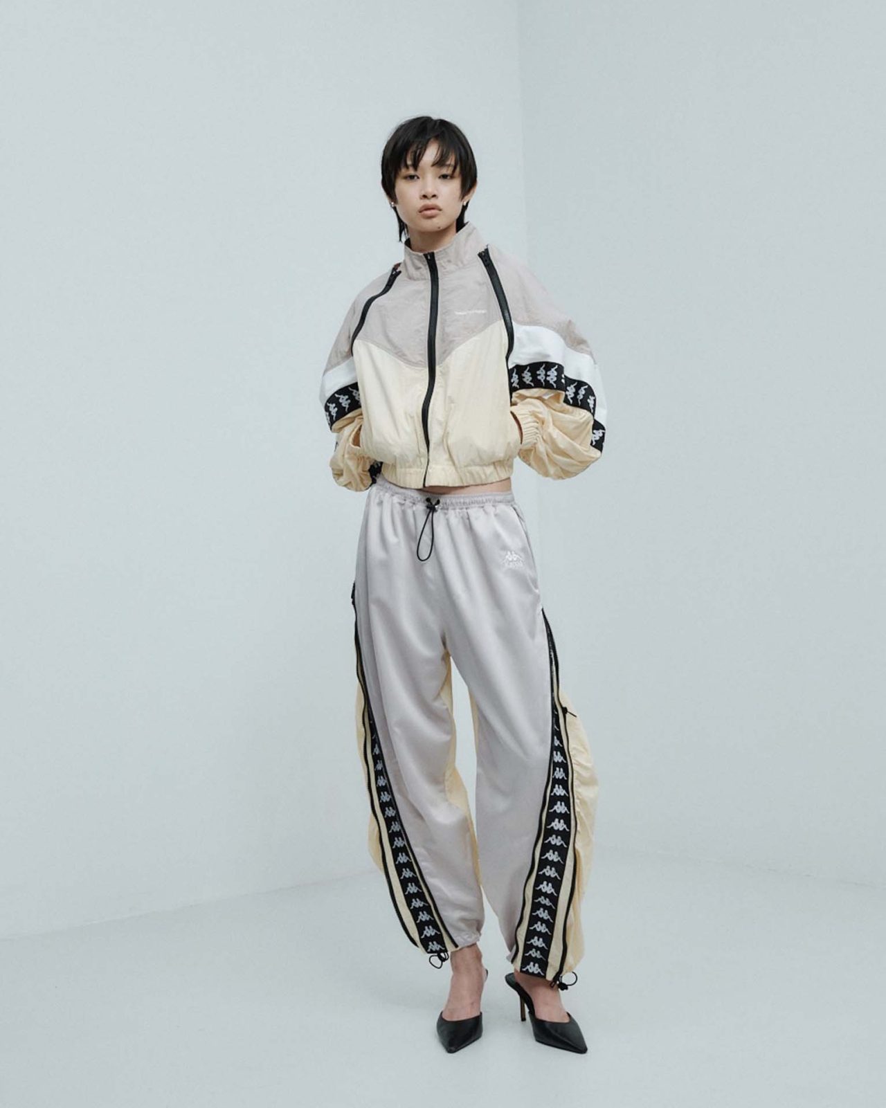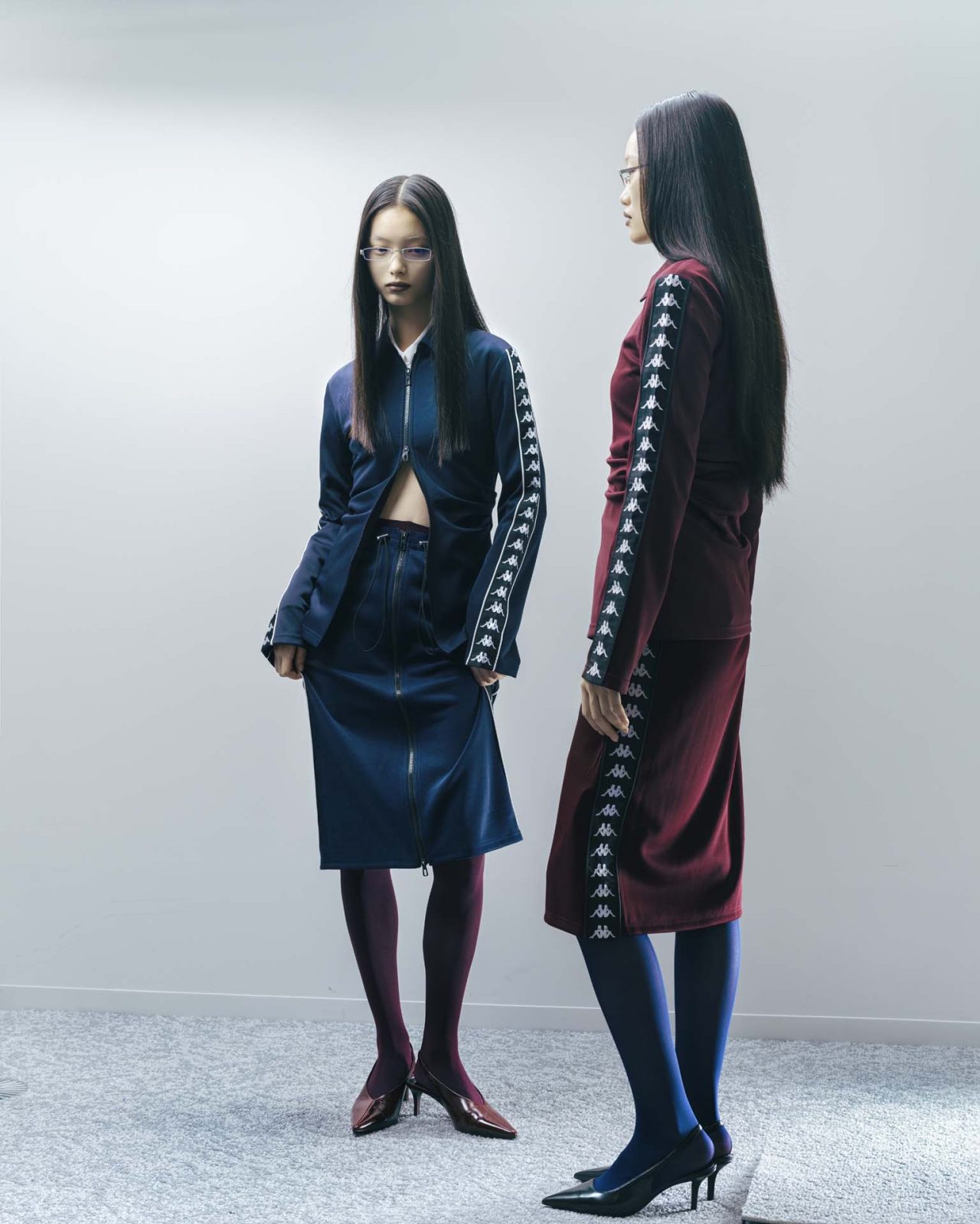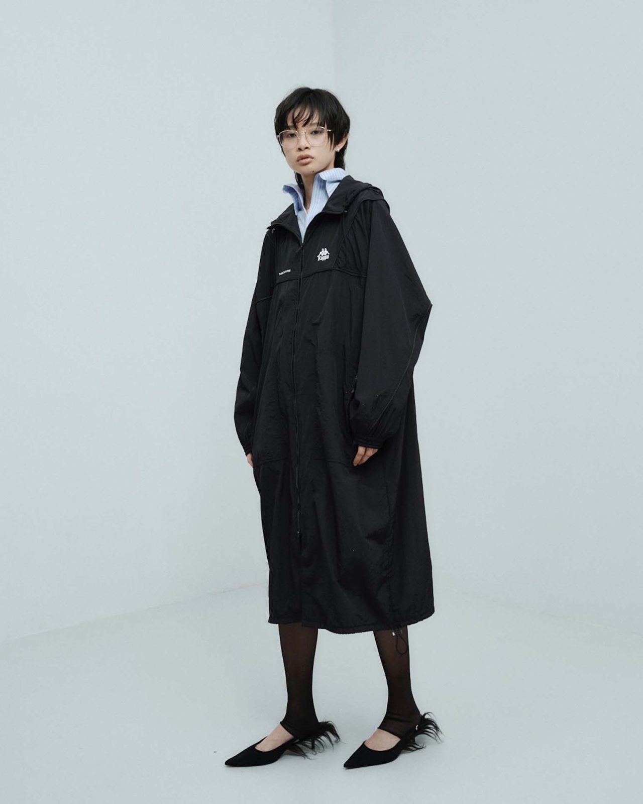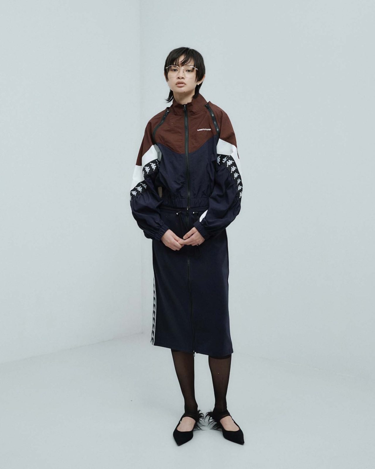 本コレクションでは、Kappa が持つ高い機能性と、THINGS THAT MATTER の象徴的なシルエット&エッセンスを融合。トラックジャケットをはじめ、ナイロンパンツ、スカート、トップスなど幅広いアイテムがラインナップ。一部には撥水素材を採用しており、デザイン性と実用性を兼ね備えた仕上がりとなっている。