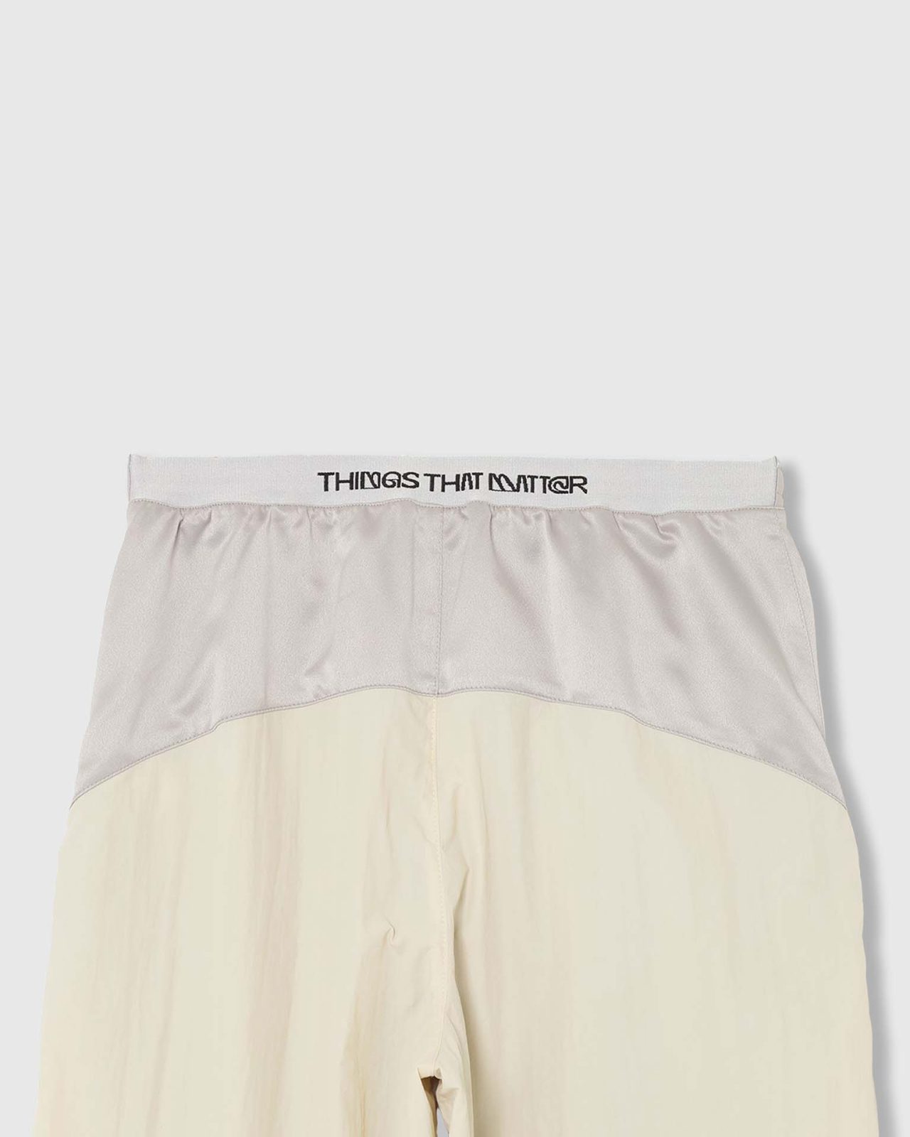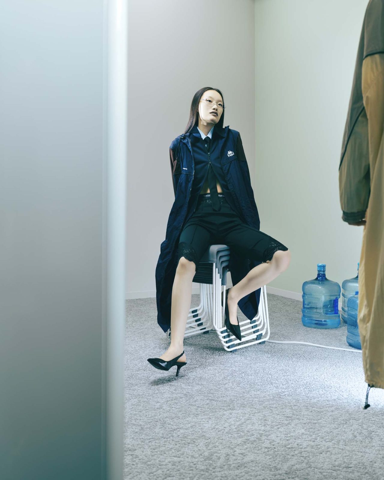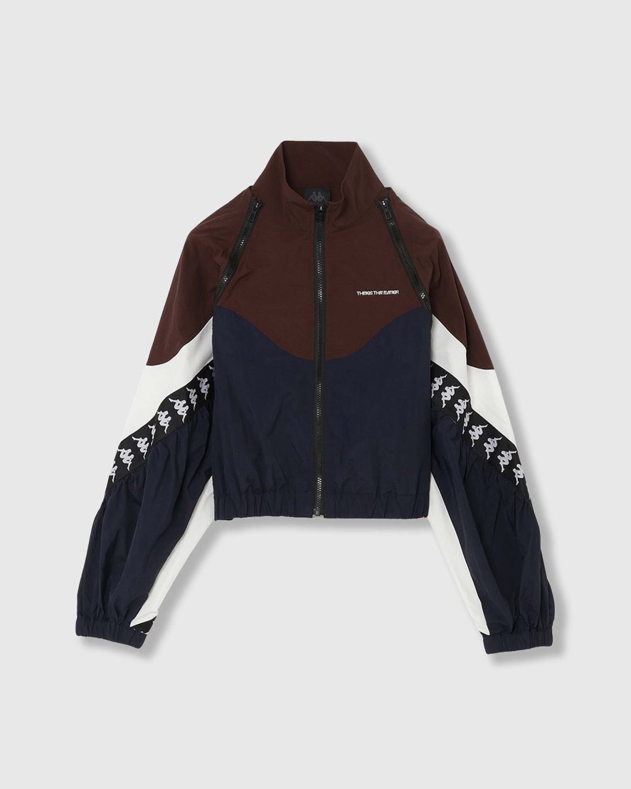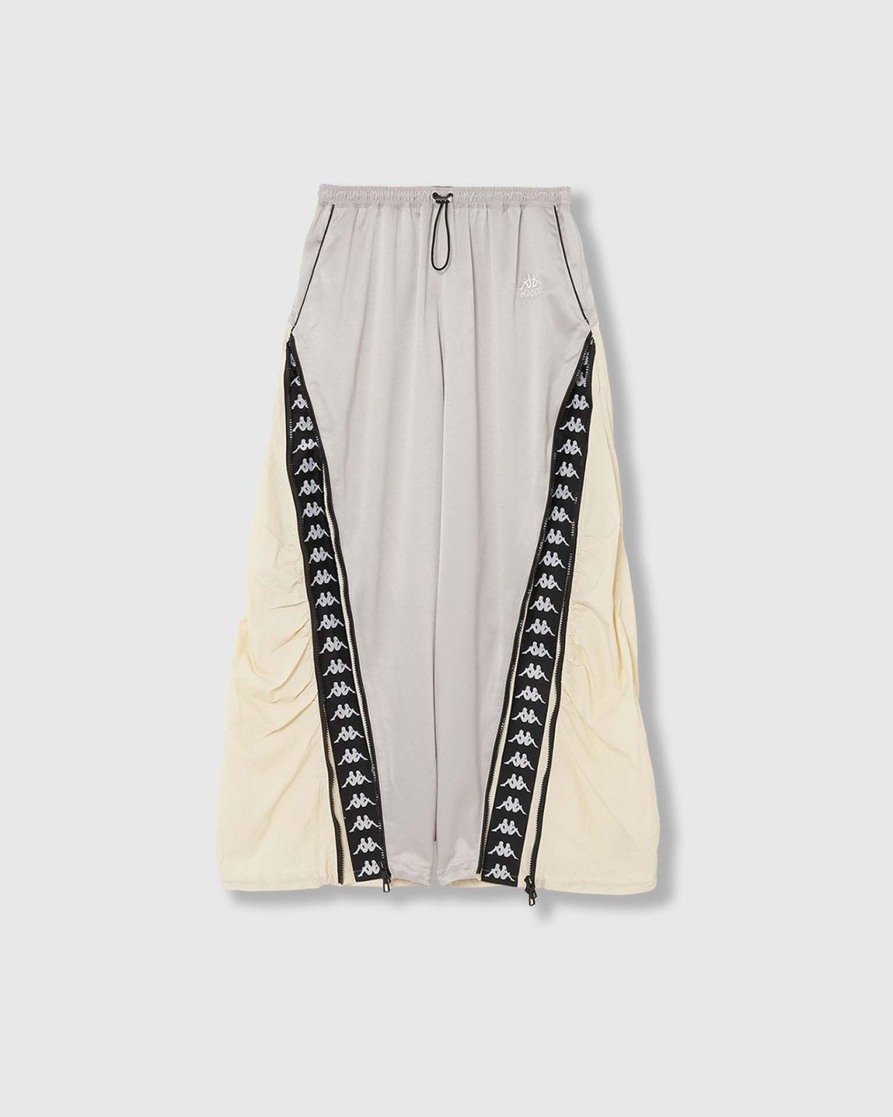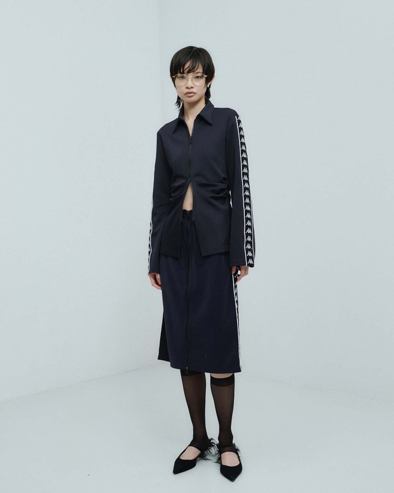 本コレクションでは、Kappa が持つ高い機能性と、THINGS THAT MATTER の象徴的なシルエット&エッセンスを融合。トラックジャケットをはじめ、ナイロンパンツ、スカート、トップスなど幅広いアイテムがラインナップ。一部には撥水素材を採用しており、デザイン性と実用性を兼ね備えた仕上がりとなっている。