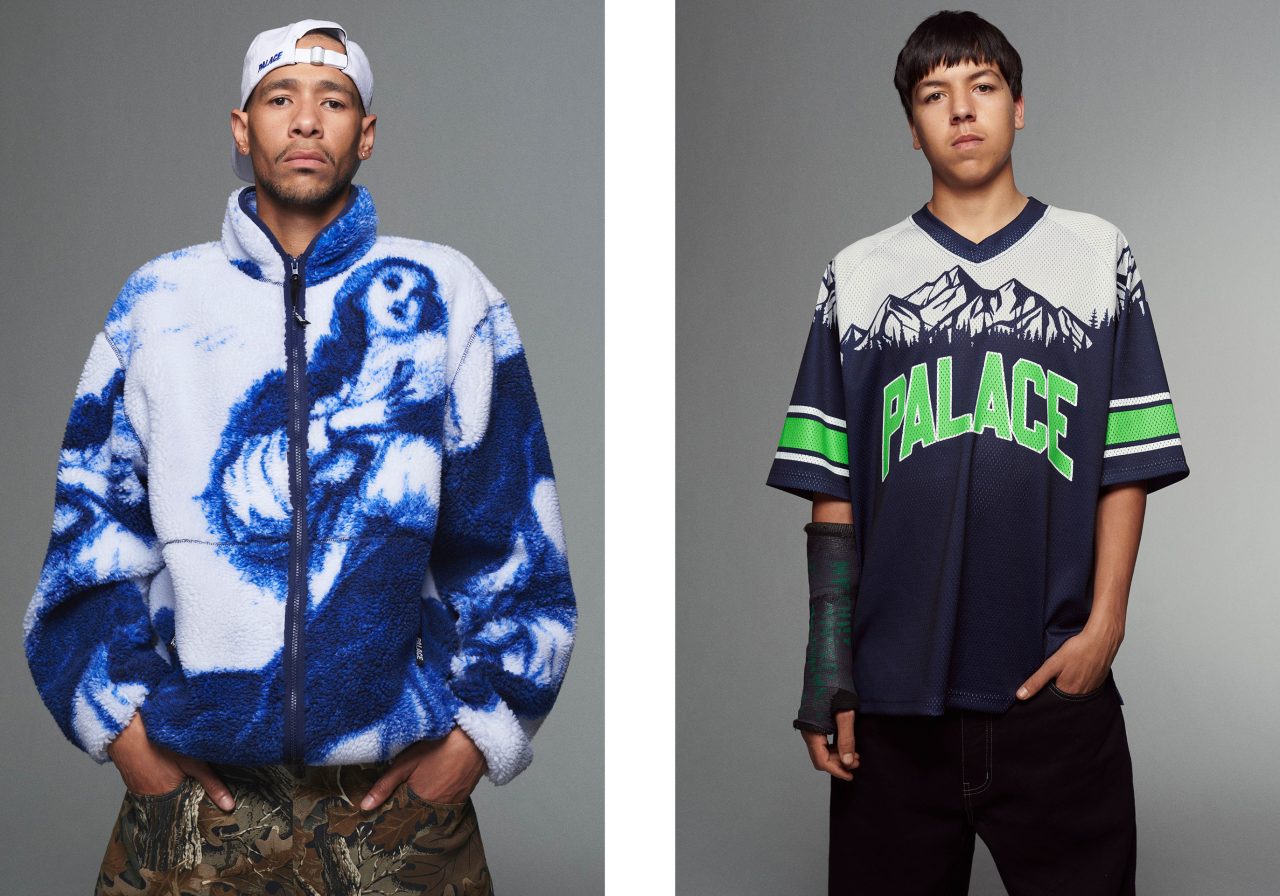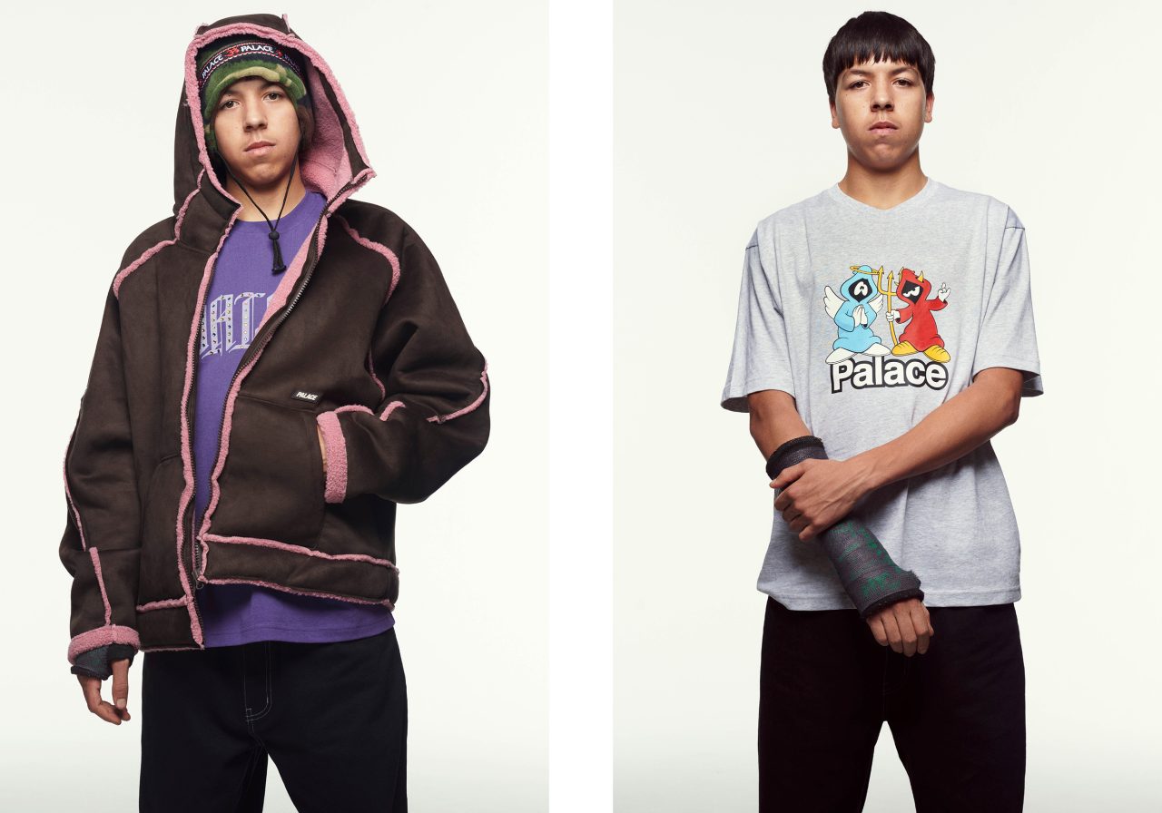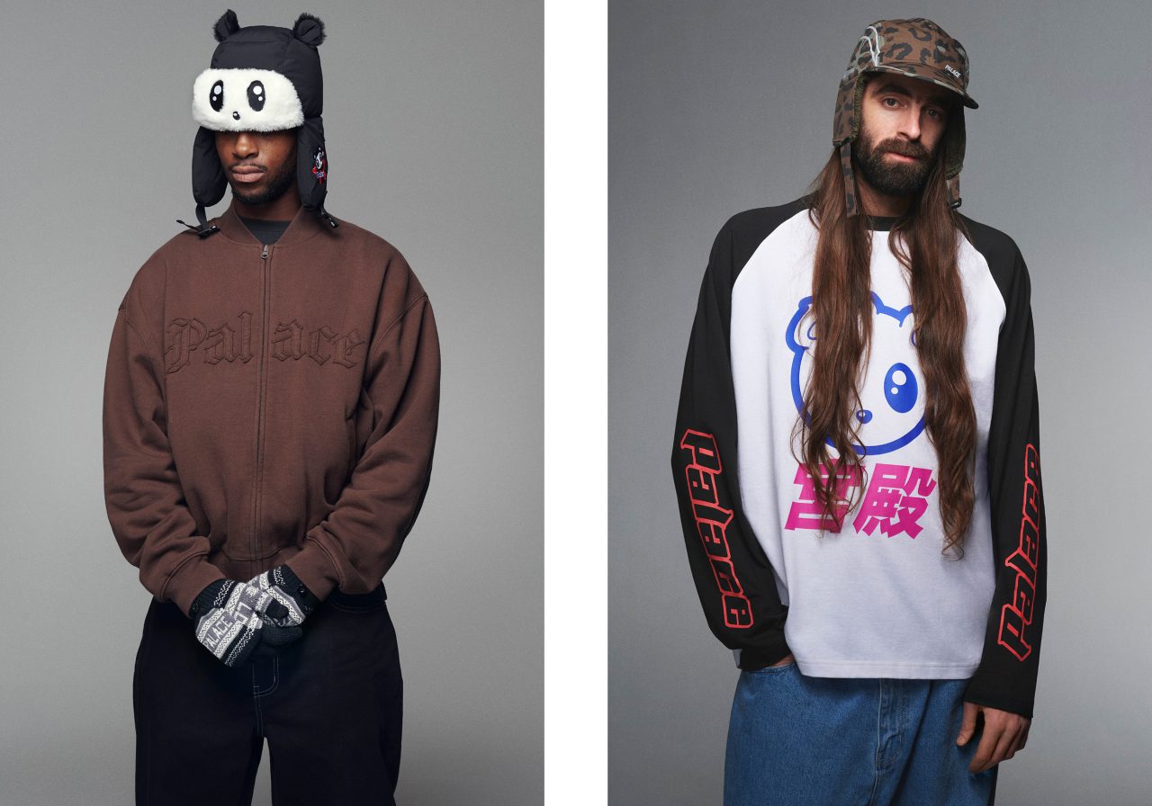 本コレクションでは、冬のアウターや定番のグラフィックアイテムに加え、季節感のあるヘッドウェア、PALACE SKATEBOARDS らしいキャラクターモチーフ、ユーモアを効かせたプリントなど、多彩なプロダクトが登場。遊び心のある小物から冬の主役級アイテムまで、幅広いスタイルに応えるラインナップとなっている。