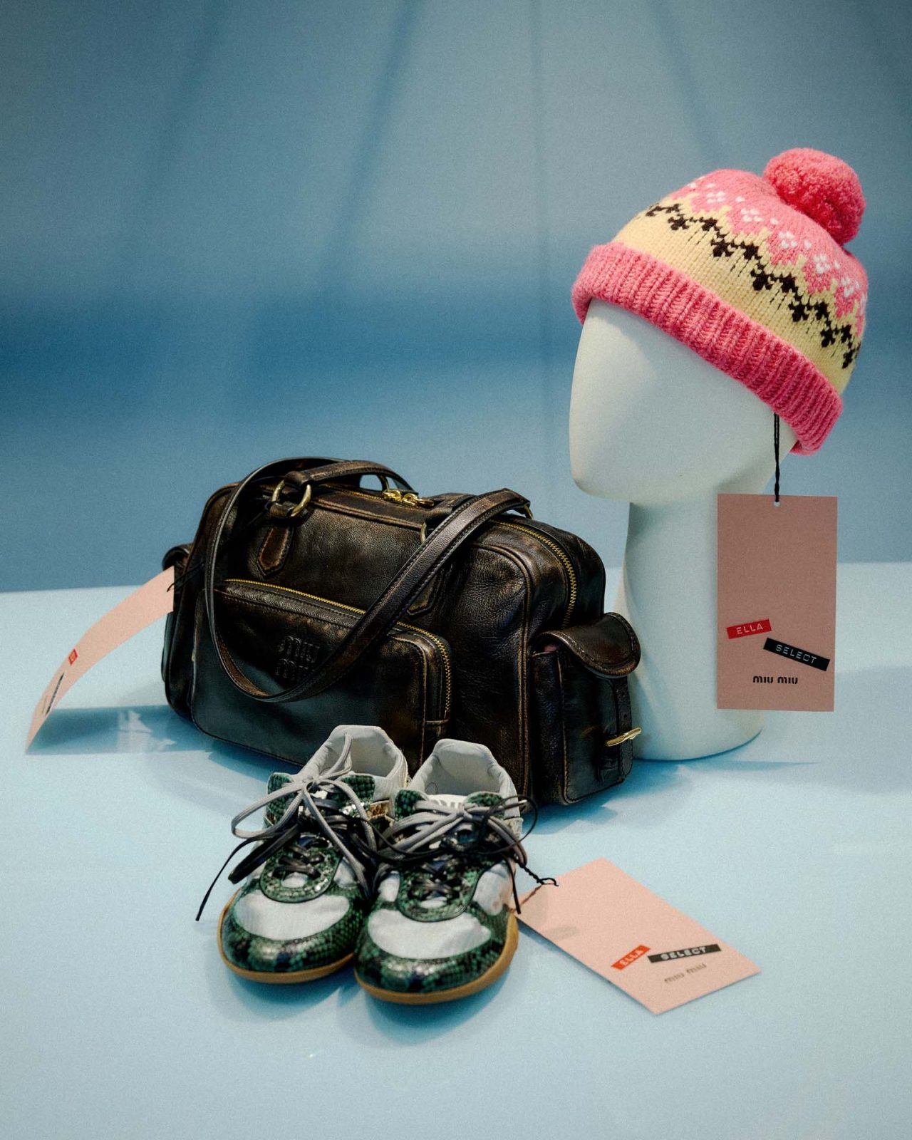 MIU MIU (ミュウミュウ) ならではのユニークな感性を体現する「MIU MIU Select」。アンバサダーであり、MEOVV (ミャオウ) の ELLA (エラ) が2025年ホリデーコレクションからキュレーションした特別なセレクションが登場。世界各国の一部店舗で展開し、日本では MIU MIU 青山店にて期間限定で販売された。