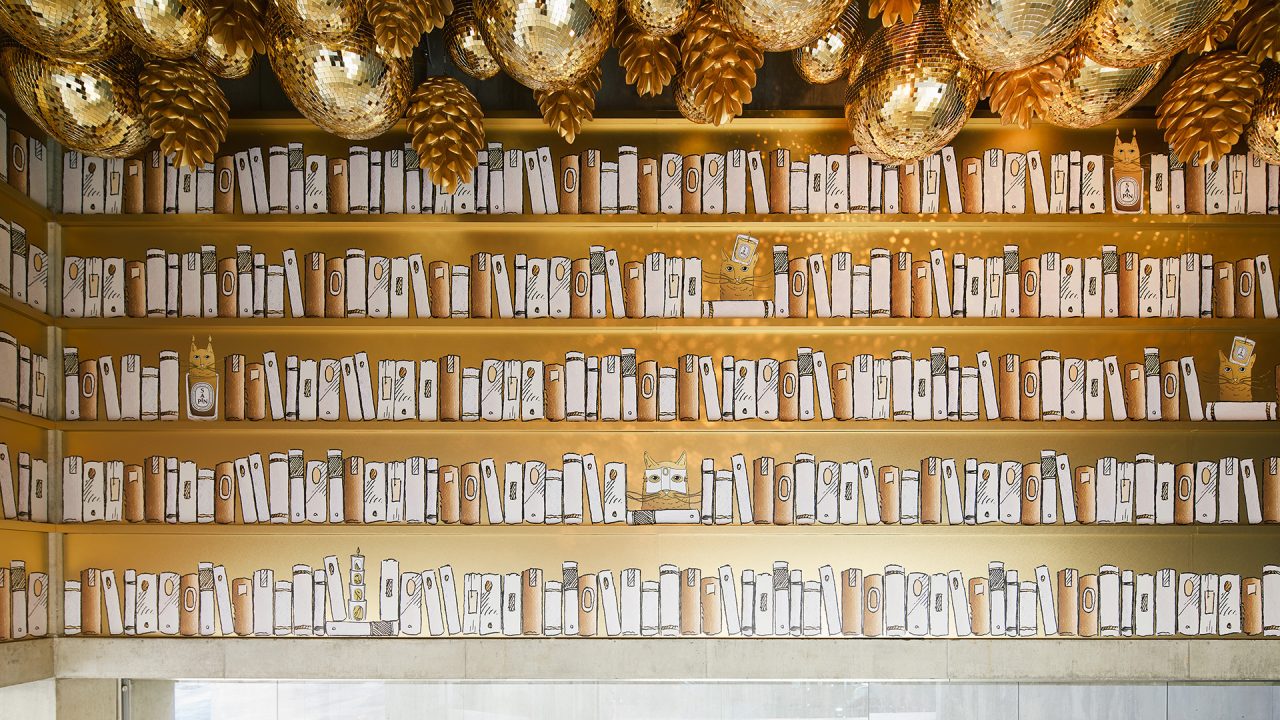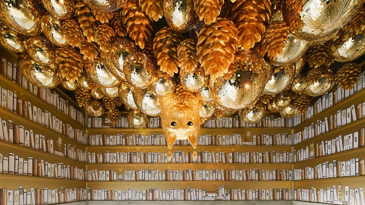 ゴールドを基調とした空間が華やかで、そしてアーチボルドと言う猫のキャラクターが隠れていて、癒される空間です。