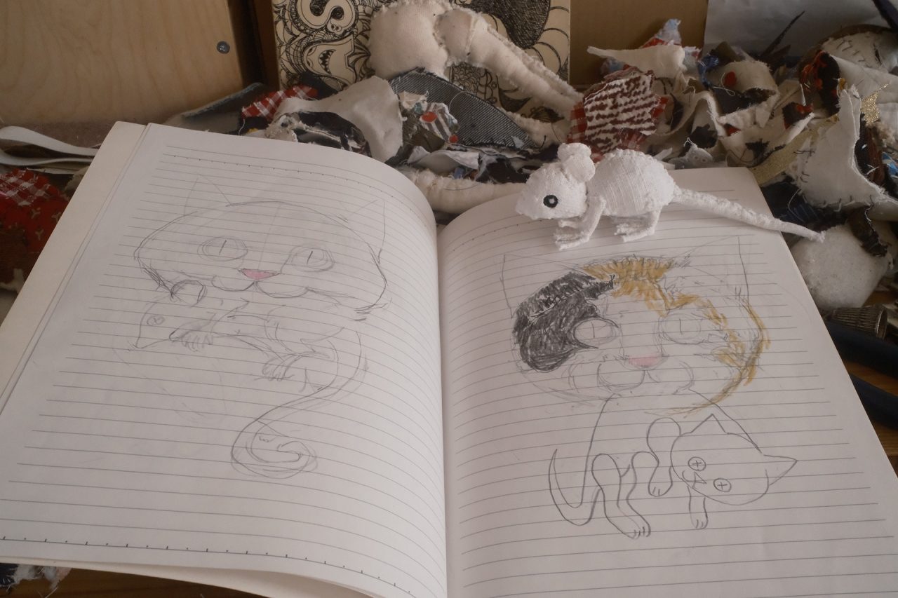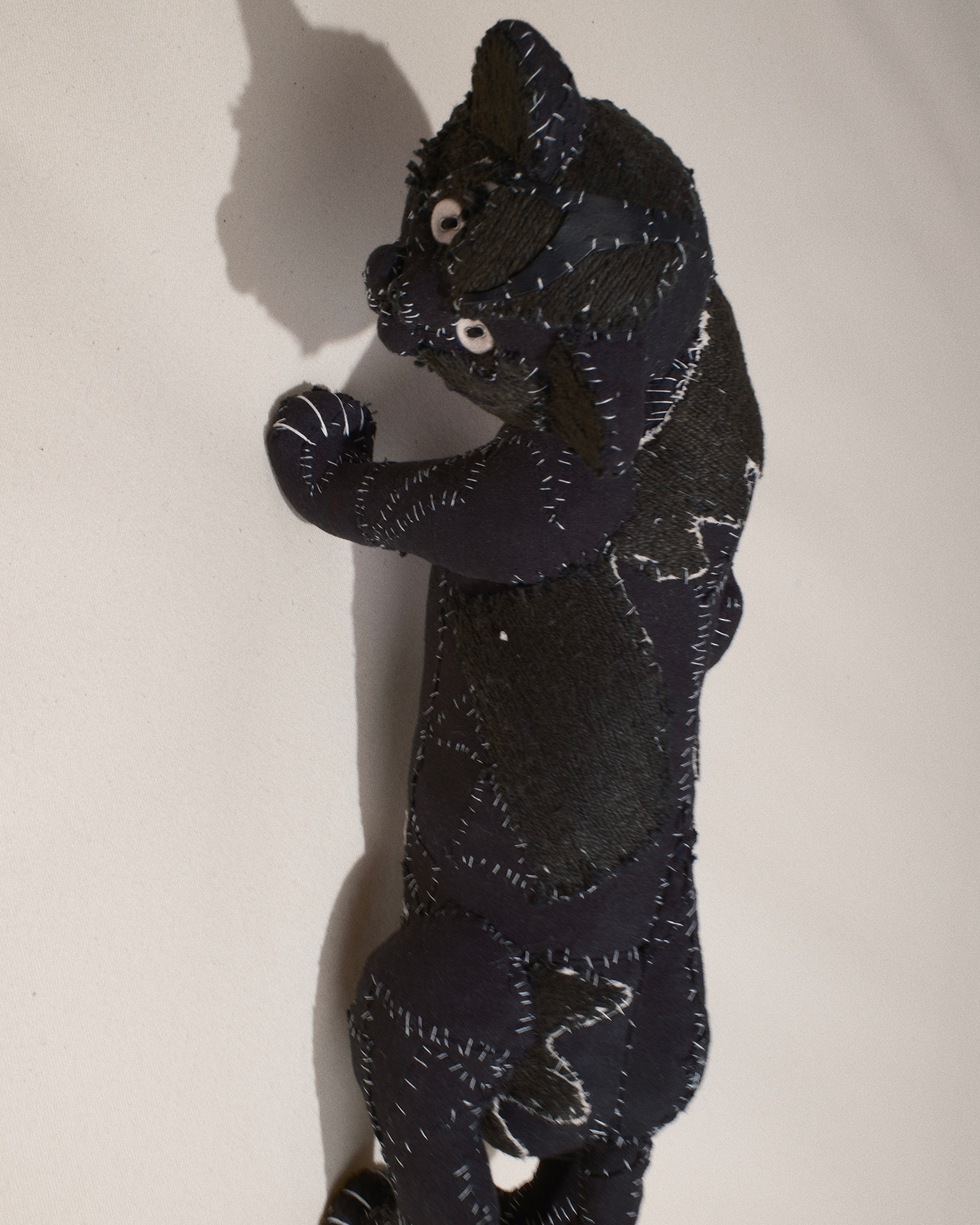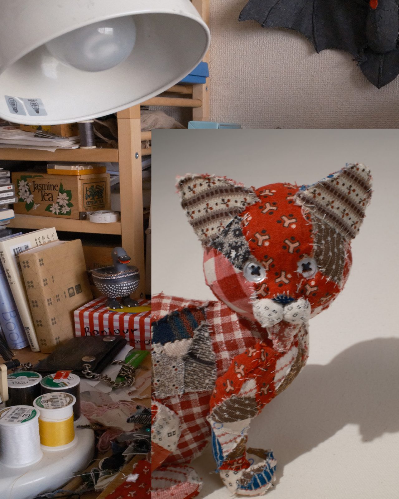 —KHOKI が集めたヴィンテージキルトやオリジナル生地で作られた猫の“布の彫刻”、半立体作品がドッキングされたヴィンテージのトートバッグ、オリジナルTシャツなど、今回のコラボレーションでの具体的な制作プロセスを教えてください。